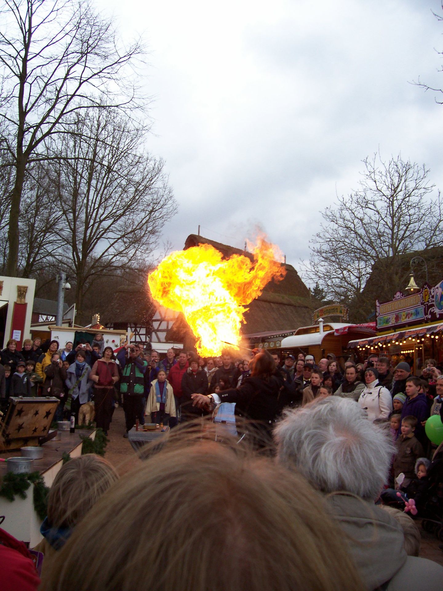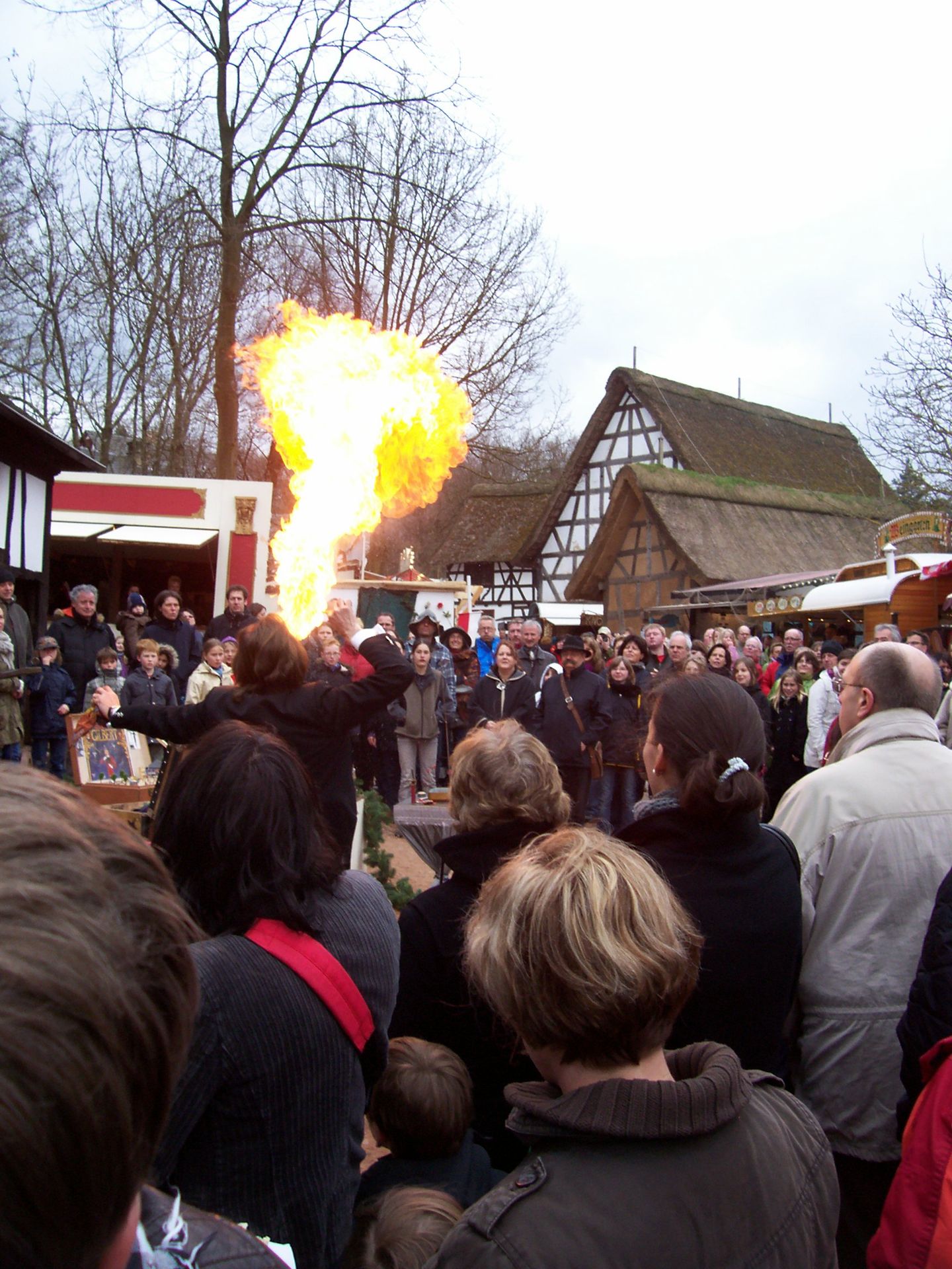 Weiter ging es vorbei an einer kleinen Bühne an der es über den Tag verteilt verschiedene Auftritte zu sehen gab. Hier z.B. ist "Gilbert" beim Feuerspucken zu sehen: