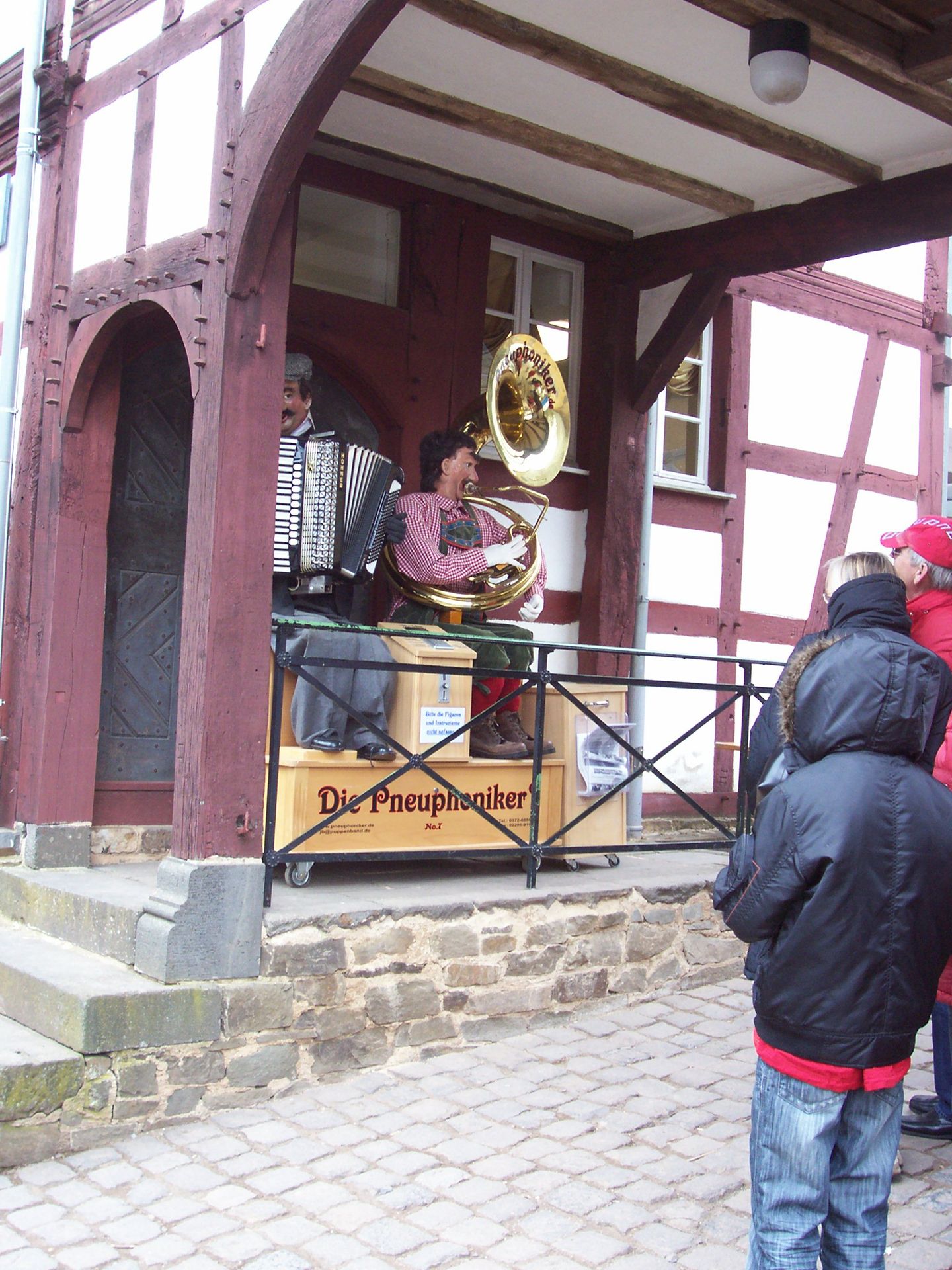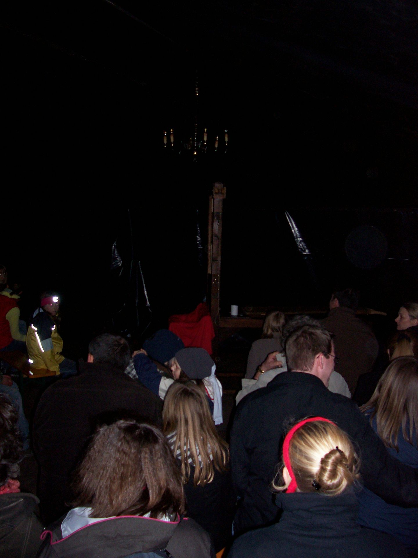 Darüber hinaus gab es dort noch das "Curiositäten-Cabinett". Dabei handelt es sich um einen Nachbau einer Schaubude in der die Enthauptung eines freiwilligen aus dem Publikum gezeigt wird. Sowohl die Schaubude selber als auch die für die Vorführung benötigte Guillotine wurden vom Freilichtmuseum nach Originalplänen einens Schaustellers nachgebaut. Hier mal ein Bild aus dem Innenraum.