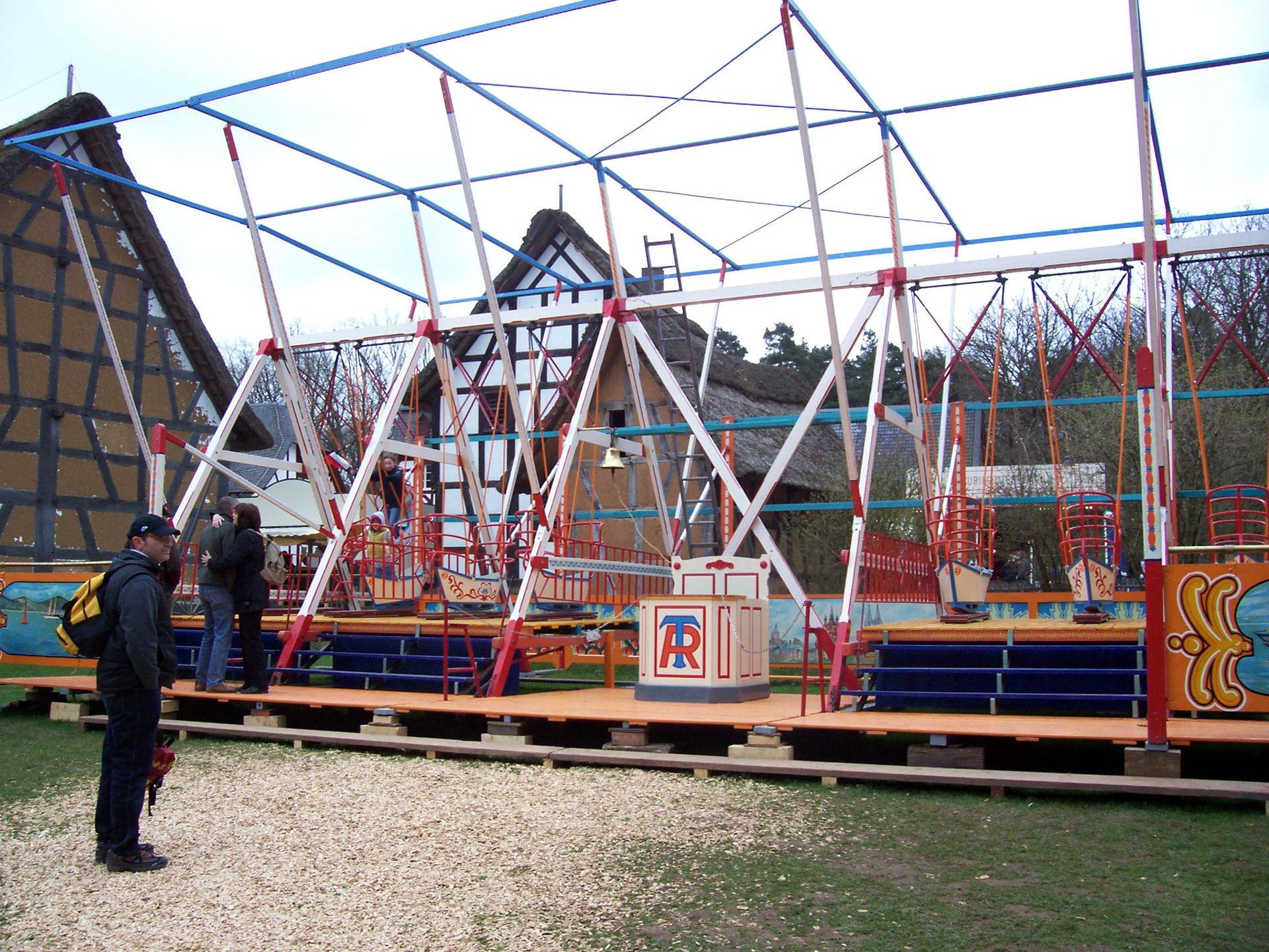 Eigentlich wollte ich heute nach Plopsa Coo aber da der neue Star Flyer dort ja nun nicht so läuft wie er soll habe ich mich entschlossen die historische Kirmes im Freilichtmuseum in Kommern anzusehen. Nachdem man das Freilichtmuseum betreten hat kommt man zunächst an diesem Kettenkarussell vorbei:
