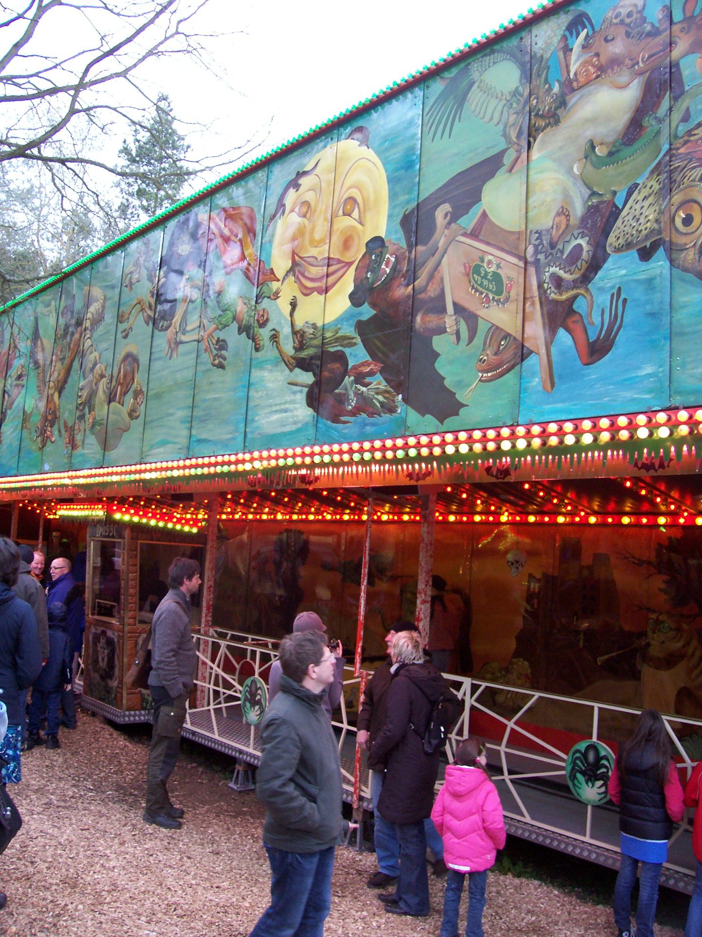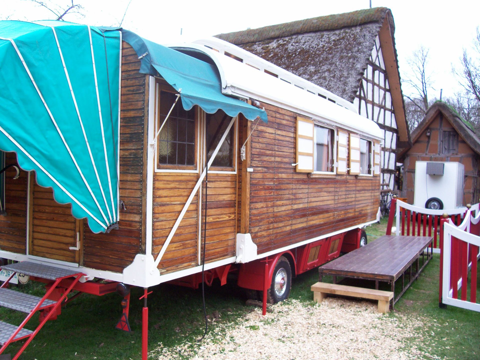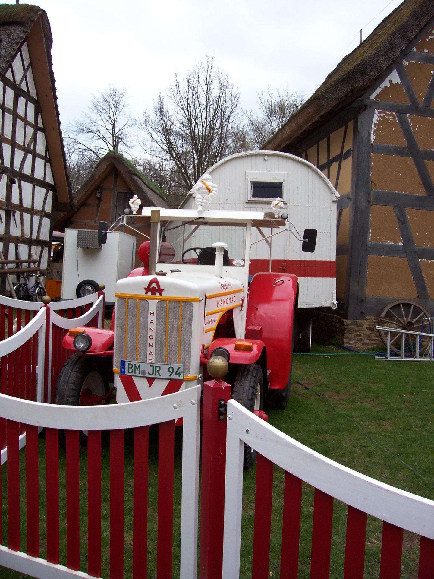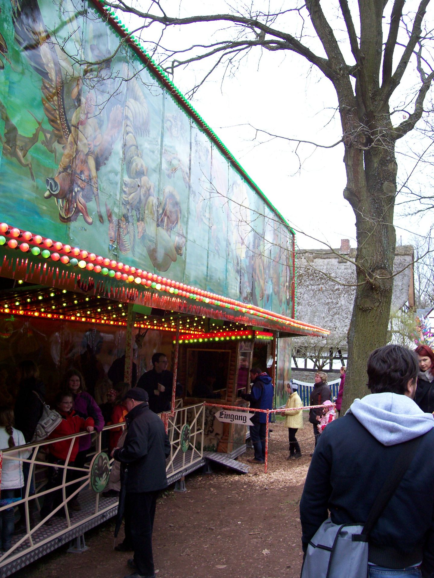 Neben den Fahrgeschäften gibt es auf dem Jahrmarkt auch noch einige alte Zugmaschinen, Packwagen und Wohnwagen zu sehen in die man teilweise auch hineinschauen darf.