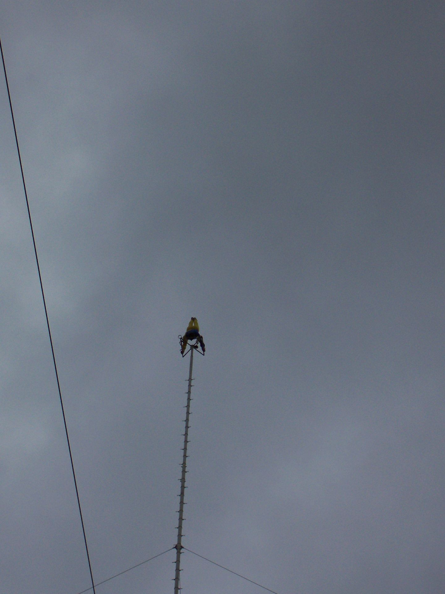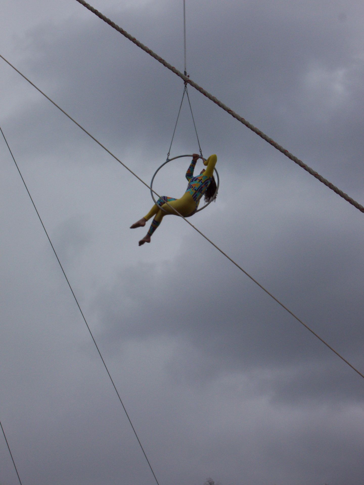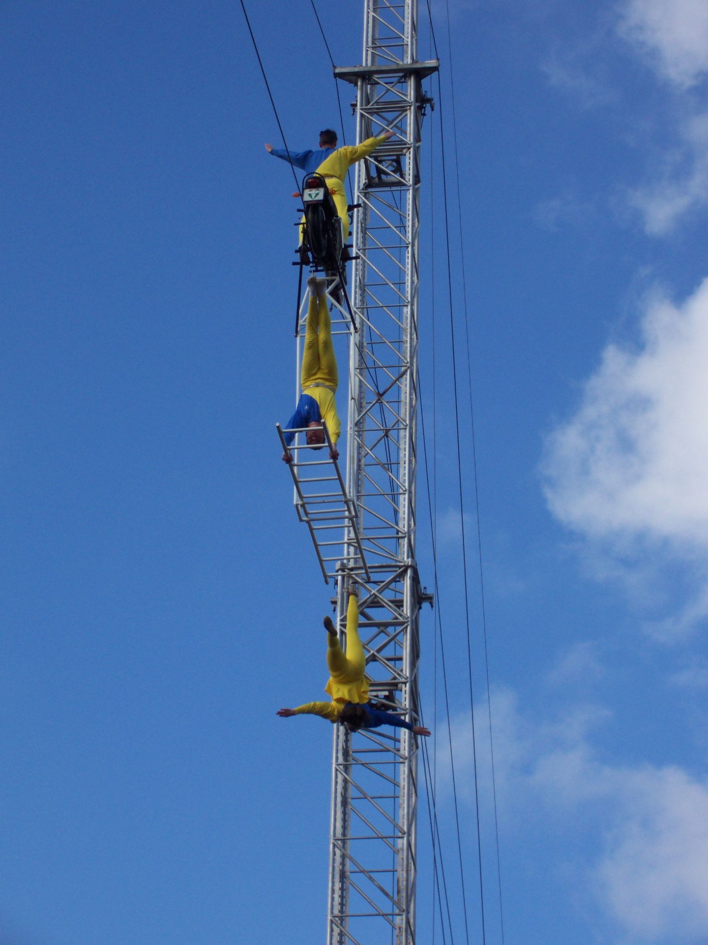 An dem zweiten, höheren Mast wurde zunächst Akrobarik auf der flexiblen Mastspitze gezeigt. Auf dem folgendem Bild sitzt der Artist bereits auf der Mastspitze.