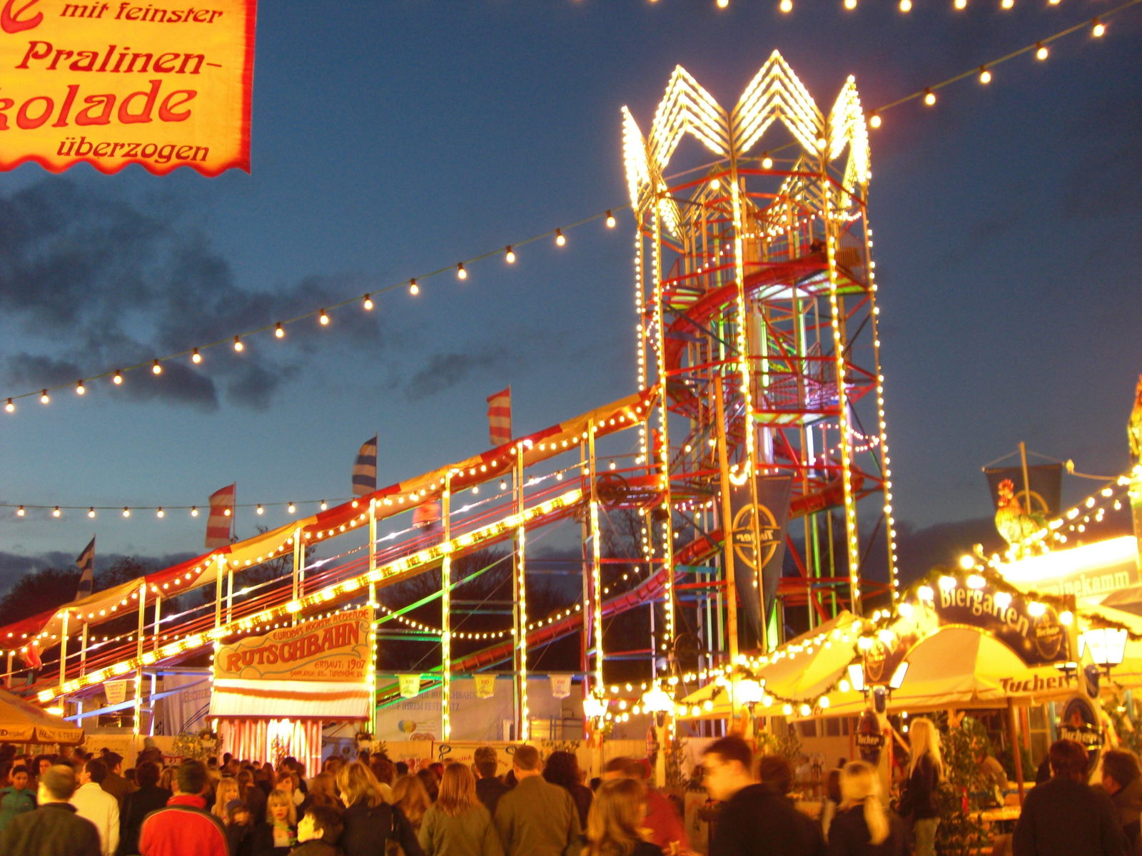Womit wir wieder beim Schlagwort Riesenrad wären, und somit die erste Platzrunde beendet hätten bei tageslicht. Dann folgte erstmal ein längerer Aufenthalt im Bierzelt, bevor es dann wieder auf den nächtlichen Festplatz ging.