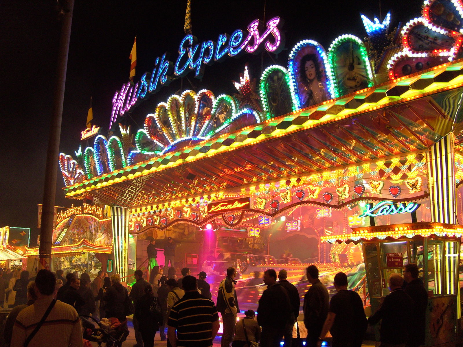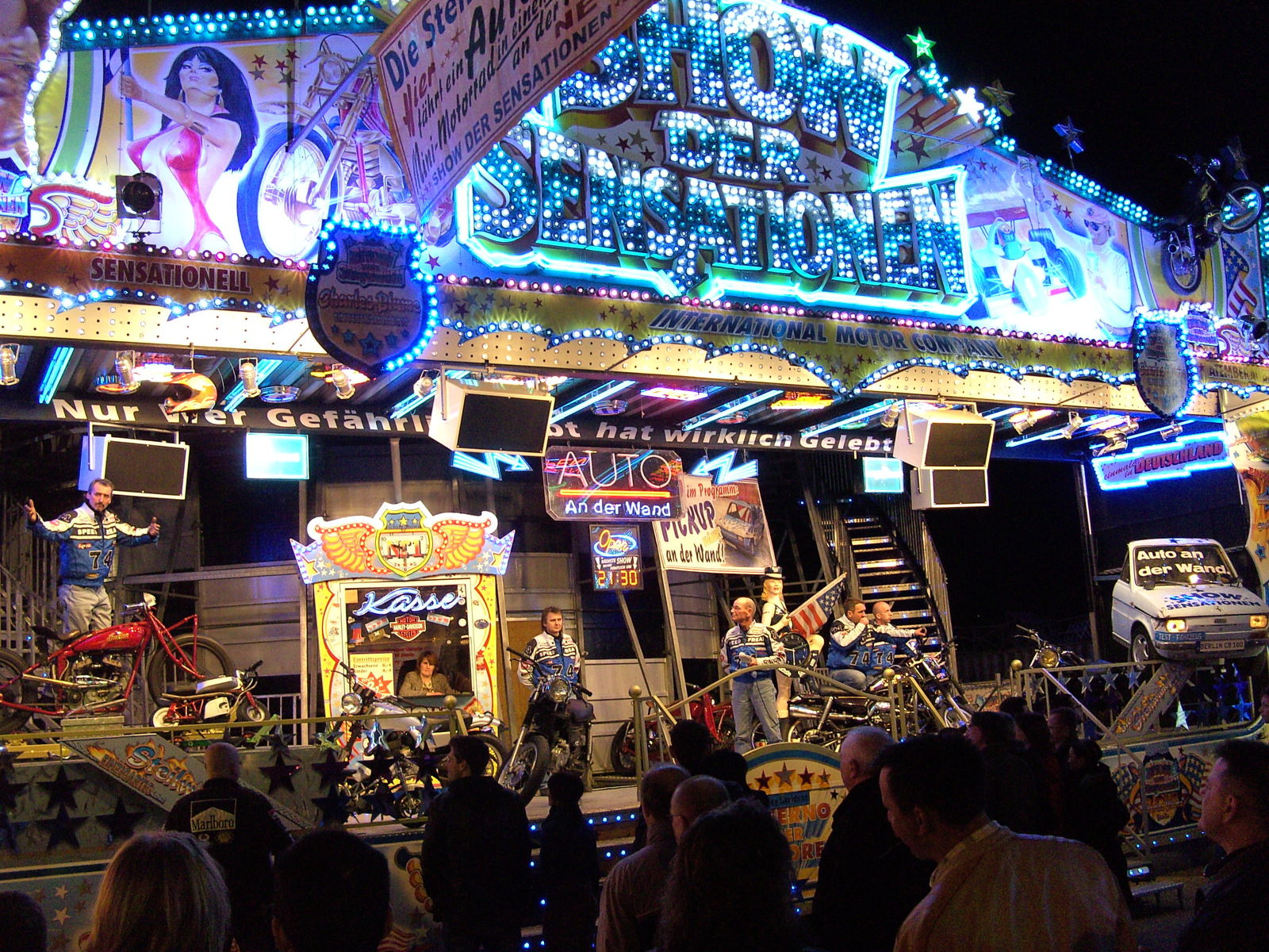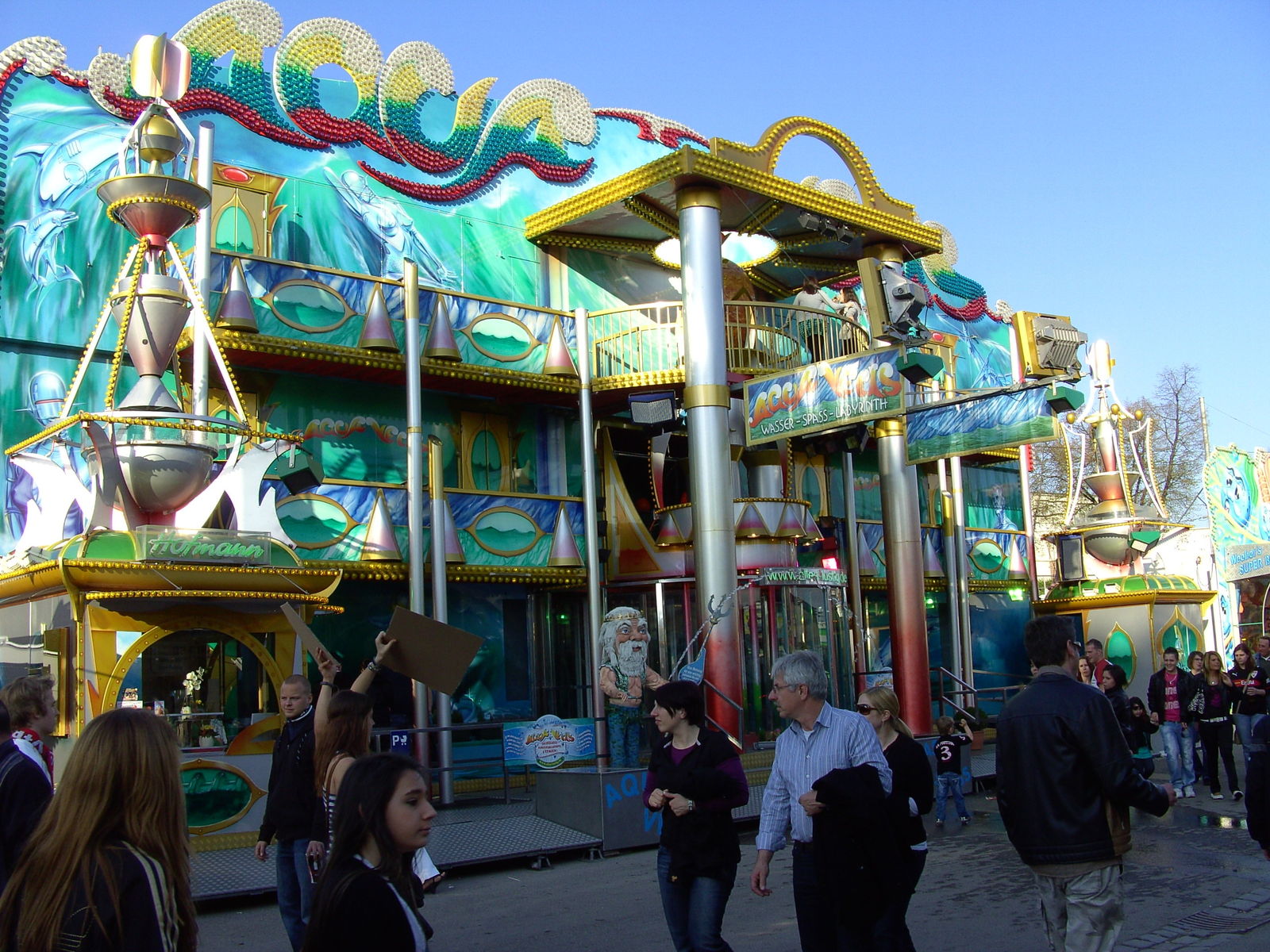 Höllenblitz testen. Von außen ist man erstmal beeindruckt von der imposanten Front und dem wahnsinnigen Aufwand, der mit der ganzen Geschäft verbunden ist. Die Fahrt an sich ist eigentlich ganz nett, teilt aber auch ordentlich Schläge aus. Das Theming ist für Kirmesverhältnisse natürlich klasse. Und auch die Innengestaltung und Effekte können sich sehen lassen.