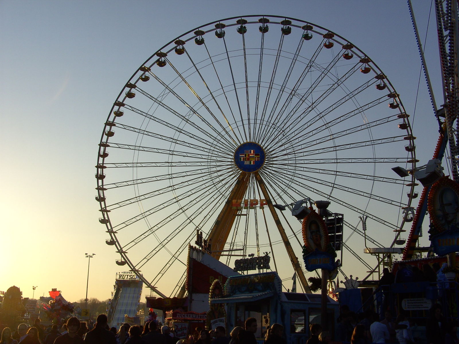 Riesenrad, welches am späten Abend voll besetzt war: