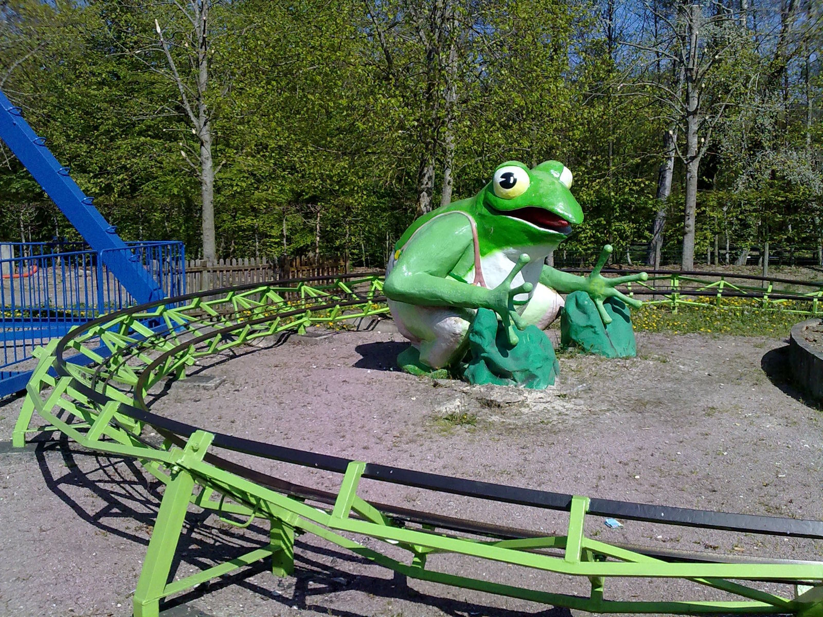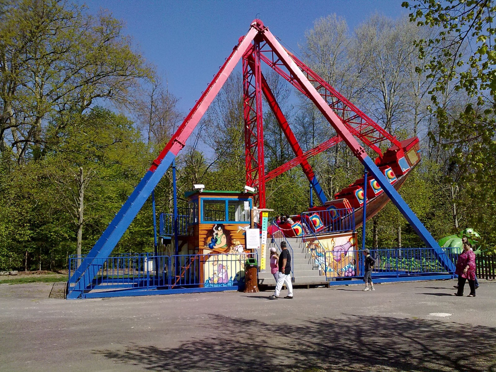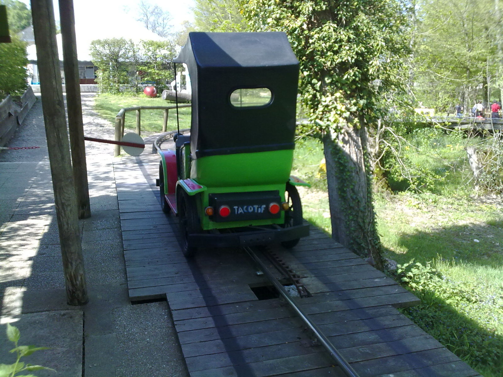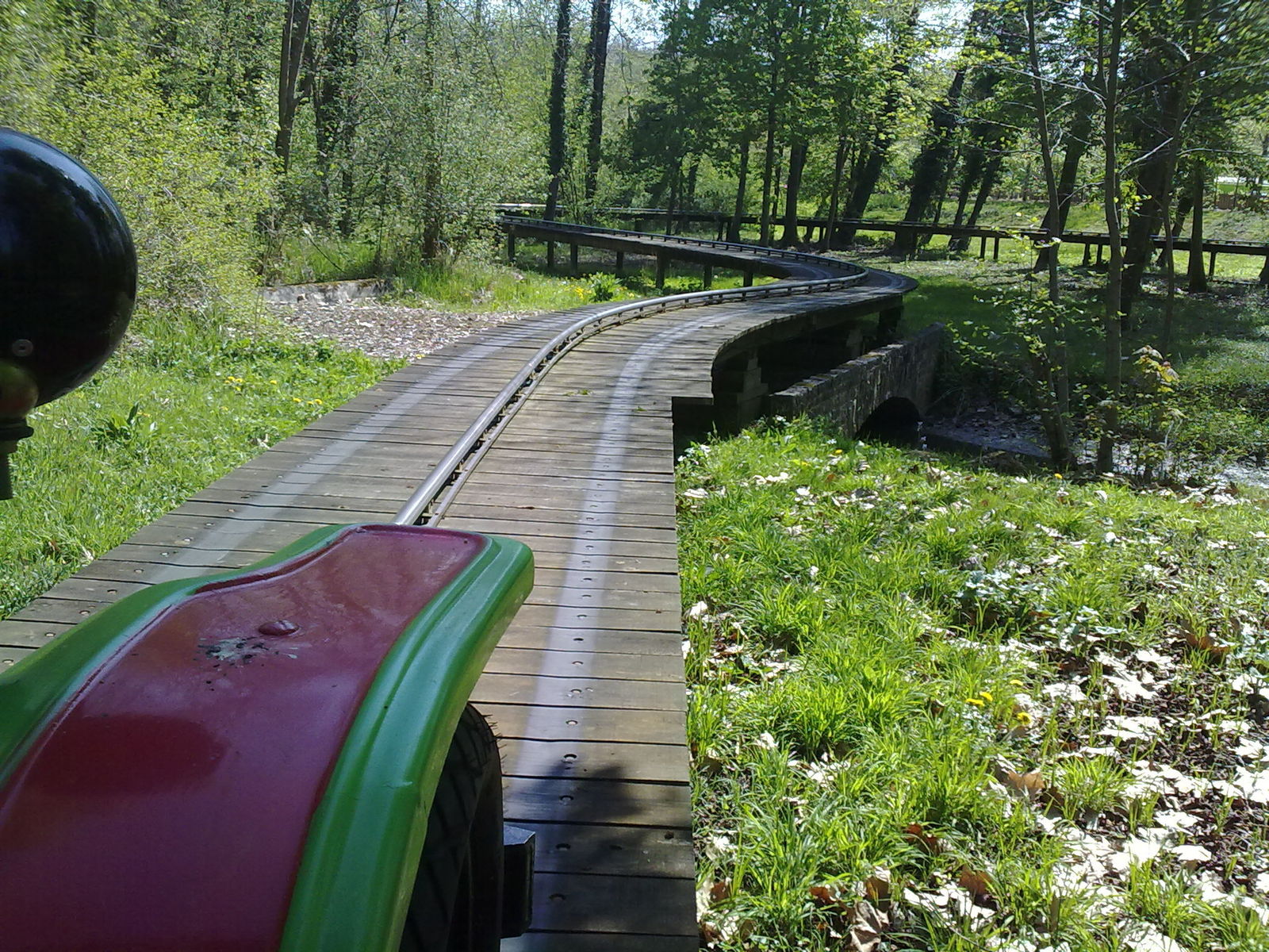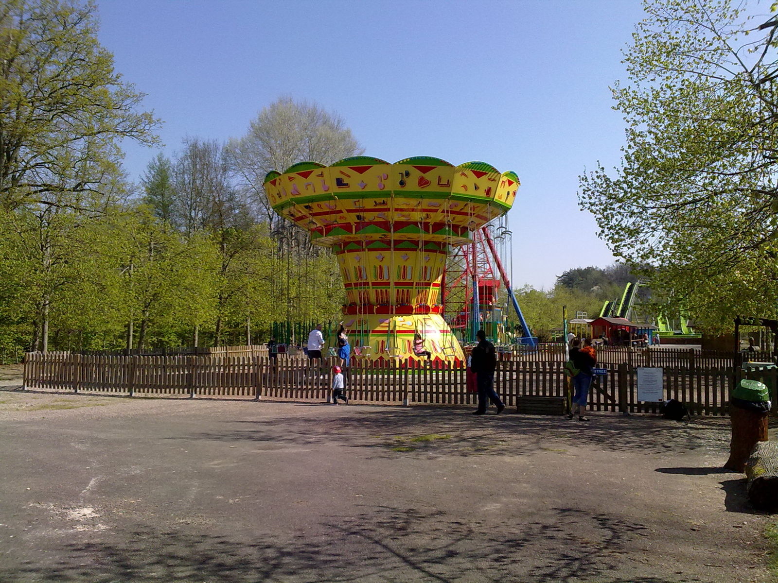 Die Wasserbahn dahinter hatte leider noch geschlossen und so fuhren wir eine Runde auf der Oldtimerbahn. Diese ist wirklich sensationell in den Wald integriert und zum Ausgleich der Unebenheiten im Boden komplett aufgebockt. Alles in allem fand ich den Park sehr angenehm, wenn er auch nicht die Masse an Fahrgeschäften bieten kann.