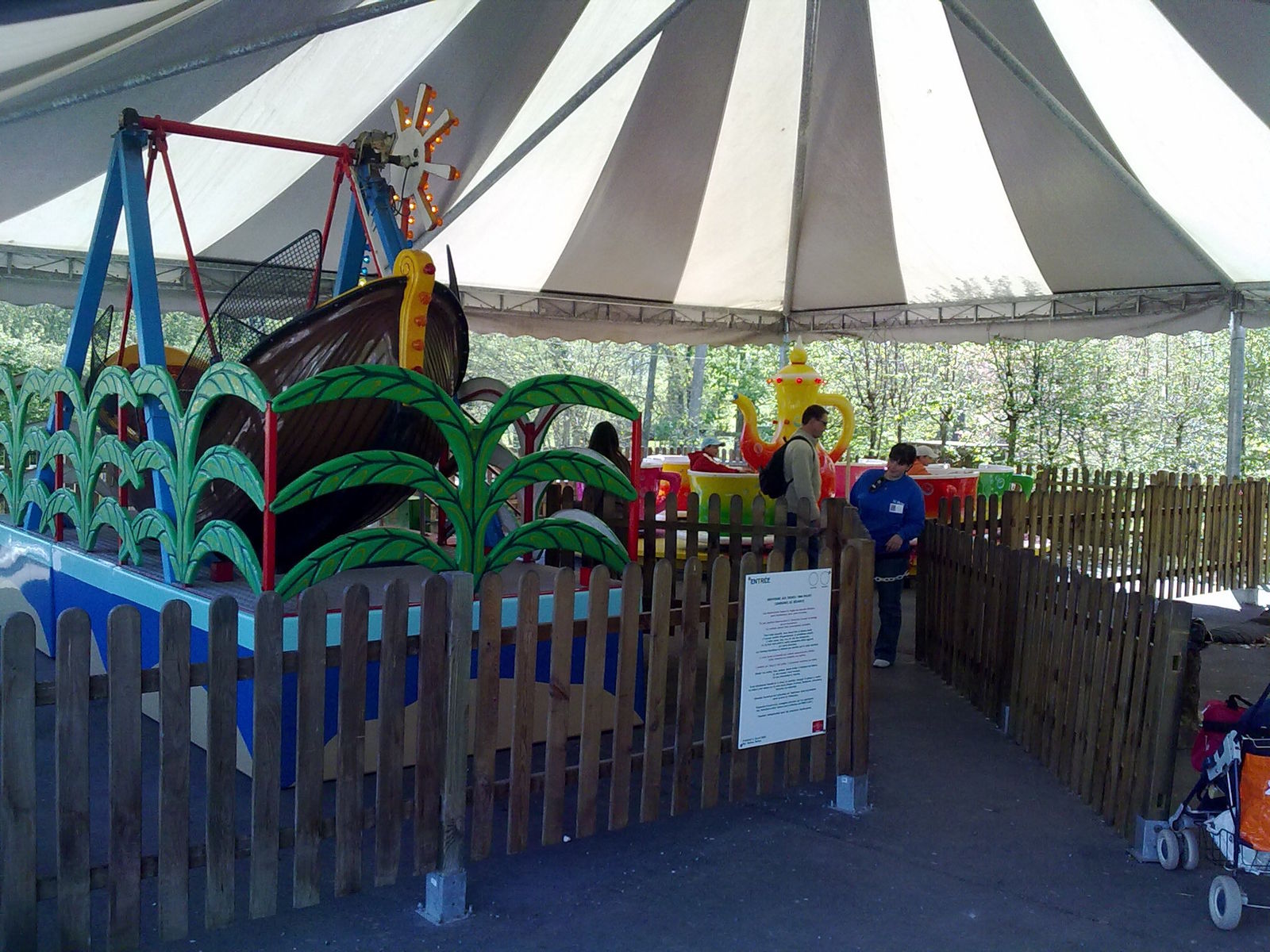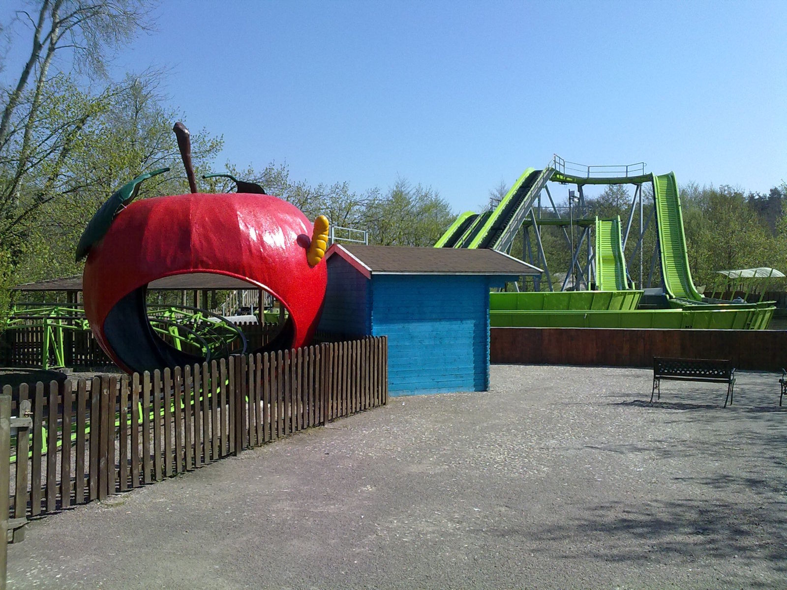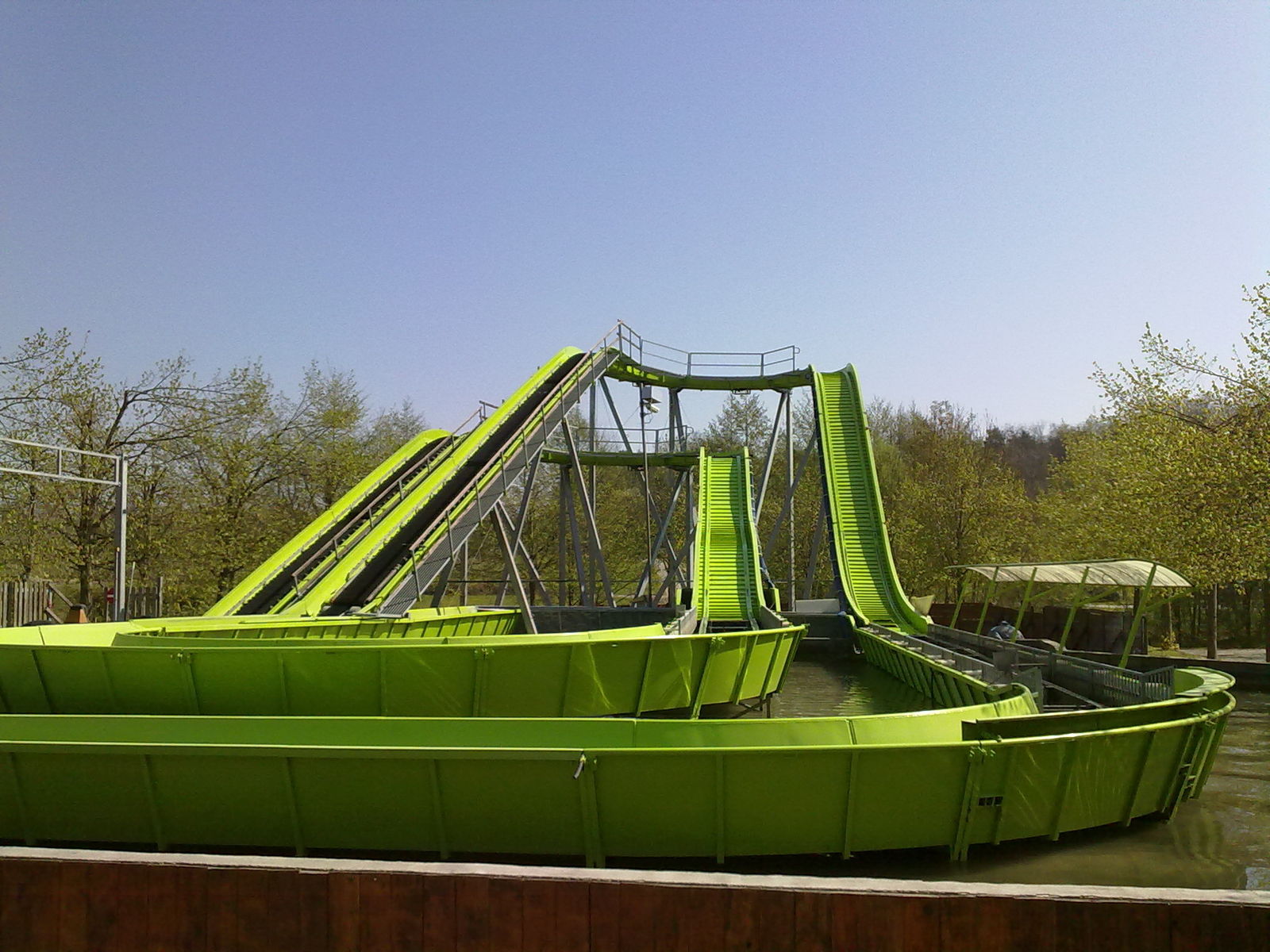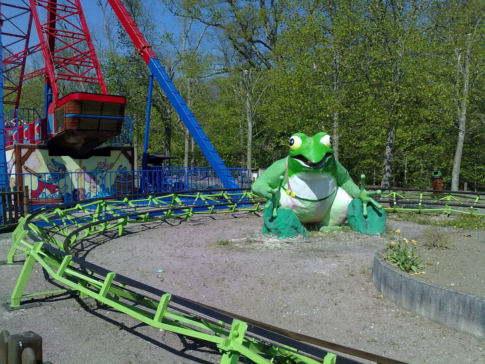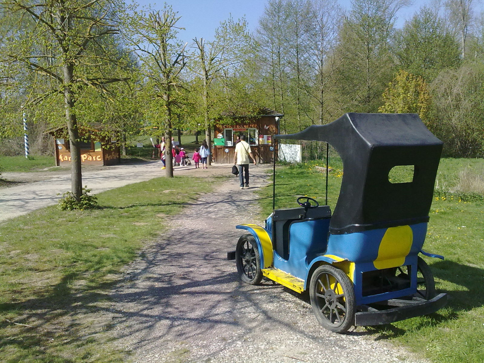 Die Wasserbahn dahinter hatte leider noch geschlossen und so fuhren wir eine Runde auf der Oldtimerbahn. Diese ist wirklich sensationell in den Wald integriert und zum Ausgleich der Unebenheiten im Boden komplett aufgebockt. Alles in allem fand ich den Park sehr angenehm, wenn er auch nicht die Masse an Fahrgeschäften bieten kann.