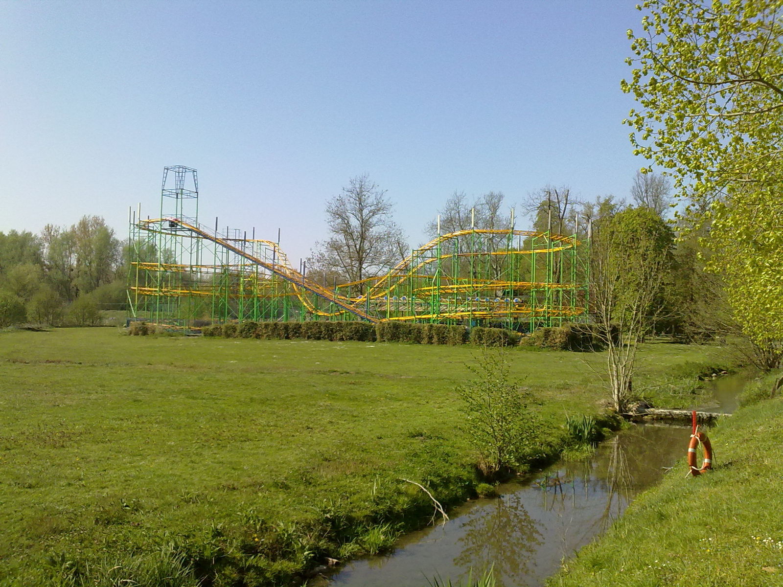 Laut RCDB sollte hier lediglich ein kleiner powered Coaster aus dem Hause Soquet auf uns warten, doch bereits nachdem wir das Einfahrtsportal des Parks durchfahren hatte, sahen wir einen Zyklon von Pinfari.