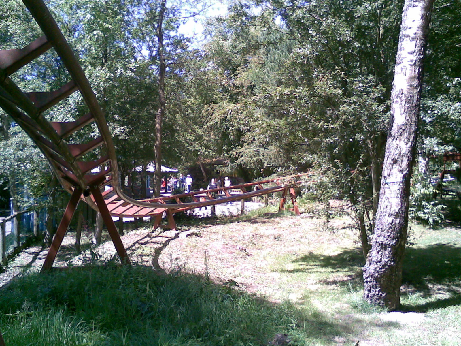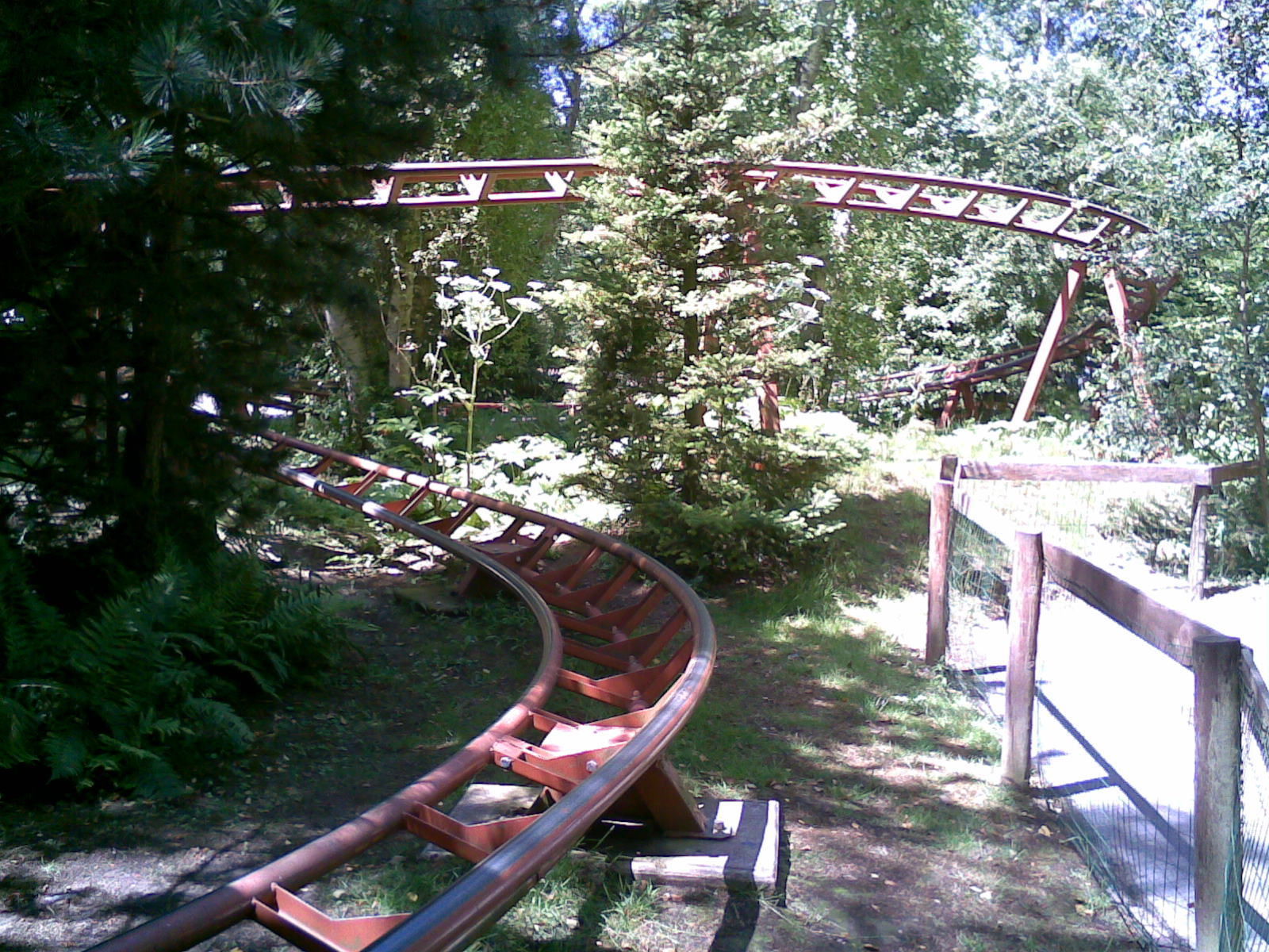 In ein kleines Wäldchen gebaut stand dann unsere letzte Bahn hier im Park. Ein kleiner KiddieCoaster, wie schon erwähnt