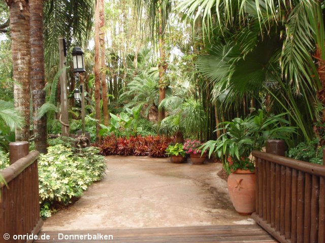 Dann ging es rein in den Park. Vom Eingang aus konnte man schon einmal einen Blick erhaschen, was einen gleich erwarten würde. Doch erst einmal ging es einen dicht mit tropischen Pflanzen bewachsenen Pfad entlang, der mit seiner entspannenden, natürlichen Soundkulisse einiges her machte. Sehr beeindruckend war auch , dass wir den Pfad ganz alleine durchlaufen sind und nicht wie sonst in Parks üblich mit einem Besucherstrom mitgezogen wurden.