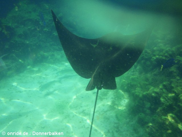 Das Mantabecken: Hier konnte man mit den faszinierenden Mantas in einem Becken schwimmen, sie streicheln oder einfach nur mit der Taucherbrille beobachten. Sehr faszinierende Tiere an denen man sich nicht satt sehen kann.