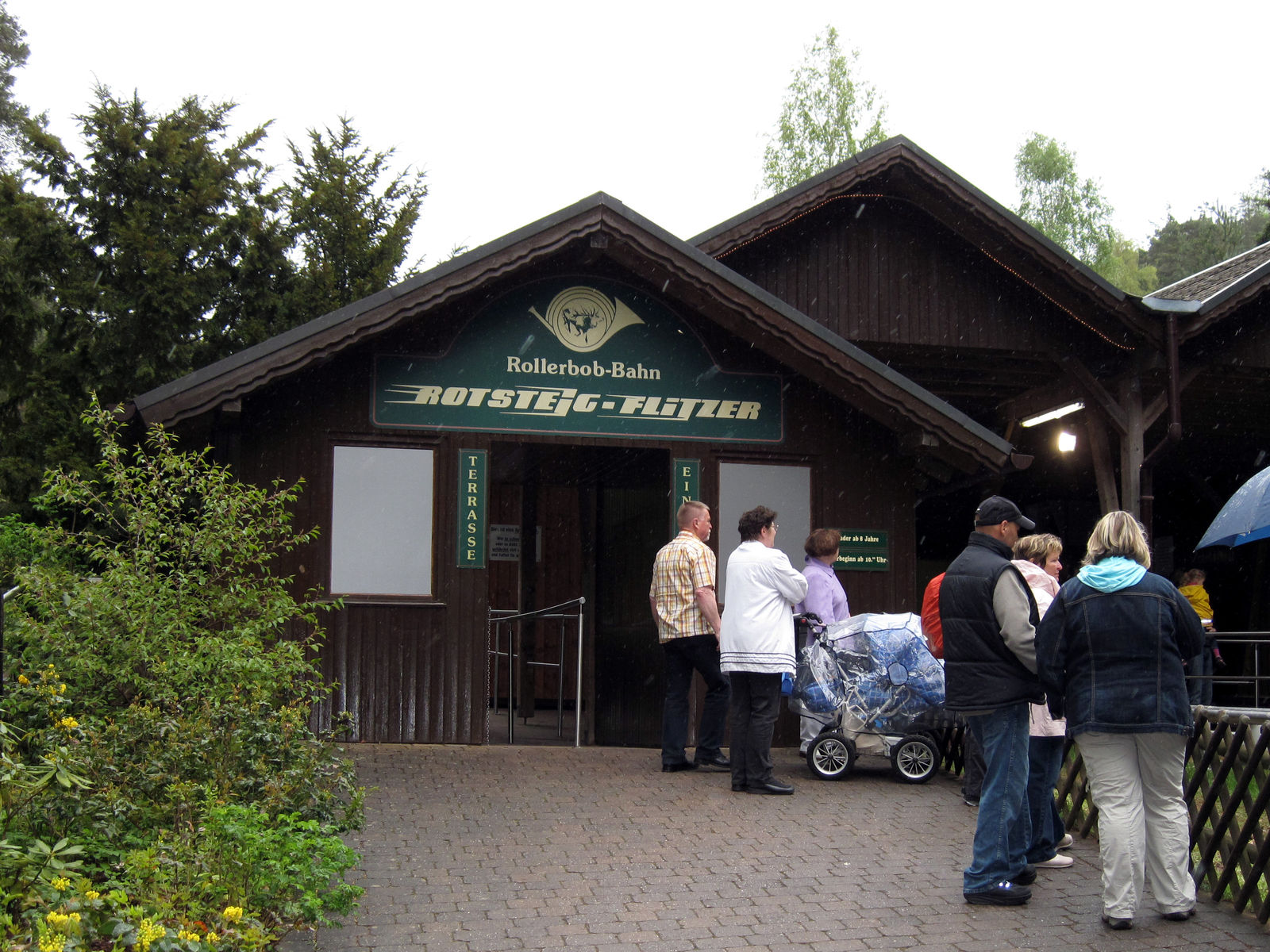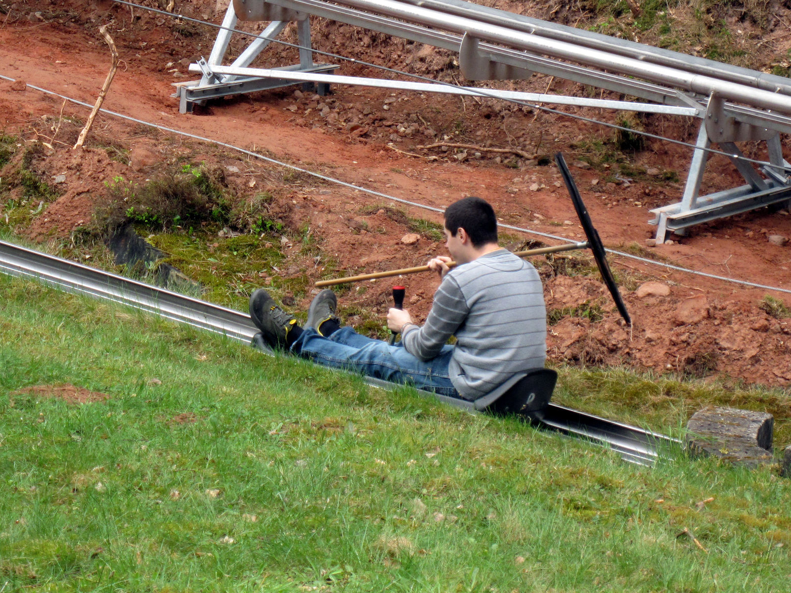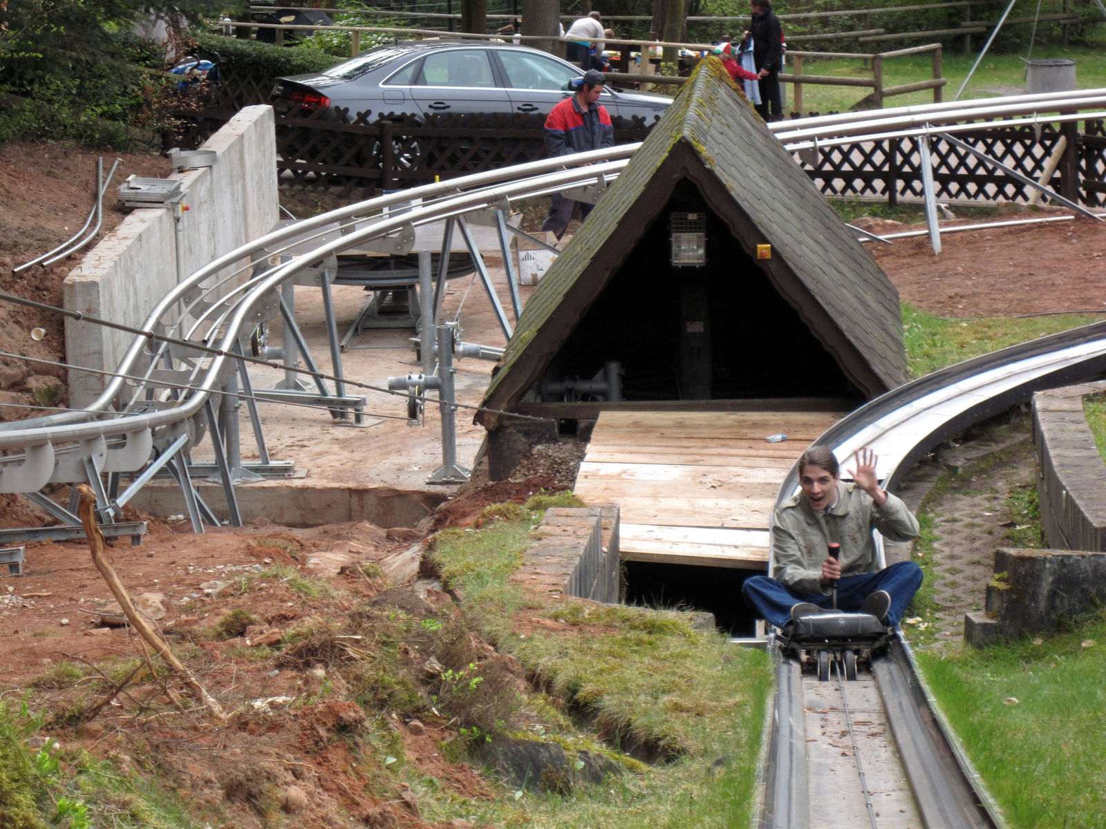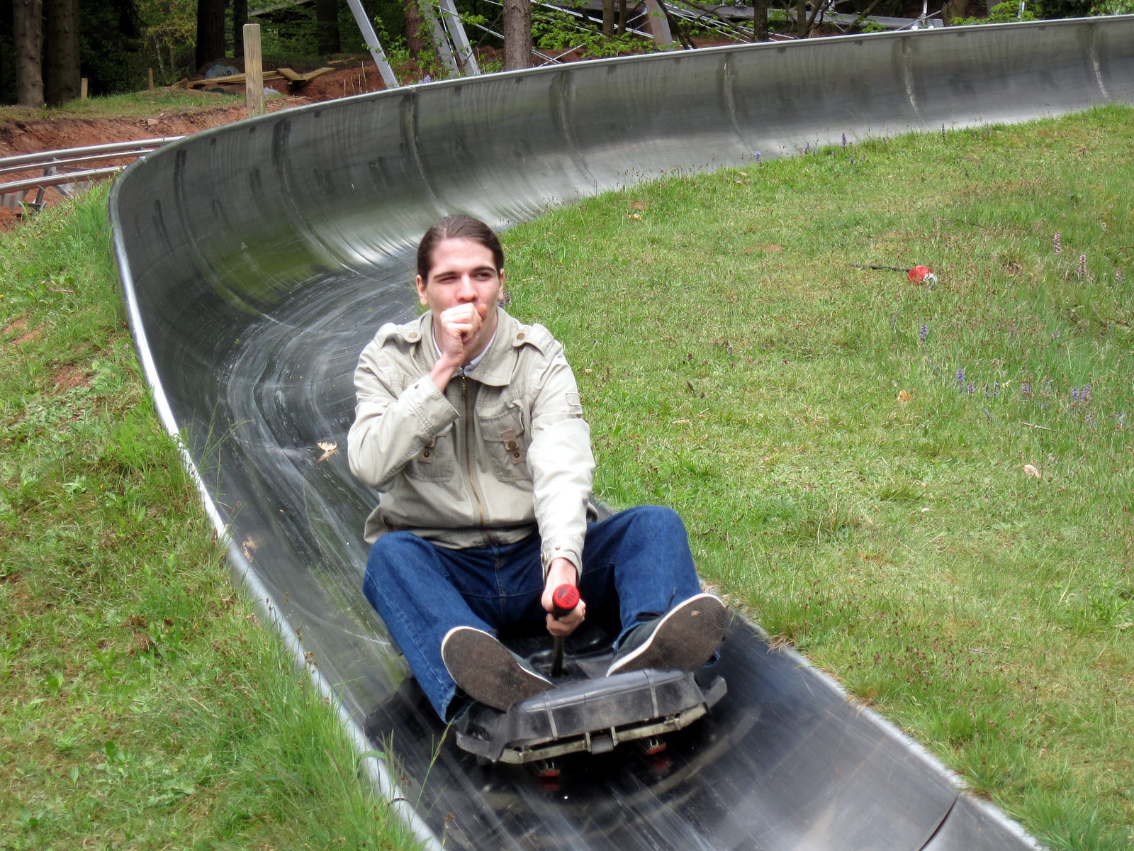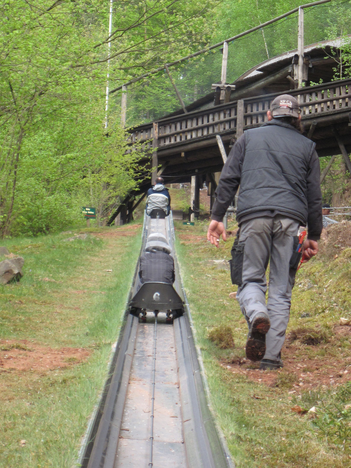 Dank leichtem Regen (und ungeschickten Fahrgästen) machte aber auch die Sommerrodelbahn erst einmal zu...