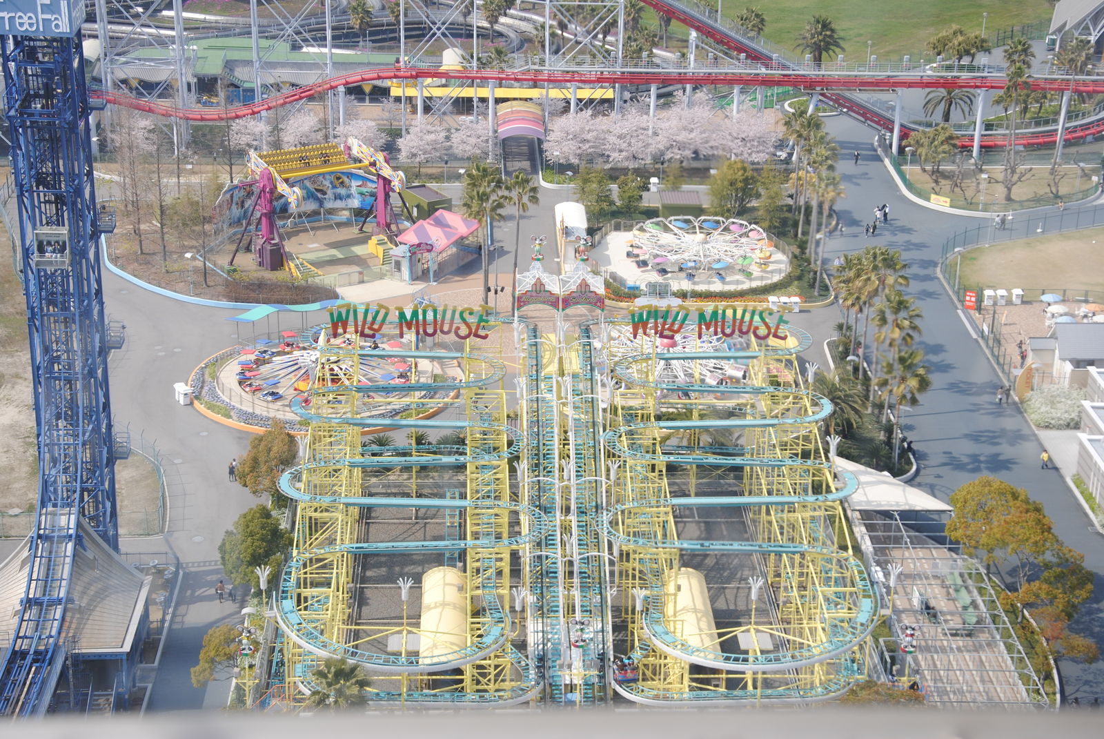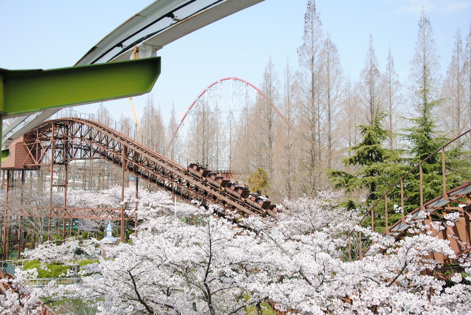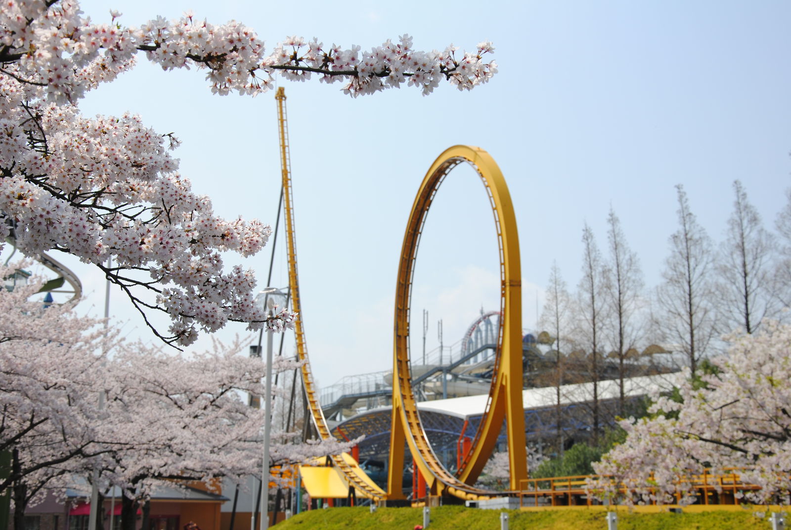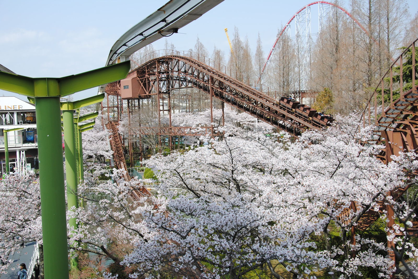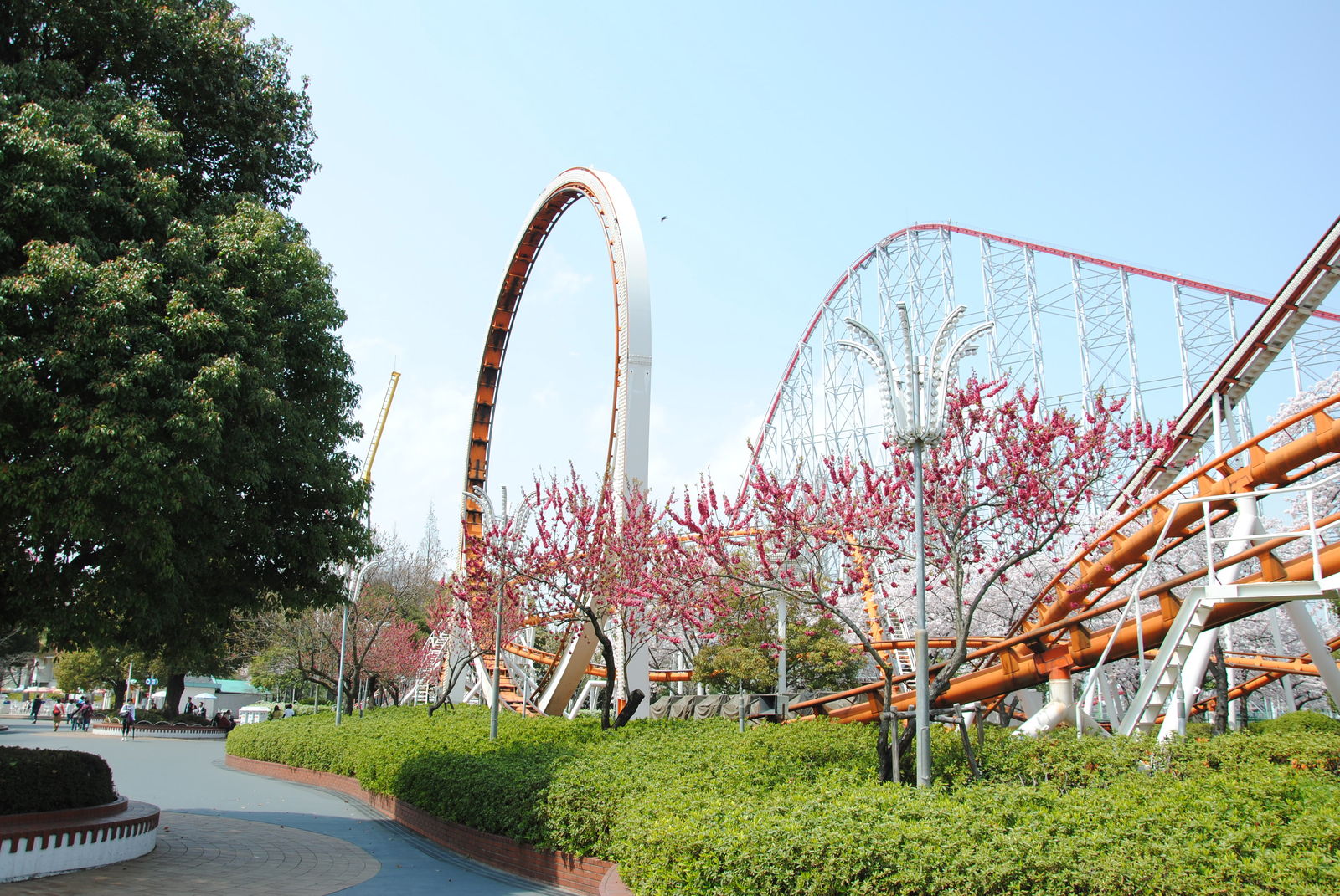 Looping Star findet man gleich 2 Achterbahnen von Schwarzkopf hier vor. Beide Bahnen wurden von schönen Kirschblüten eingerahmt, kommen auch in Japan ohne Schulterbügel aus, waren Top gepflegt und konnten voll überzeugen. Was will man mehr?