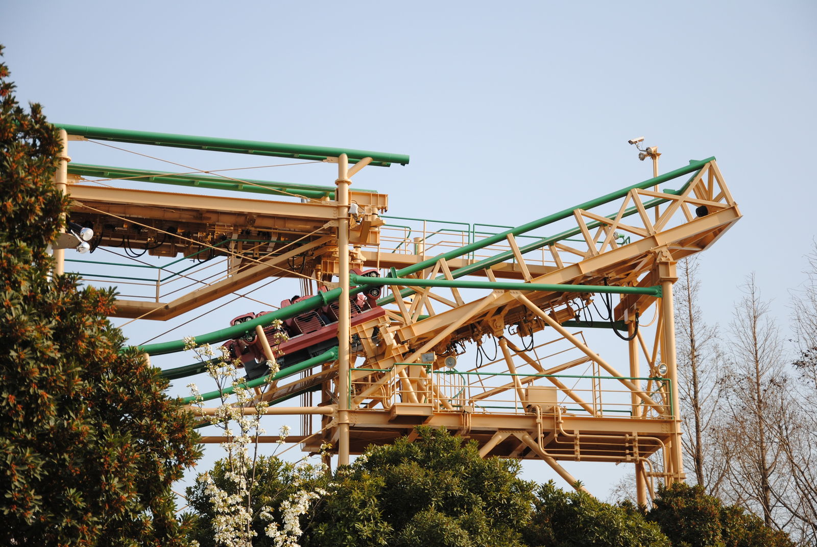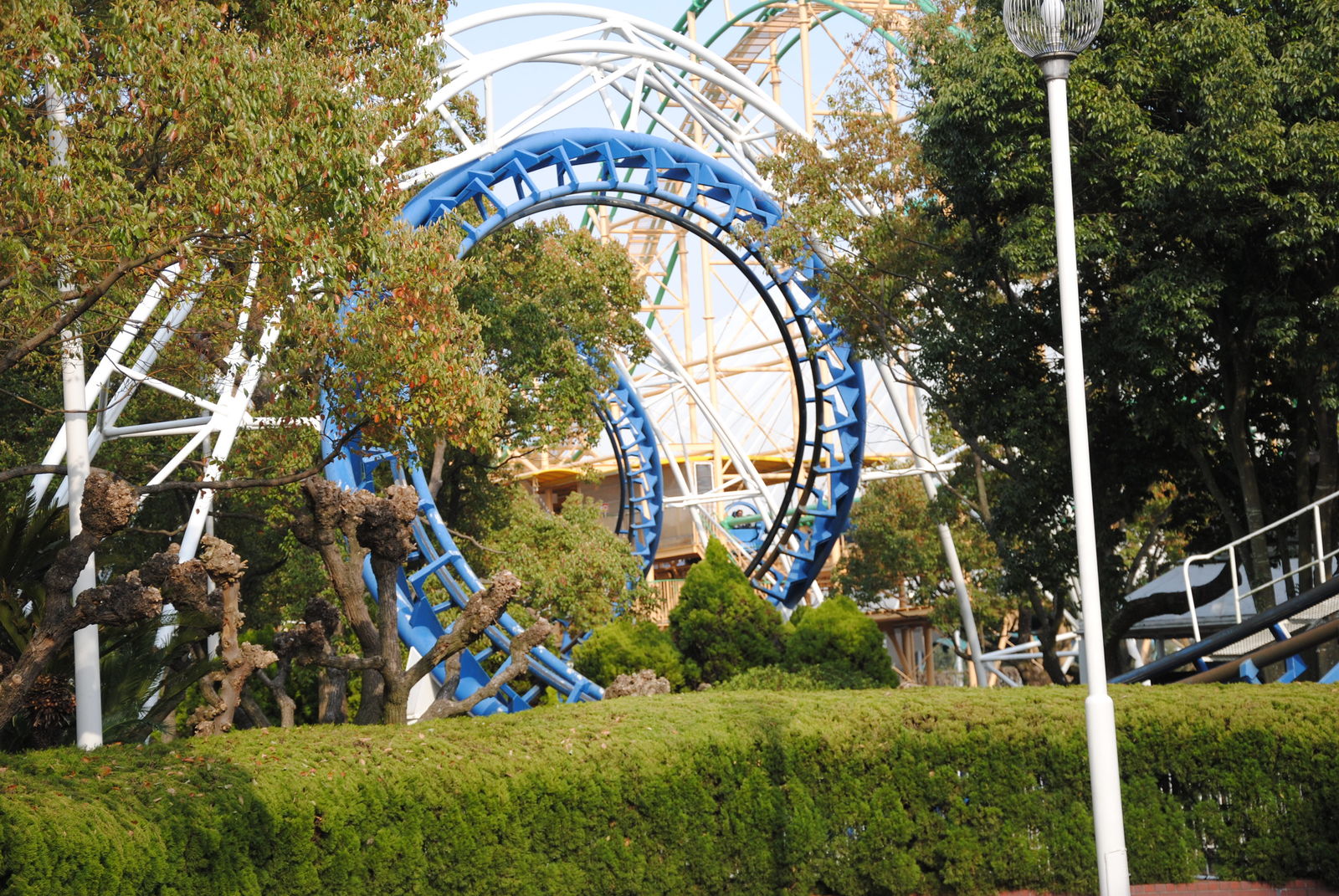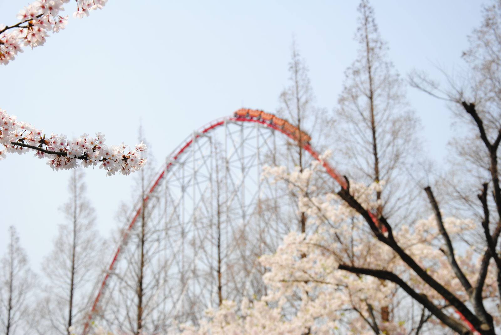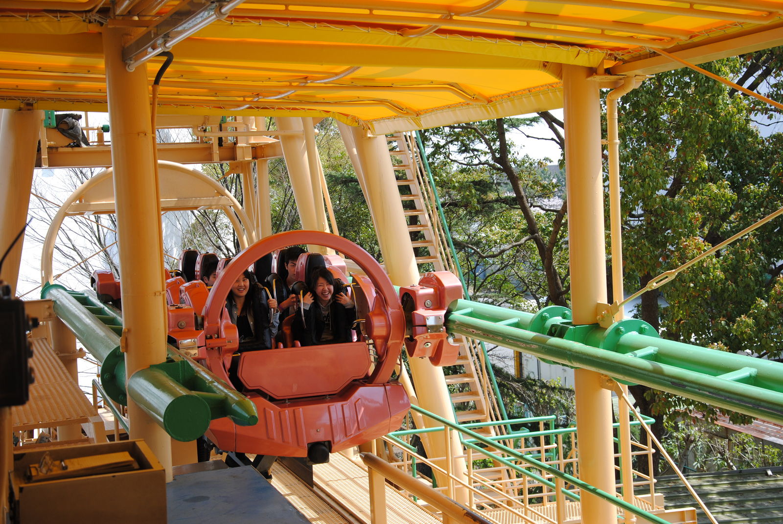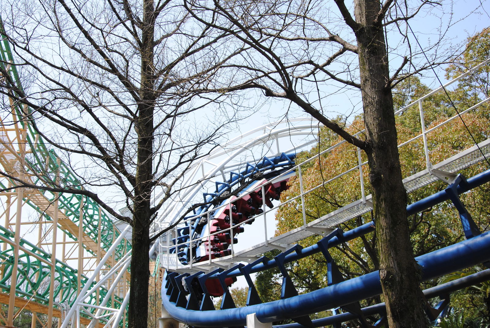 Looping Star findet man gleich 2 Achterbahnen von Schwarzkopf hier vor. Beide Bahnen wurden von schönen Kirschblüten eingerahmt, kommen auch in Japan ohne Schulterbügel aus, waren Top gepflegt und konnten voll überzeugen. Was will man mehr?
