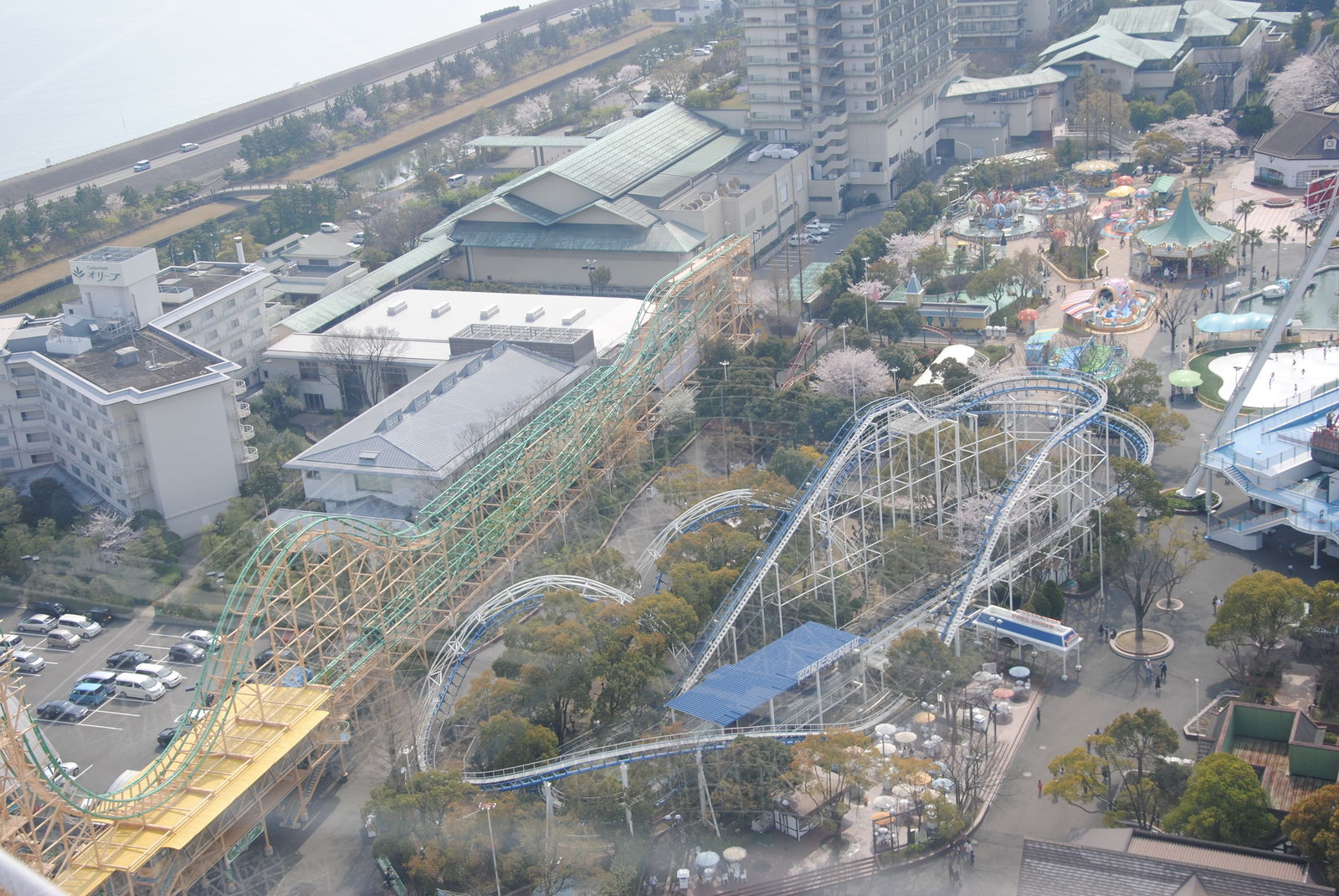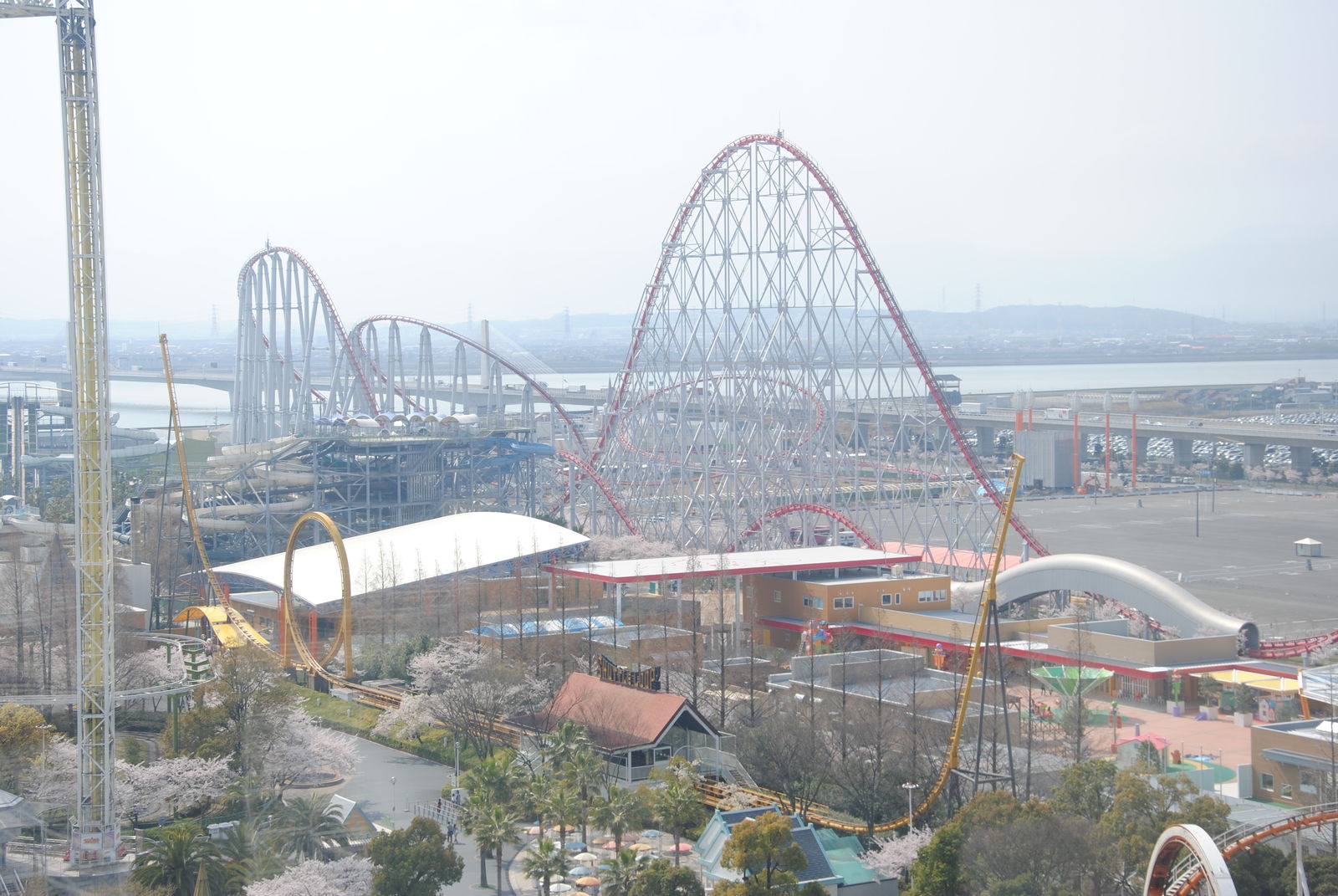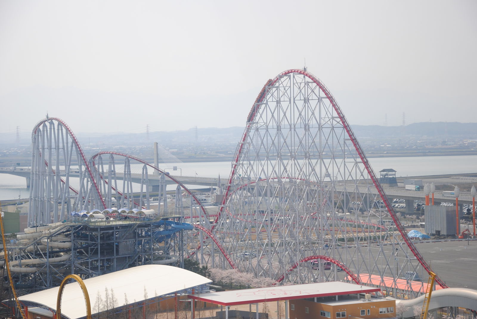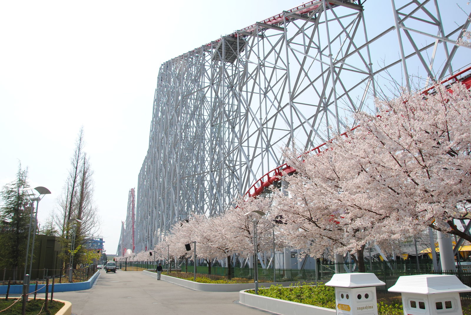 Im April sind wir für 3 Wochen durch Japan gereist und haben dabei auch ein paar Freizeitparks besucht. Erste Station war das Nagashima Spaland, einer der größten Freizeitparks in Japan. Dieser befindet sich in der Nähe der Millionenstadt Nagoya und ist einfach per Bahn und Bus zu erreichen, sofern man nicht am Bahnhof Nagashima aussteigt. Der Park ist gut gepflegt, kommt ohne große Thematisierung aus und hat auch einige Achterbahn-Raritäten zu bieten. So kann man in Nagashima gleich mit zwei Achterbahnen von Schwarzkopf fahren und auch einen der seltenen Utratwister von Togo findet man hier. Hauptattraktion ist aber Steel Dragon 2000, diese Achterbahn von Morgan hat einige statistischen Superlative zu bieten; die längste Achterbahn der Welt; die höchste Achterbahn mit einem Lifthill; die höchste Achterbahn Japans. Manche bezeichnen den Drachen aber „nur“ als die schnellste und höchste Familienachterbahn der Welt. Wie auch immer, es steht fest dass die Bahn hoch und schnell ist. Die Bahn hat ein simples „out and back Layout“. Nach der rund 90-sekündigen Lifthillauffahrt mit Blick aufs Meer (und Industrieanlagen) erfolgt die knapp 90 m hohe Abfahrt und die Bahn erreicht ihre Höchstgeschwindigkeit von 150 km/h. Nach einem