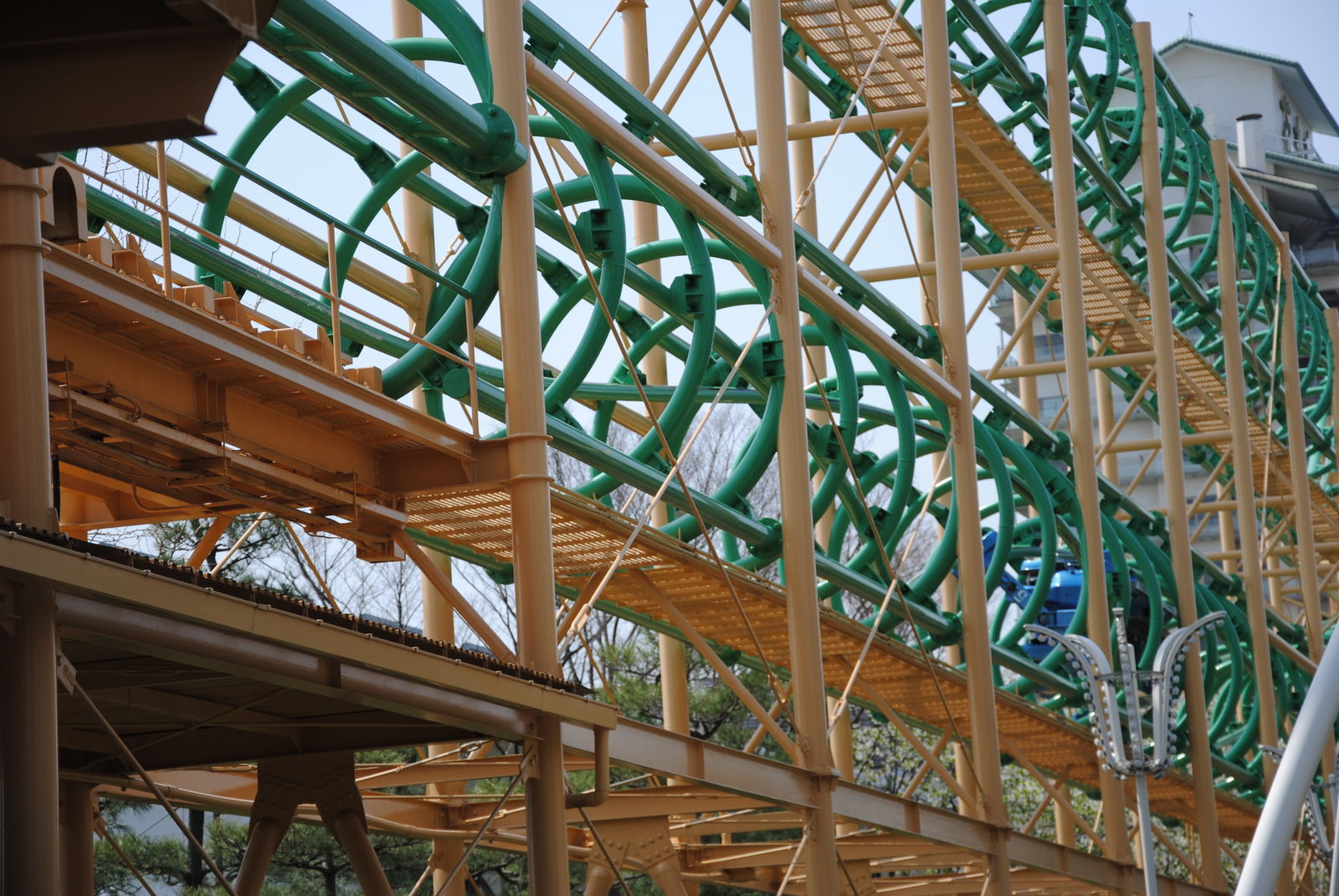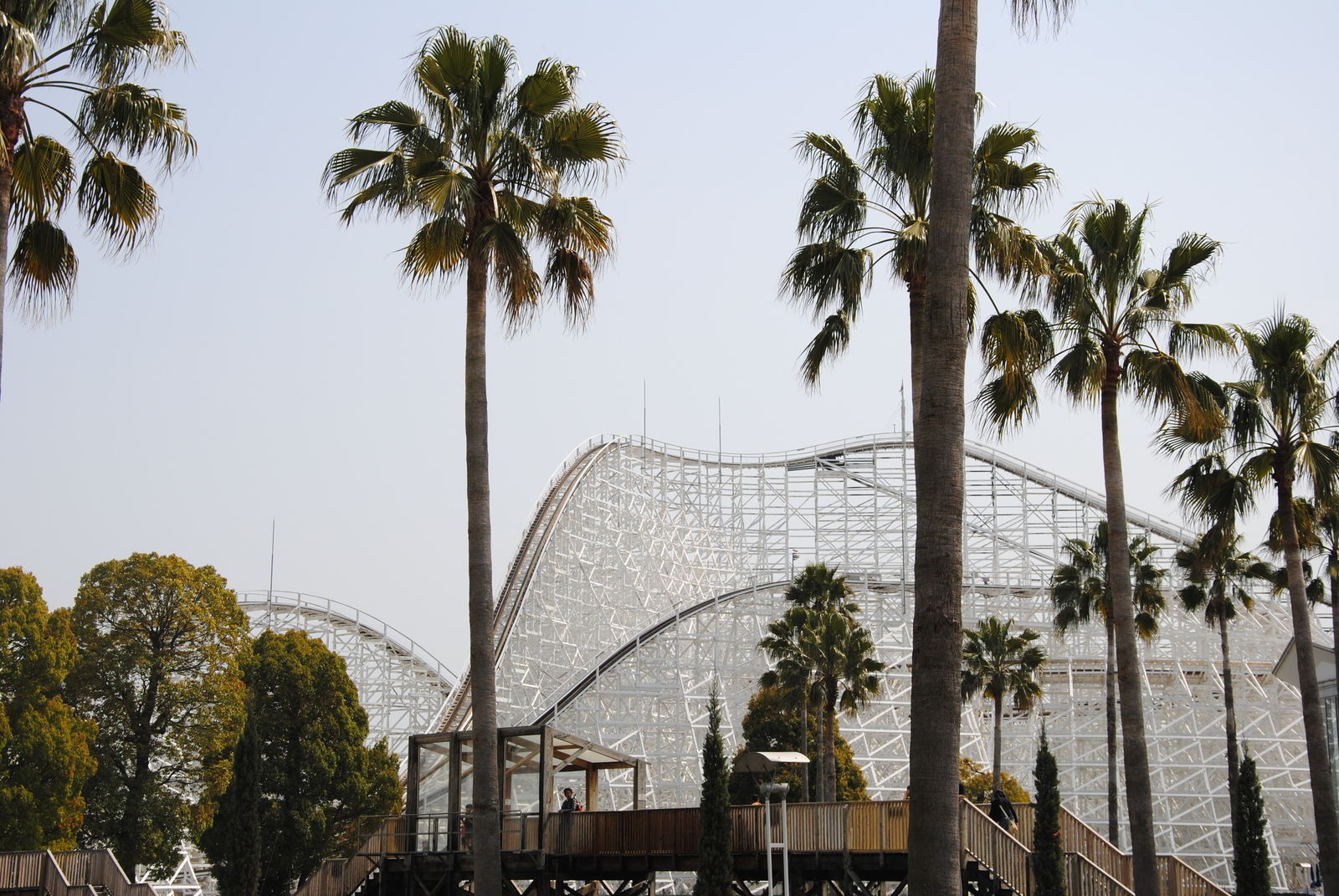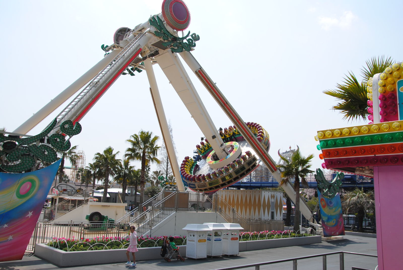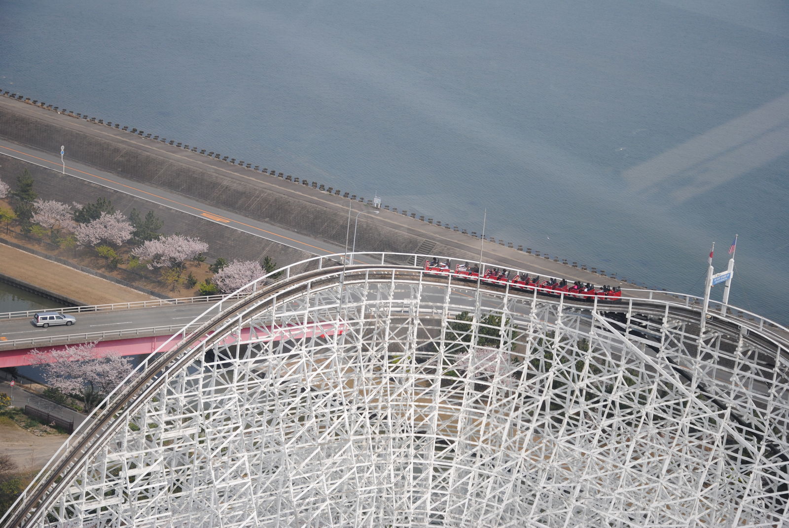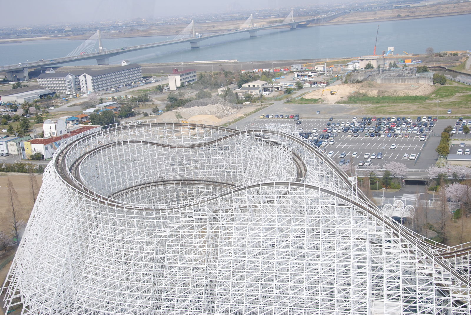 Im April sind wir für 3 Wochen durch Japan gereist und haben dabei auch ein paar Freizeitparks besucht. Erste Station war das Nagashima Spaland, einer der größten Freizeitparks in Japan. Dieser befindet sich in der Nähe der Millionenstadt Nagoya und ist einfach per Bahn und Bus zu erreichen, sofern man nicht am Bahnhof Nagashima aussteigt. Der Park ist gut gepflegt, kommt ohne große Thematisierung aus und hat auch einige Achterbahn-Raritäten zu bieten. So kann man in Nagashima gleich mit zwei Achterbahnen von Schwarzkopf fahren und auch einen der seltenen Utratwister von Togo findet man hier. Hauptattraktion ist aber Steel Dragon 2000, diese Achterbahn von Morgan hat einige statistischen Superlative zu bieten; die längste Achterbahn der Welt; die höchste Achterbahn mit einem Lifthill; die höchste Achterbahn Japans. Manche bezeichnen den Drachen aber „nur“ als die schnellste und höchste Familienachterbahn der Welt. Wie auch immer, es steht fest dass die Bahn hoch und schnell ist. Die Bahn hat ein simples „out and back Layout“. Nach der rund 90-sekündigen Lifthillauffahrt mit Blick aufs Meer (und Industrieanlagen) erfolgt die knapp 90 m hohe Abfahrt und die Bahn erreicht ihre Höchstgeschwindigkeit von 150 km/h. Nach einem