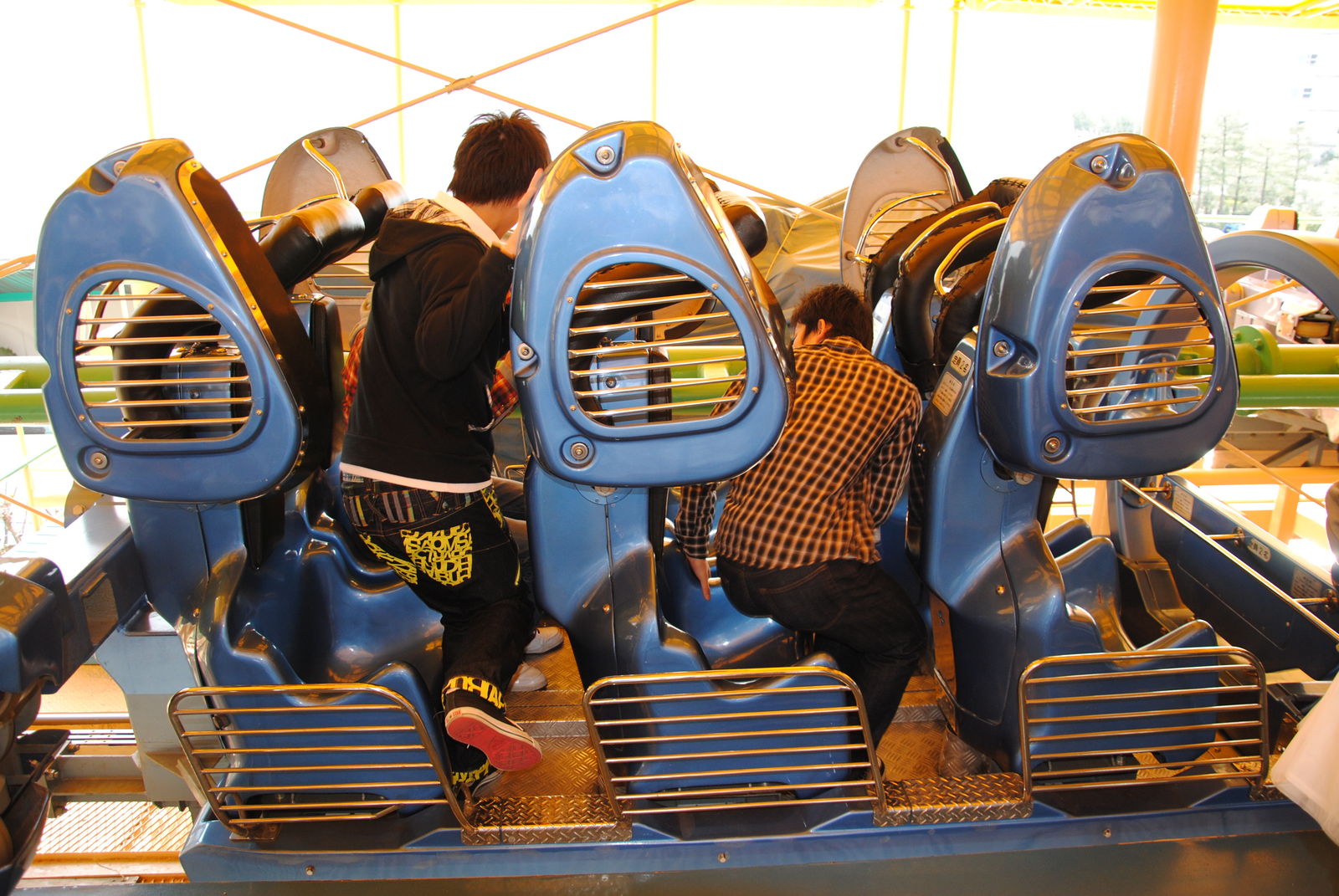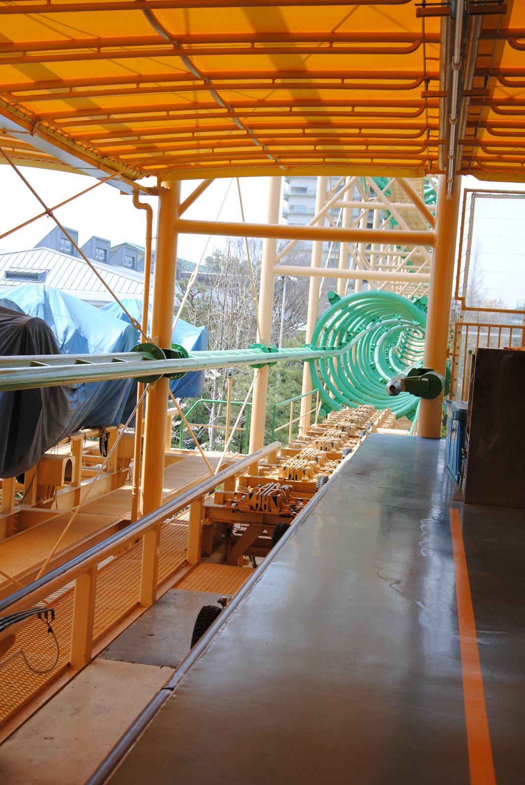 Eine weitere Rarität in Nagashima ist der Ultra Twister von Togo. Auf die Fahrt war ich sehr gespannt und dann sogar positiv überrascht. Nach dem Einsteigen in die wuchtigen Wagen rollt man ein paar Meter rückwärts, um dann nach hinten abgekippt zu werden und den senkrechten Lifthill zu erklimmen. Es folgen die fast senkrechte Abfahrt und der