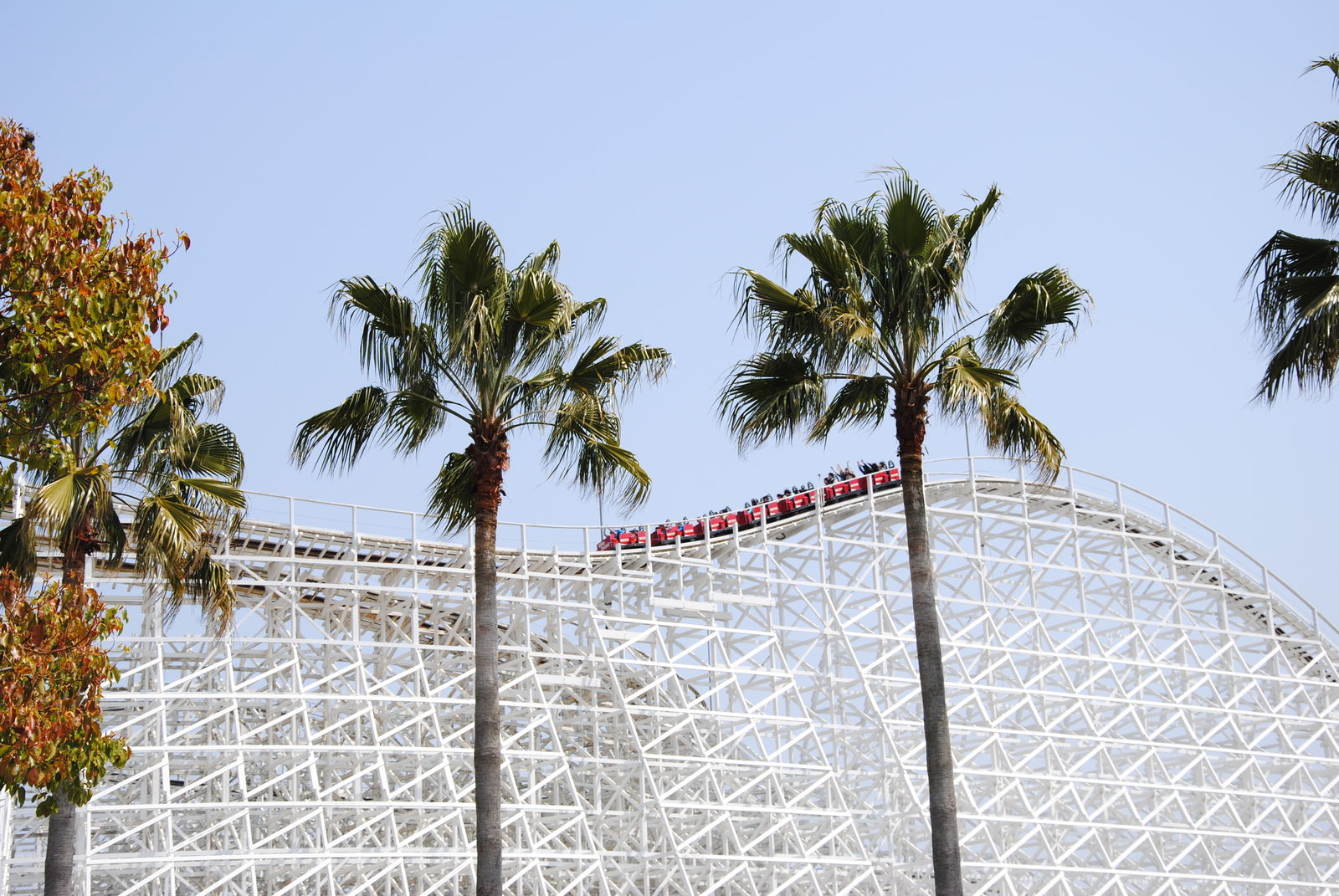 Mit White Cyclone gibt es im Nagashima Spaland auch eine Holzachterbahn, welche über eine beachtliche Streckenlänge und daher recht lange Fahrtzeit von über zweieinhalb Minuten verfügt. Langgezogenen Helices und mehrer Ab- und Auffahrten wechseln sich bei der Bahn ab und ist gibt auch immer wieder ein paar Streckenabschnitte, die vorher nicht gut einsehbar sind. Leichte