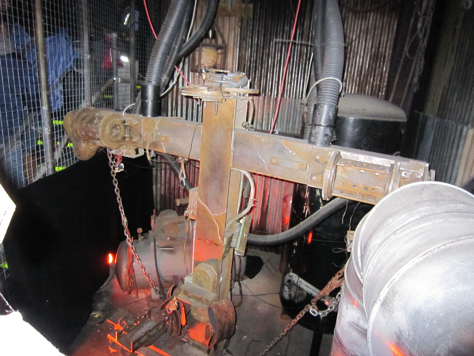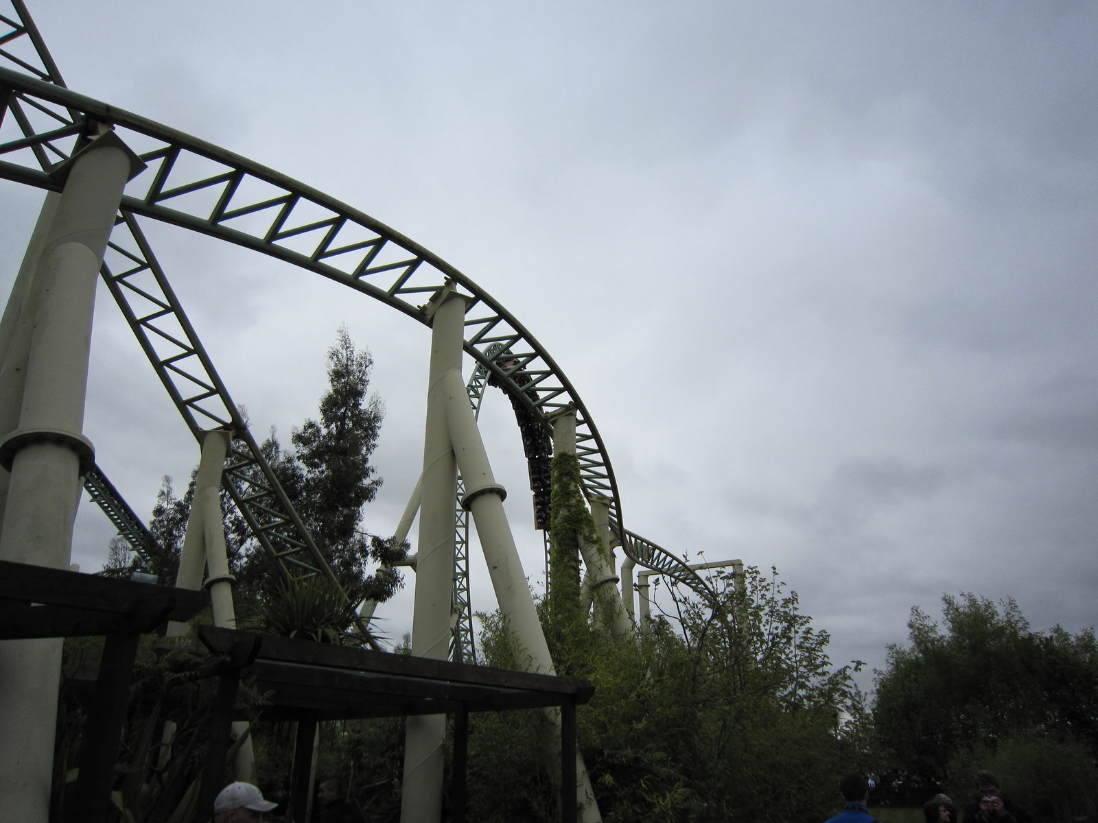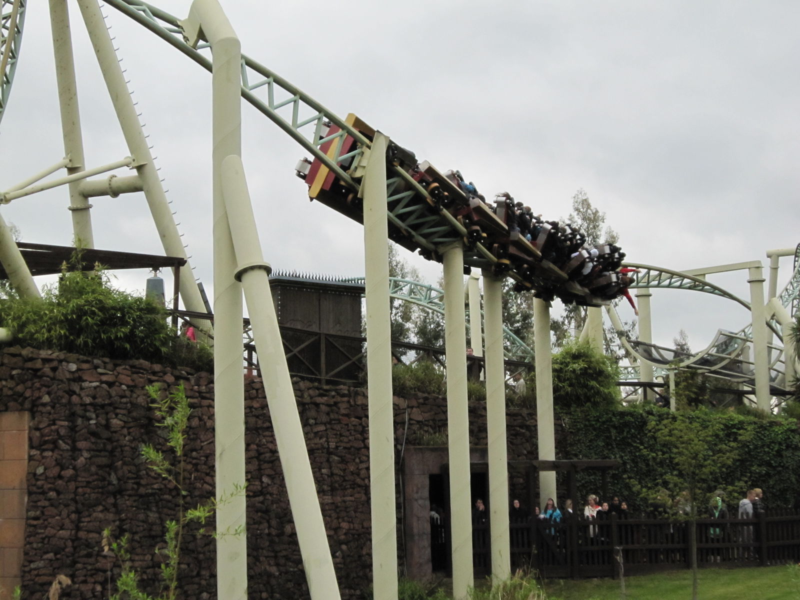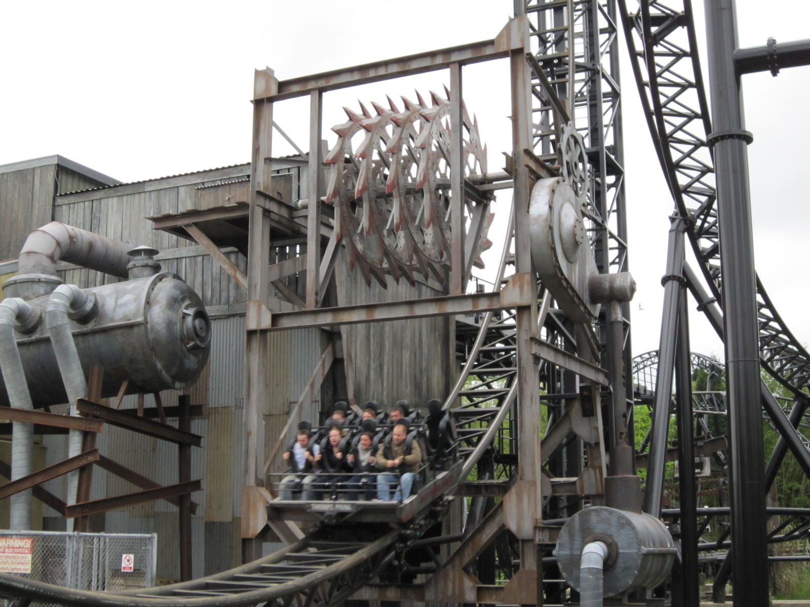 Nun setzte ein kräftiger Regenschauer ein. Die Zeit, in der es regnete, nutzen wir zu einem ausgiebigen Mahl beim Volkskönig. Da die Wartezeit bei Colossus auch so bei 90 Minuten lag, entschieden wir uns zum Kauf eines FastTrackTickets. Und wo wir schon mal dabei waren, holten wir uns gleich noch ein SAW-FastTrack-Package, welches den Ride und das Maze enthielt dazu. Nach der Fahrt auf Colossus ging es also nochmal zu SAW. Dieses Mal im zweiten Wagen, wodurch wir im Indoor-Part von der Show auch was mit bekamen und nicht nur einfach daran vorbei fuhren.