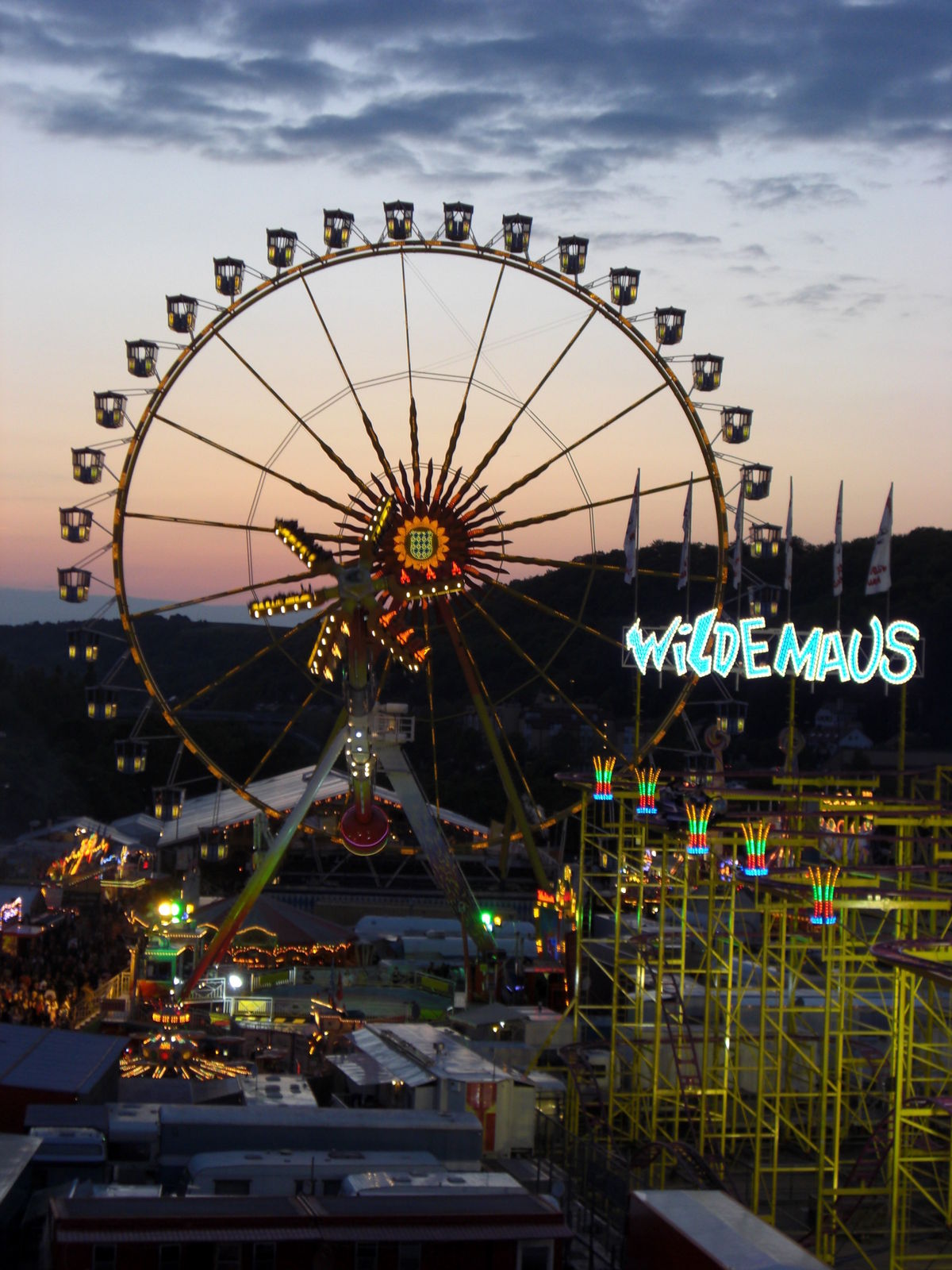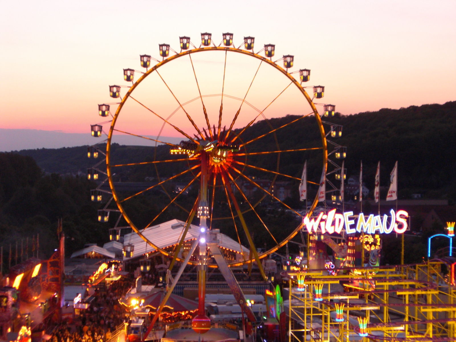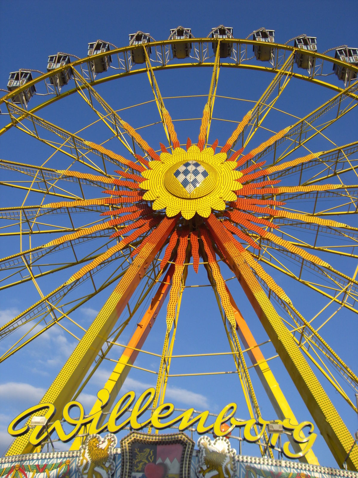 Alljährlich zur Maidult zu Gast, das gelbe Riesenrad der Willenborgs aus München.