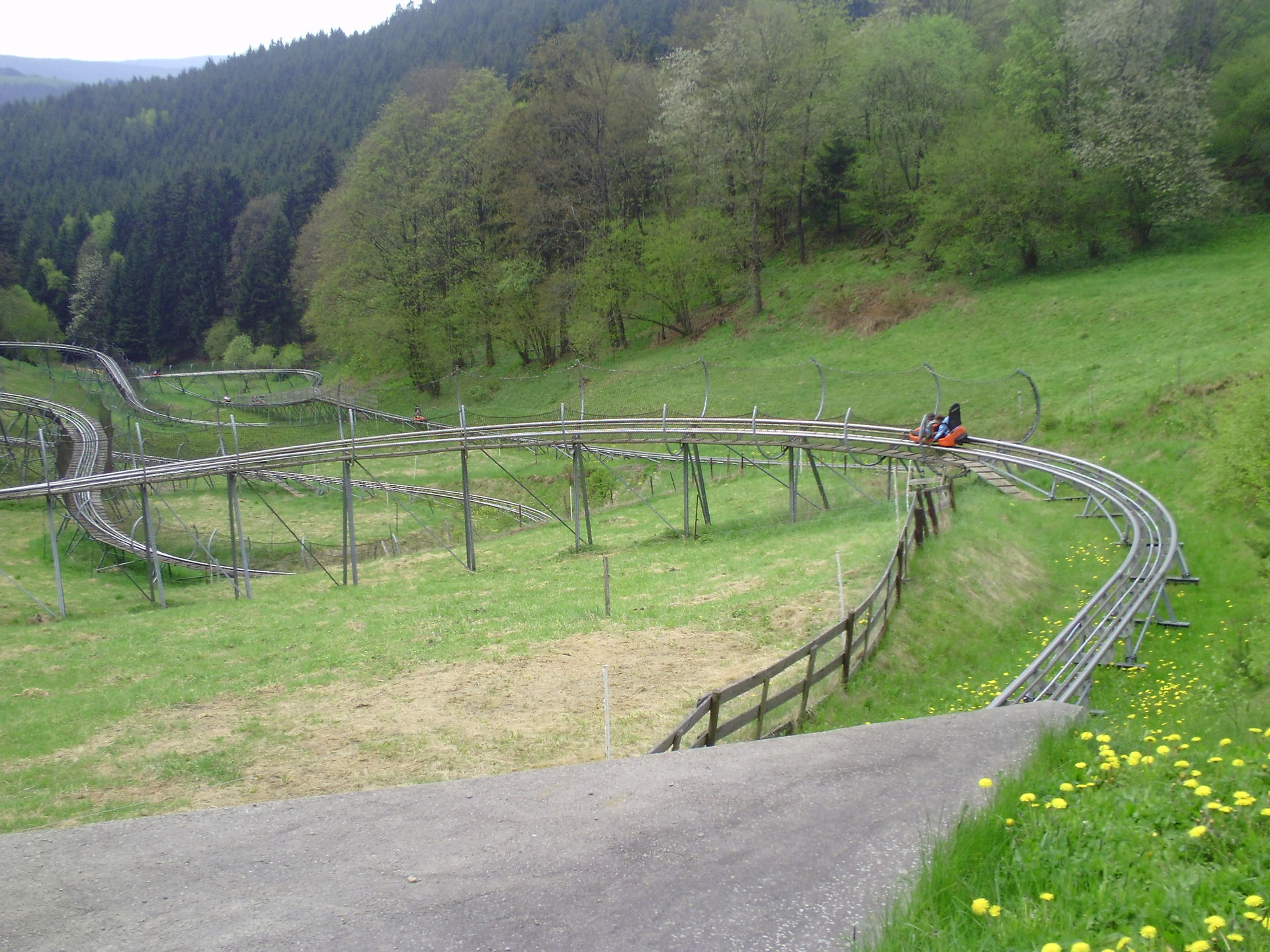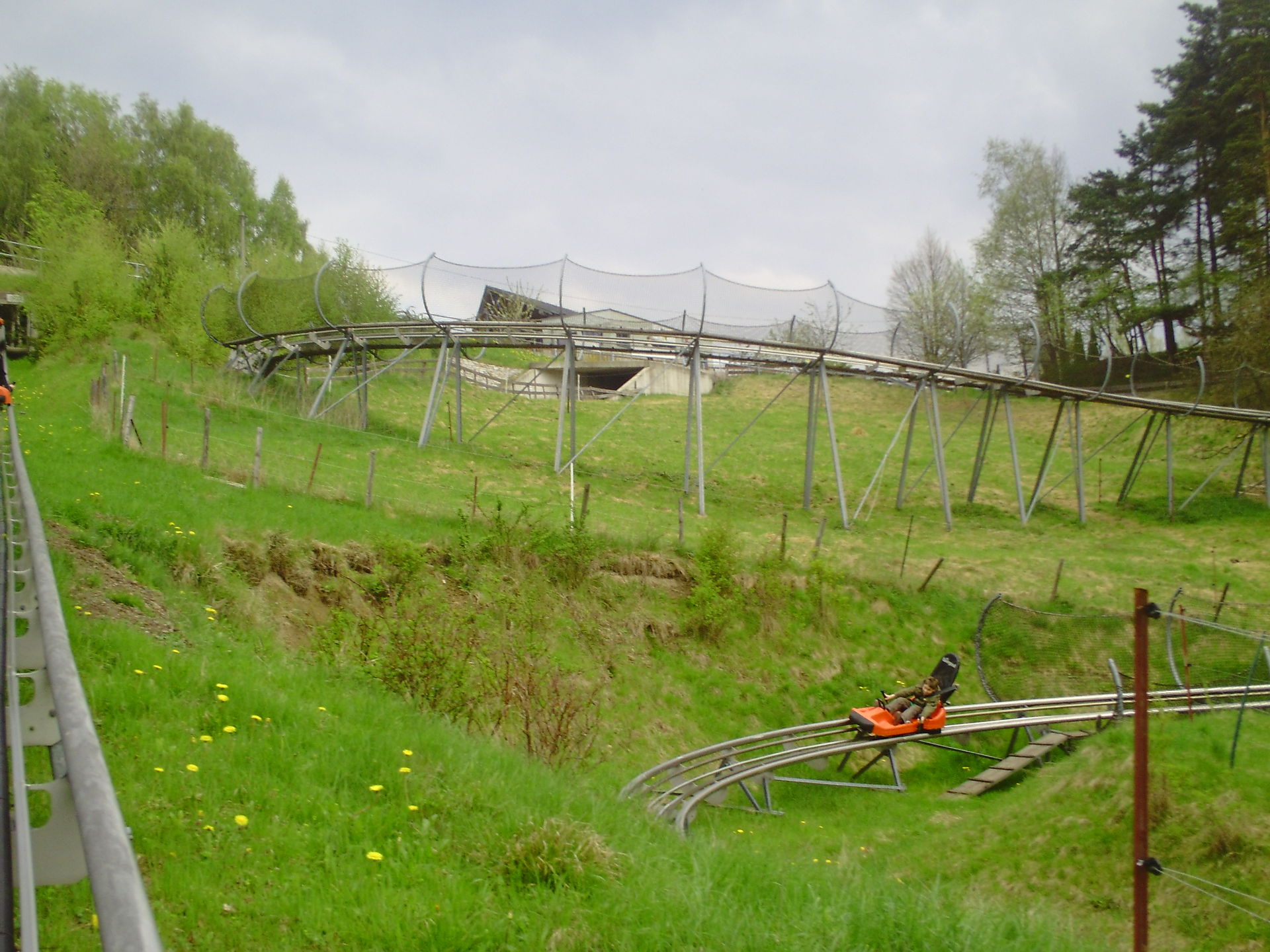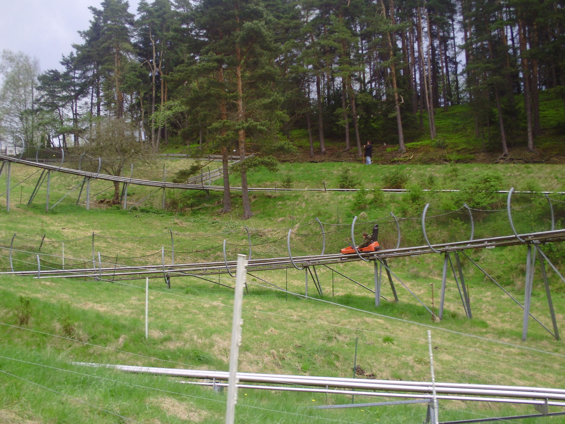 Dann rechts halten und den Schildern zur Rodelbahn folgen, sind nicht zu übersehen. Eine Fahrt kostet 2,50Euro.