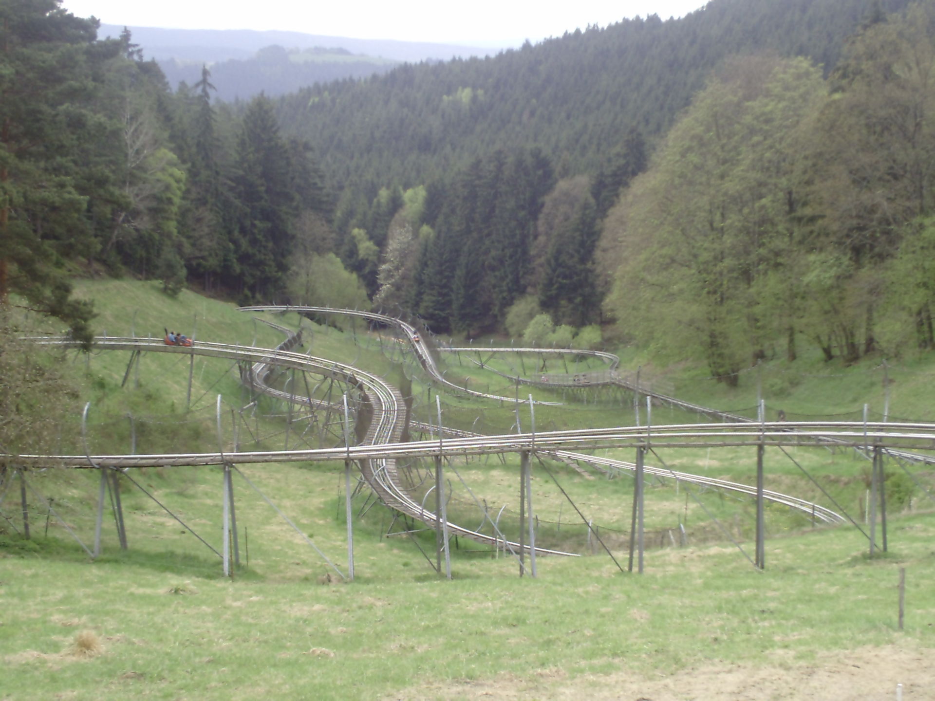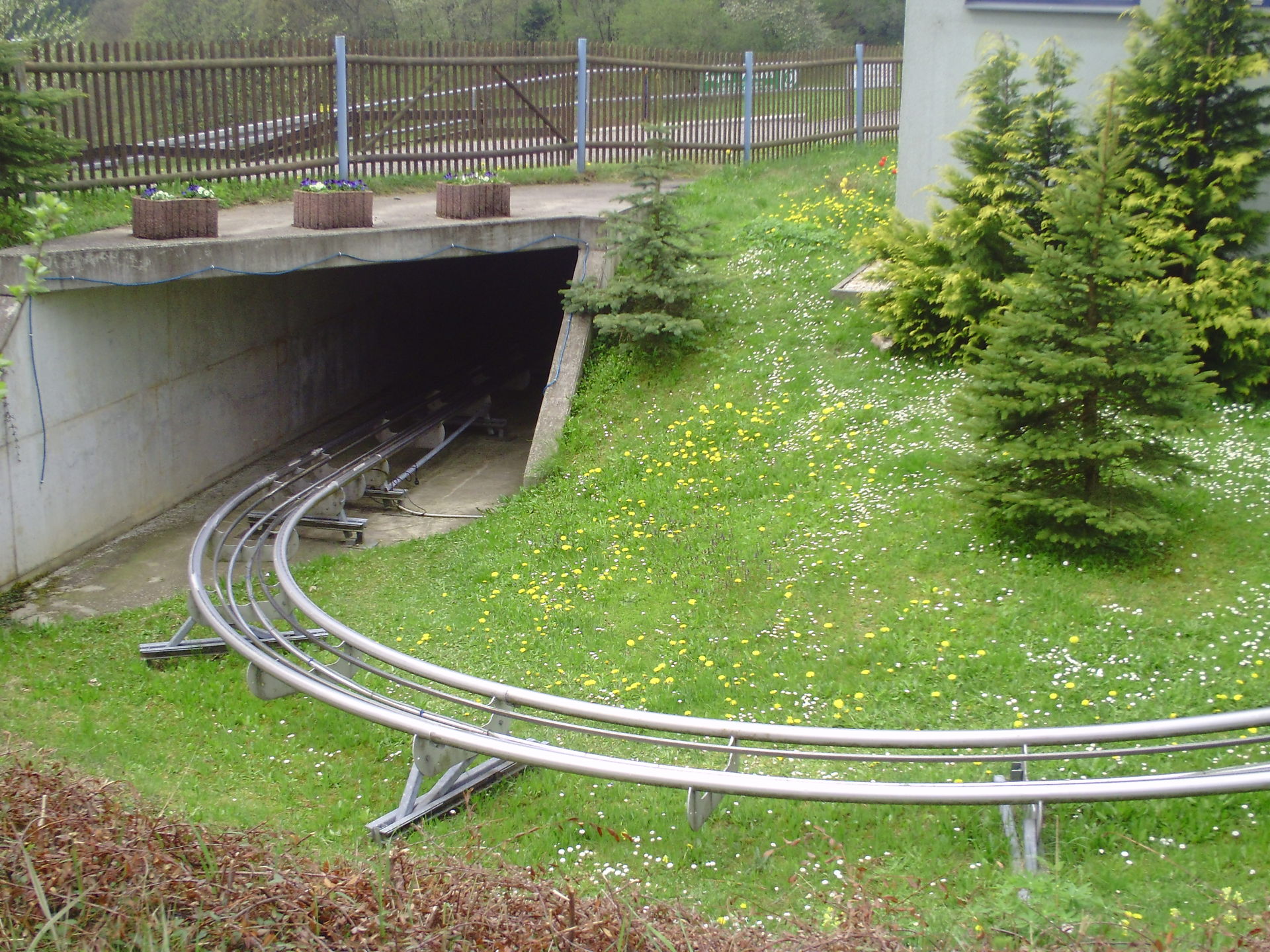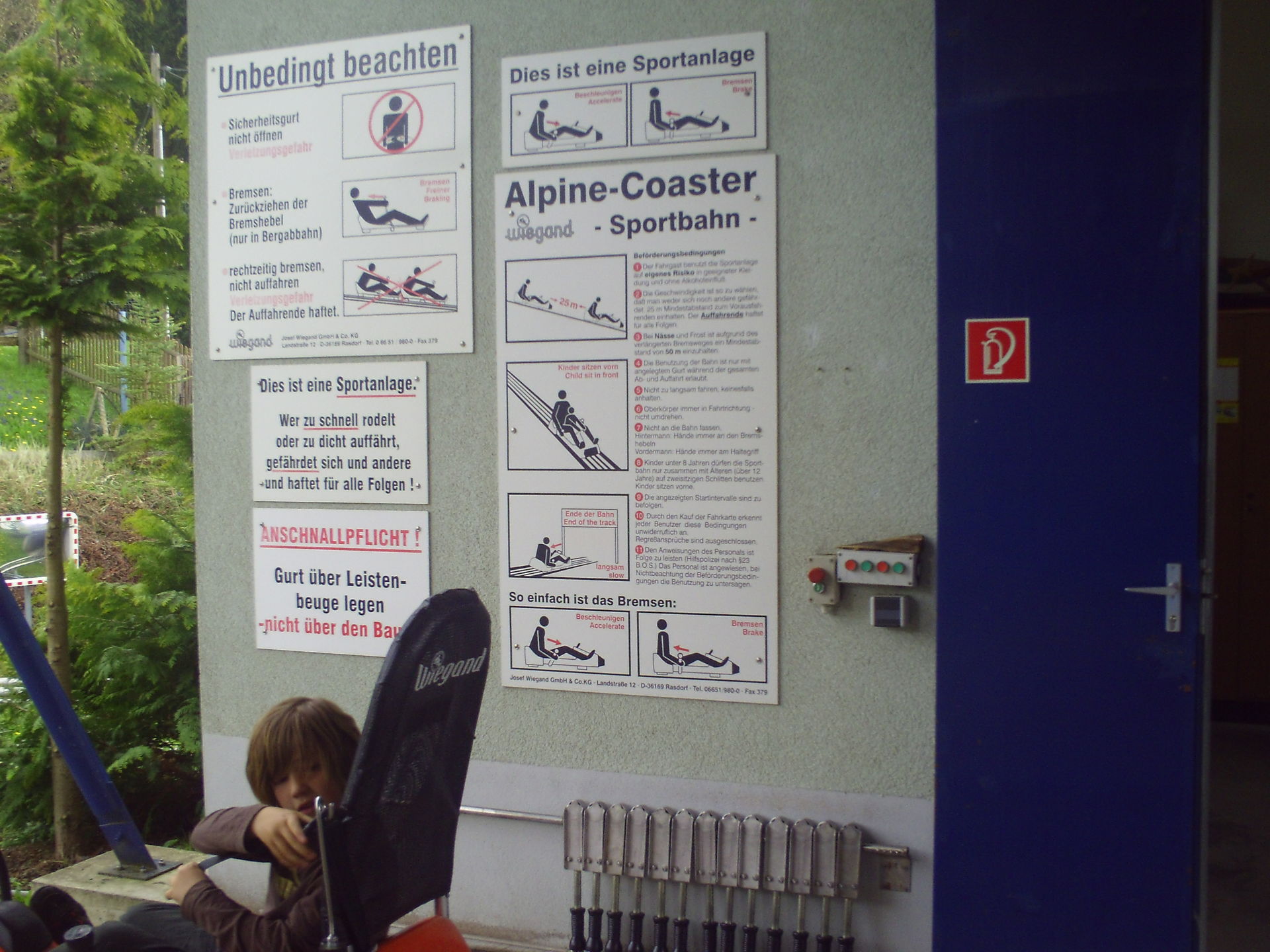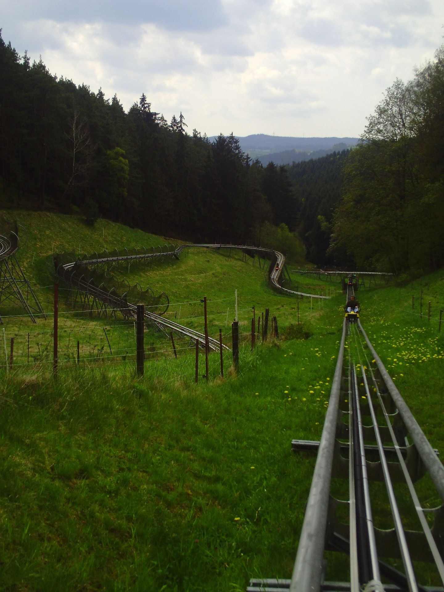 Dann rechts halten und den Schildern zur Rodelbahn folgen, sind nicht zu übersehen. Eine Fahrt kostet 2,50Euro.
