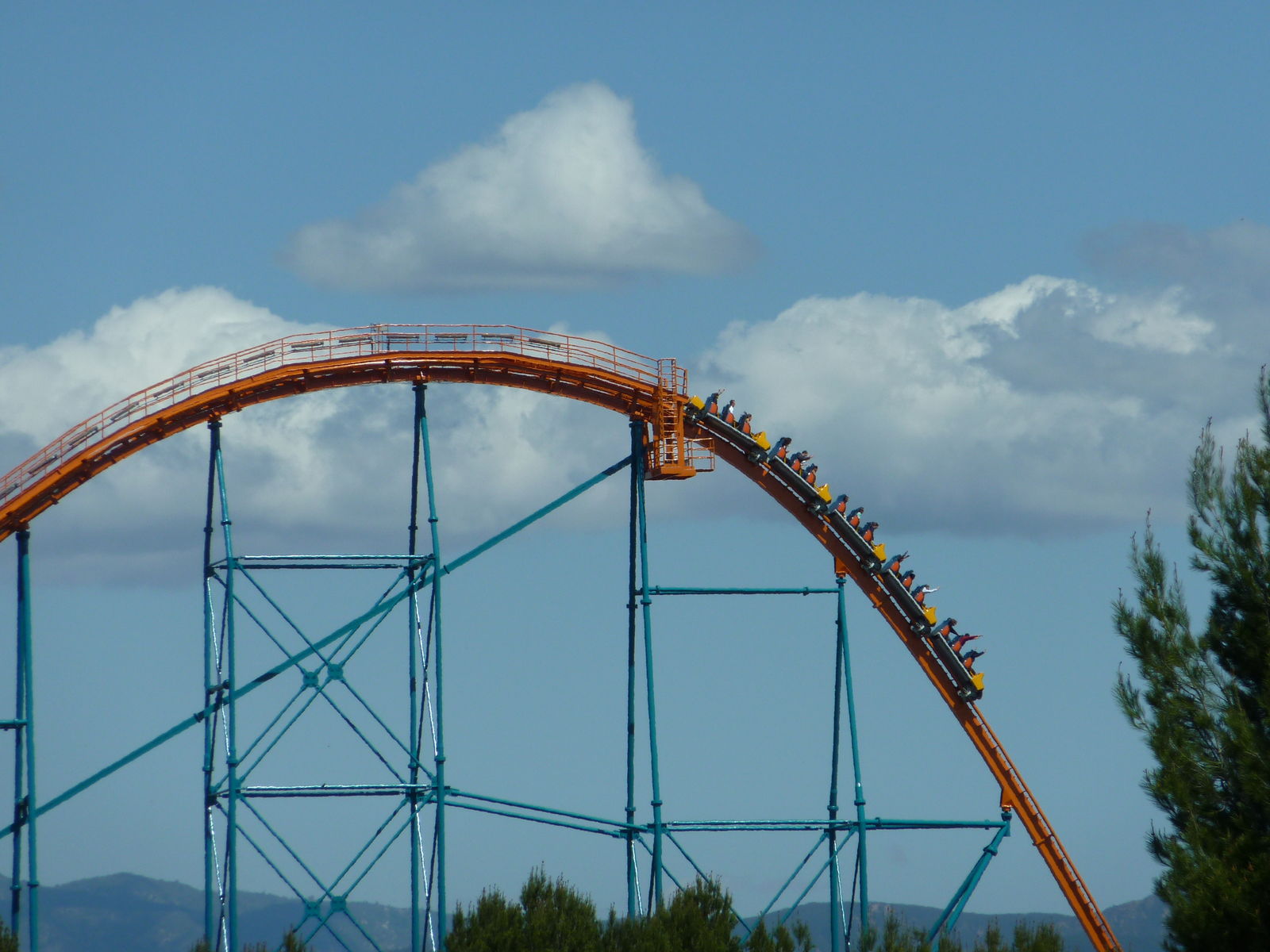 Flying Coaster und ich muss sagen GEIL GEIL GEIL. Besonders wenn man im Halfloop in die Tiefe stürzt, auf dem Rücken liegt, gegen die extremen
