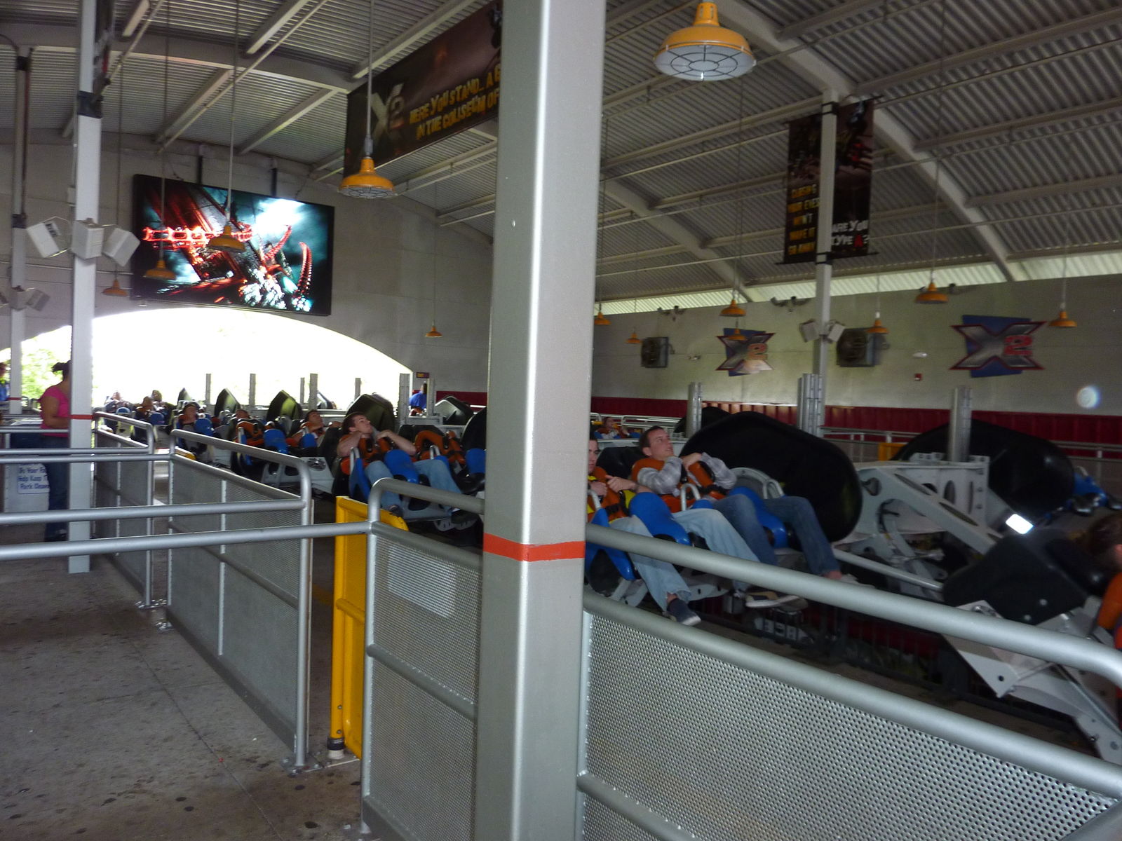 Mit recht langer Pre Show ( gute 10 Minuten ), was natürlich bei einer Wartezeit von 0 Minuten extrem genervt hat. So musste man, falls man mal nicht sitzen bleiben konnte, die gesamte Pre Show wieder "durchleben".
