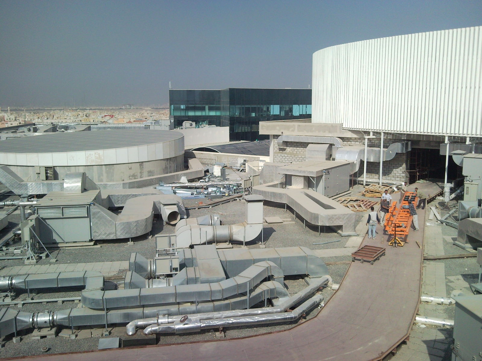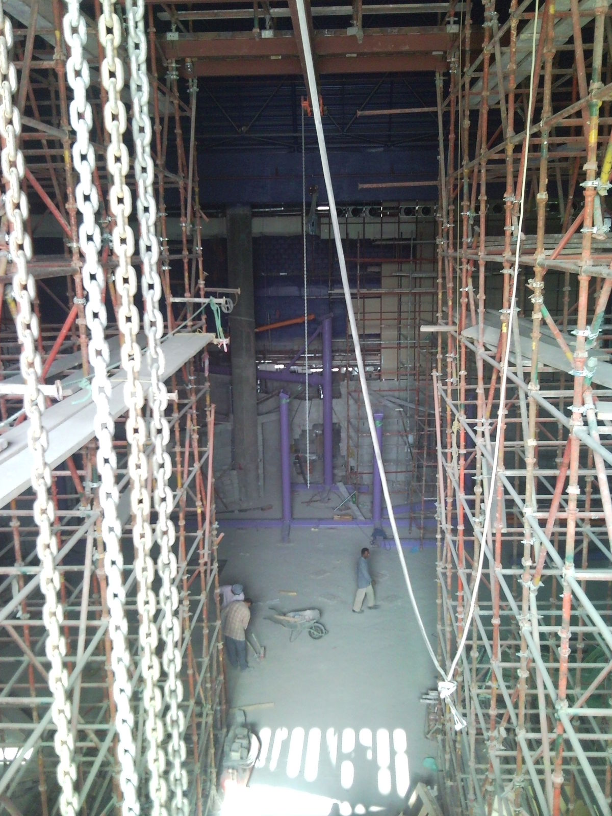 Nach der Ankunft auf dem Dach wurde die Ameisen Taktik gewählt. Viele indische und pakistanische Ameisen mussten das Material per Hand über das Dach Richtung Mall verfrachten. Bei über 40° im Schatten kein wirkliches Vergnügen.