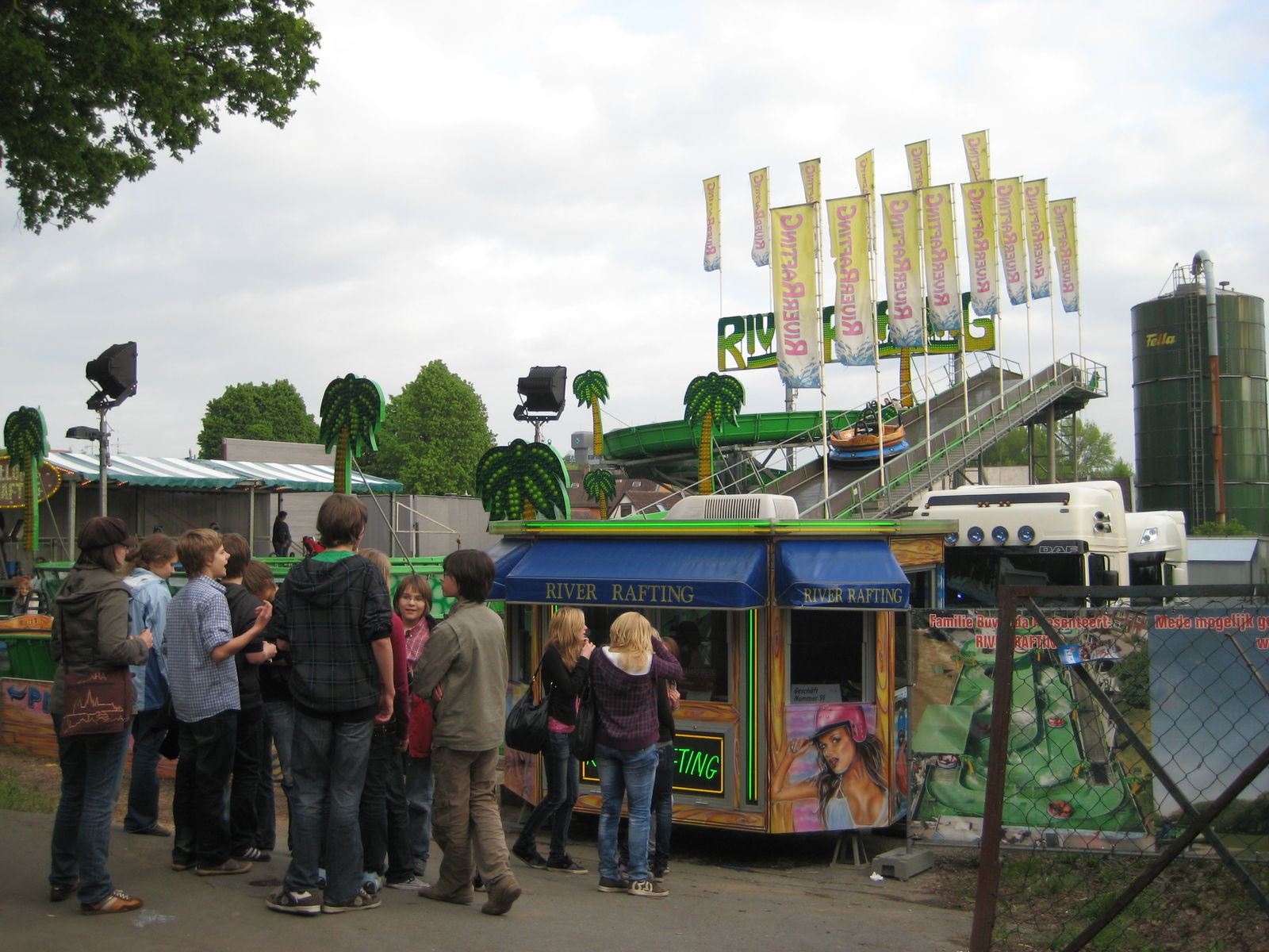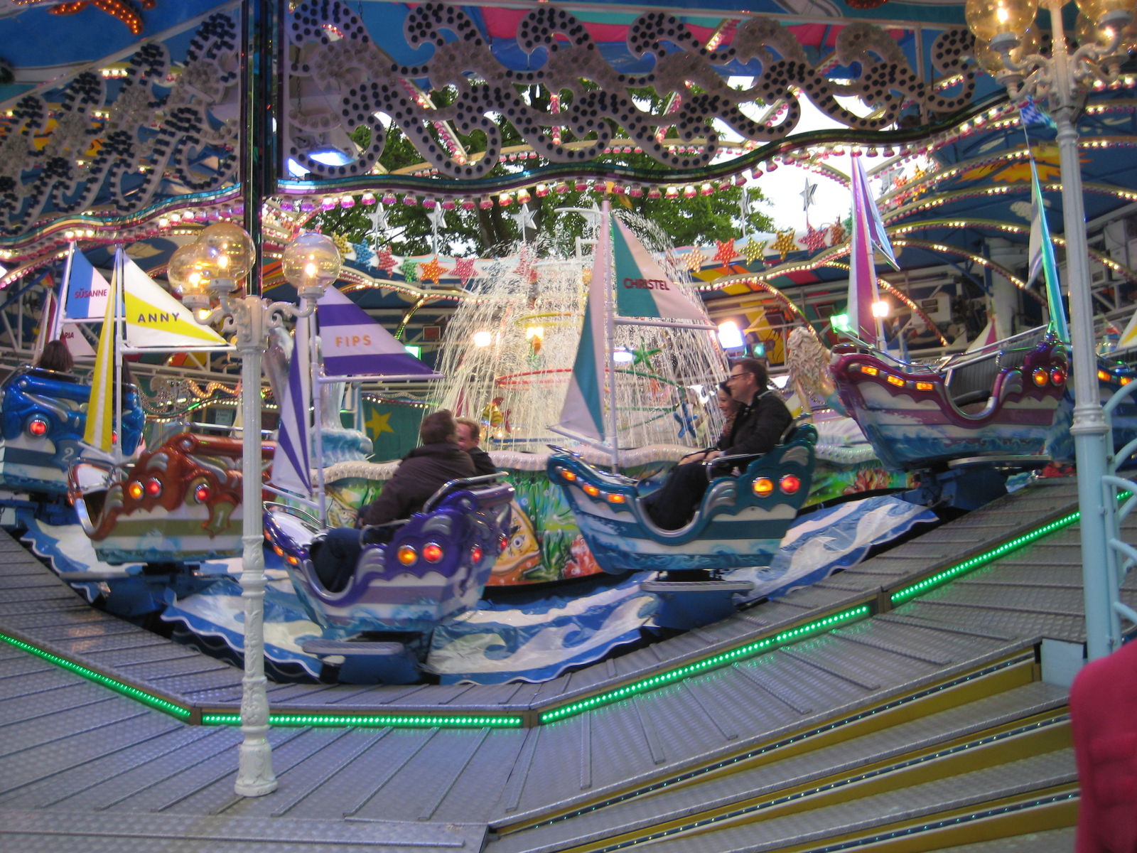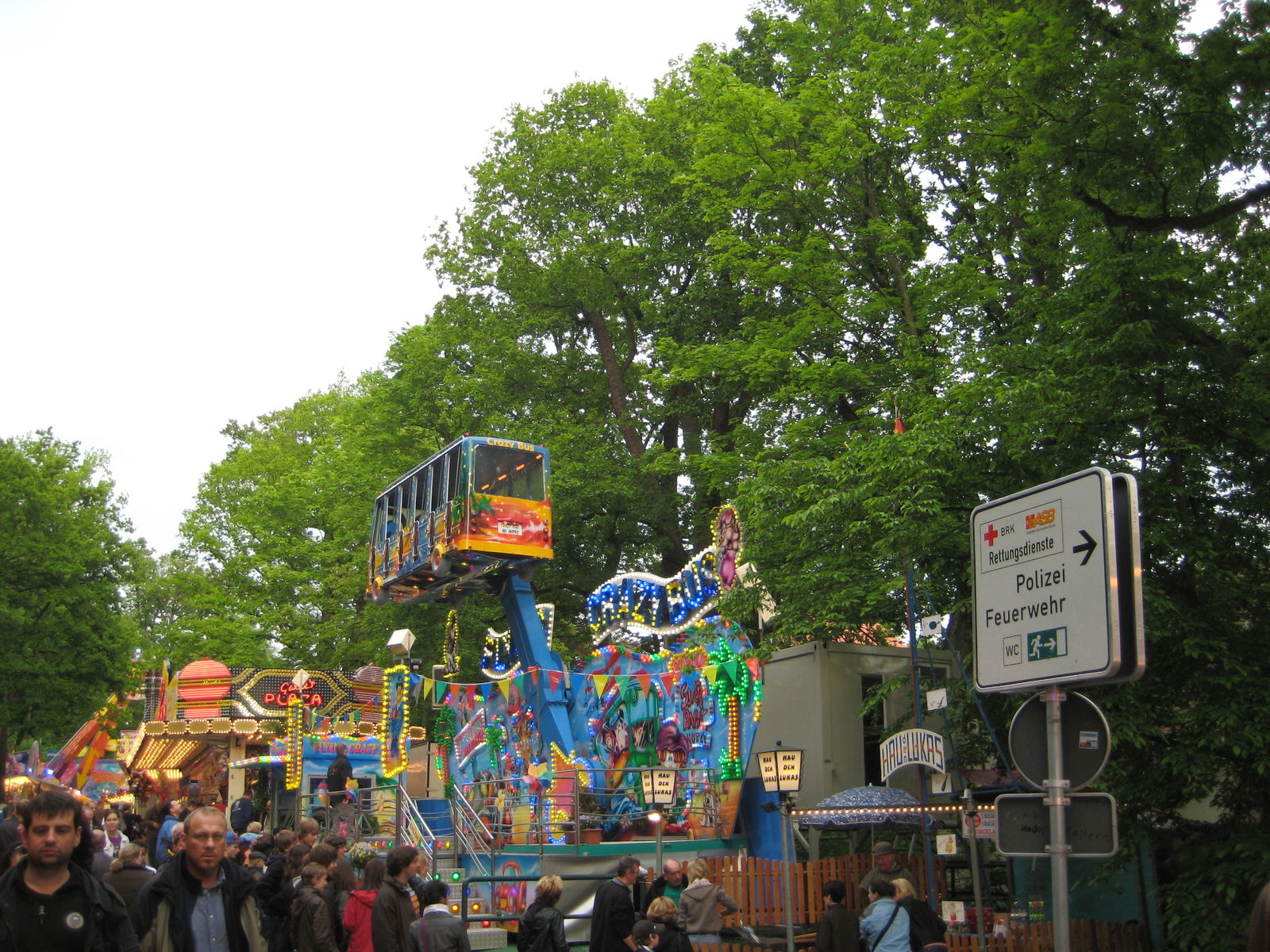 Ach, das kann ich mir nicht vorstellen. Dort vorne sind ja gar keine. Wenn hinten des Frisbee stehen kann und bei jedem Schwung die Blätter der Bäume berührt werden dürfen, dann kann das nicht der Grund sein. Eigentlich schade, so ein tolles Volksfest und dann nur 1 ordentliches Fahrgeschäft...
