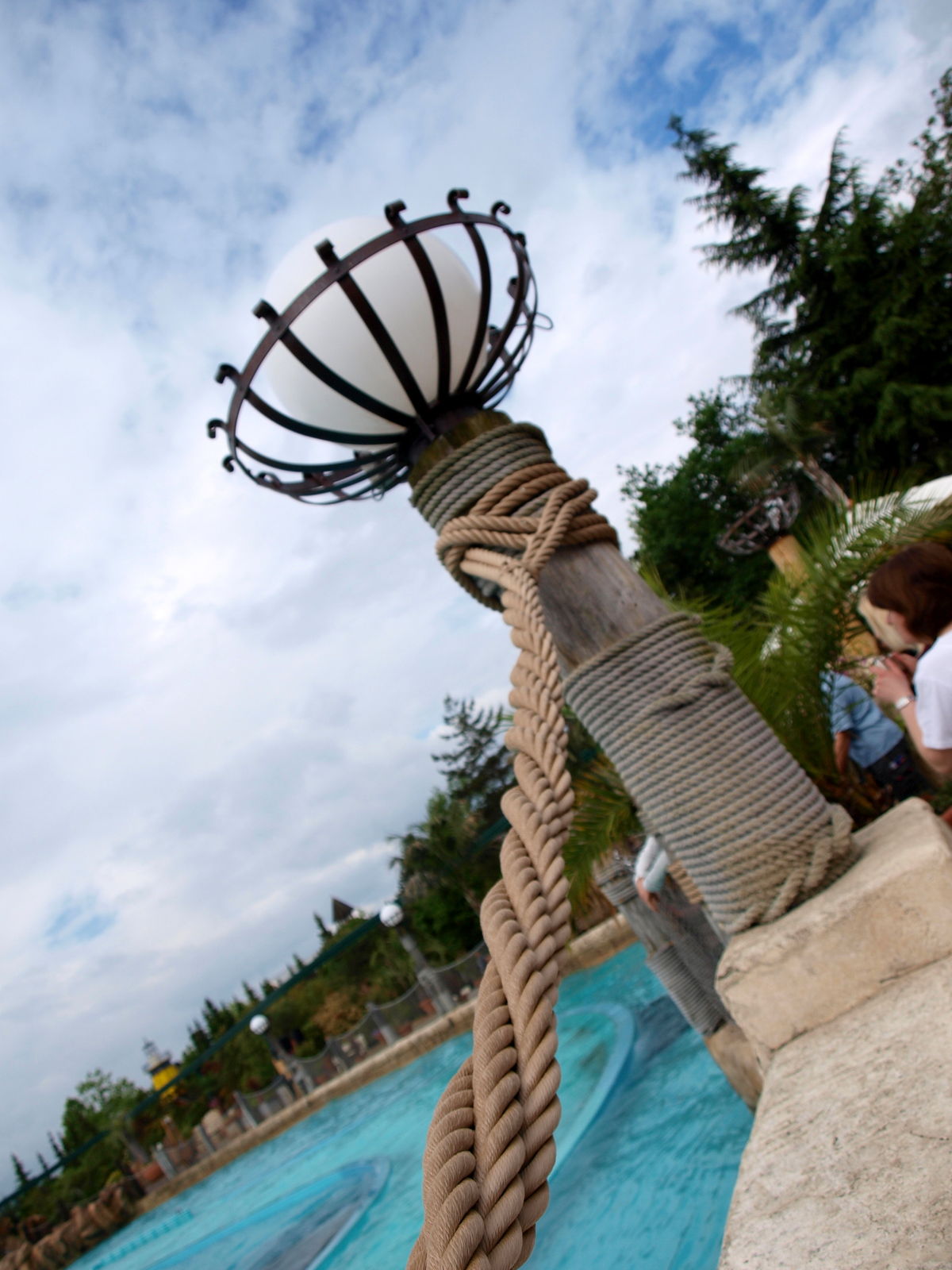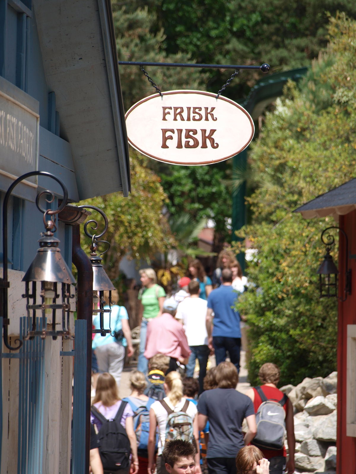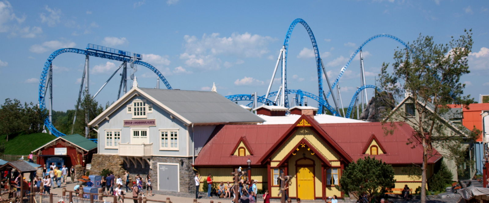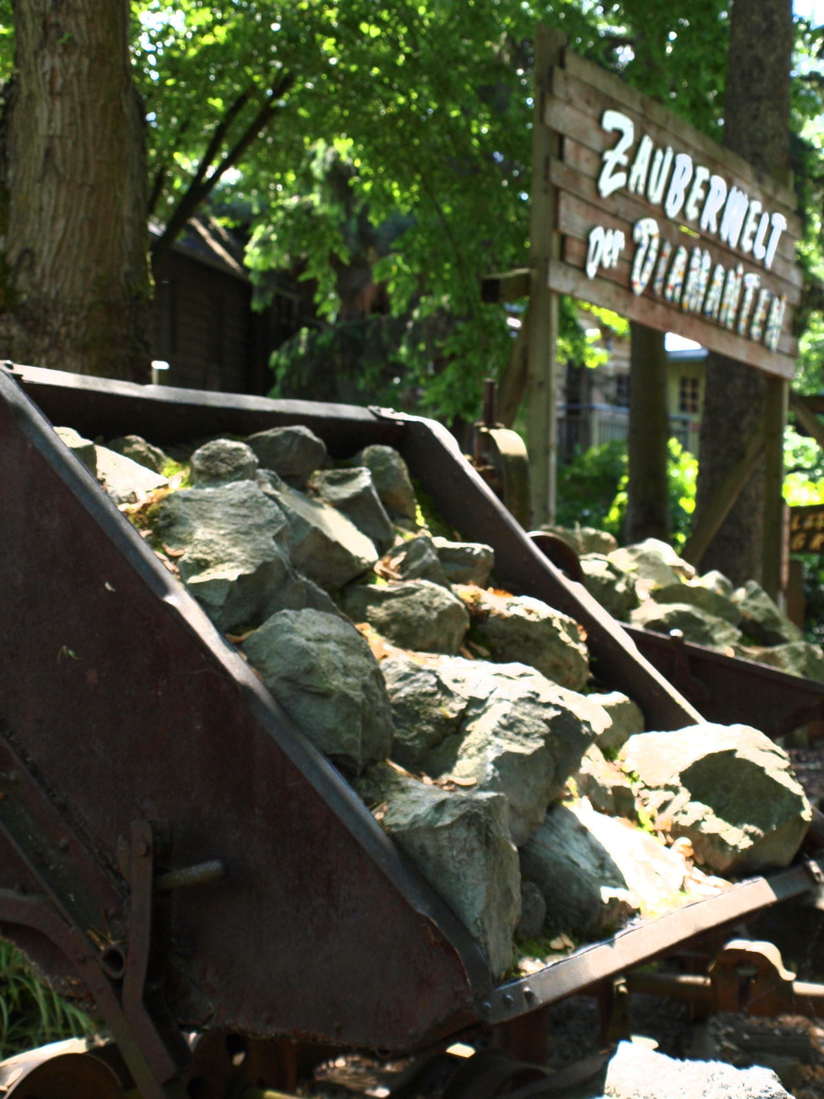 In Skandinavien, zwischen Vineta und dem Märchenturm, bei den Bänken gegenüber vom Restaurant, von denen man auf's Rafting schauen kann.