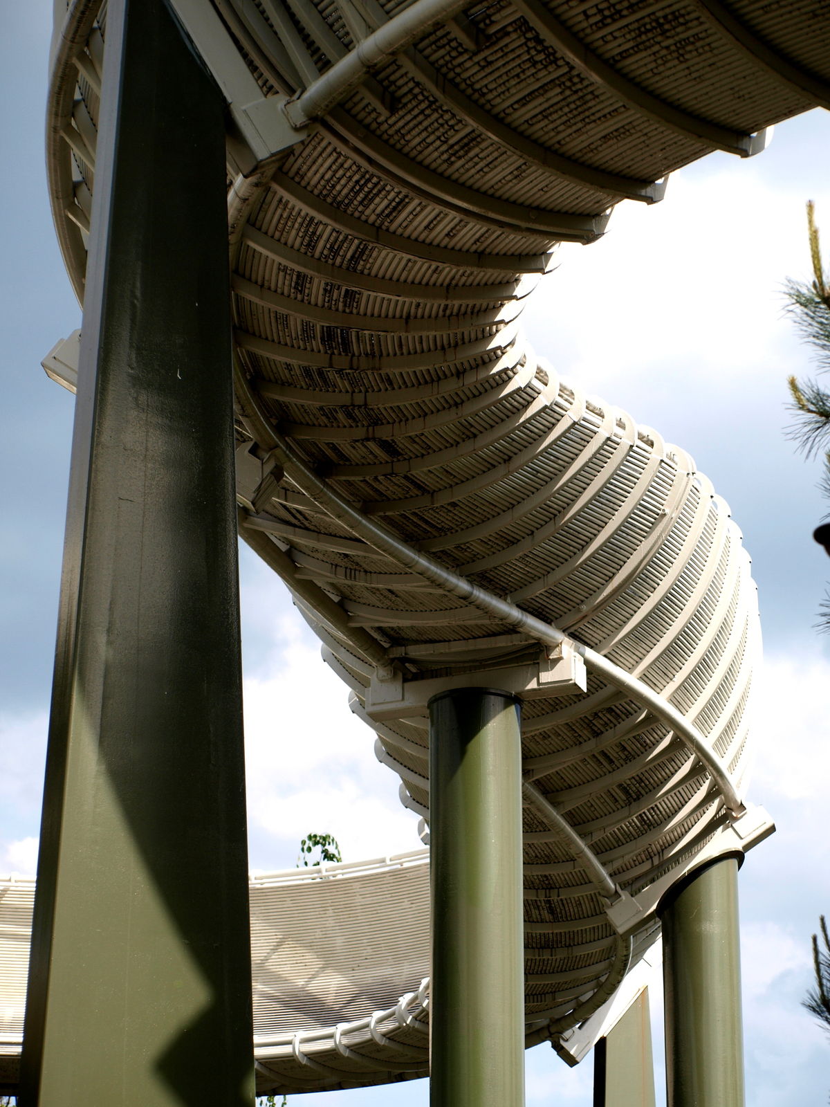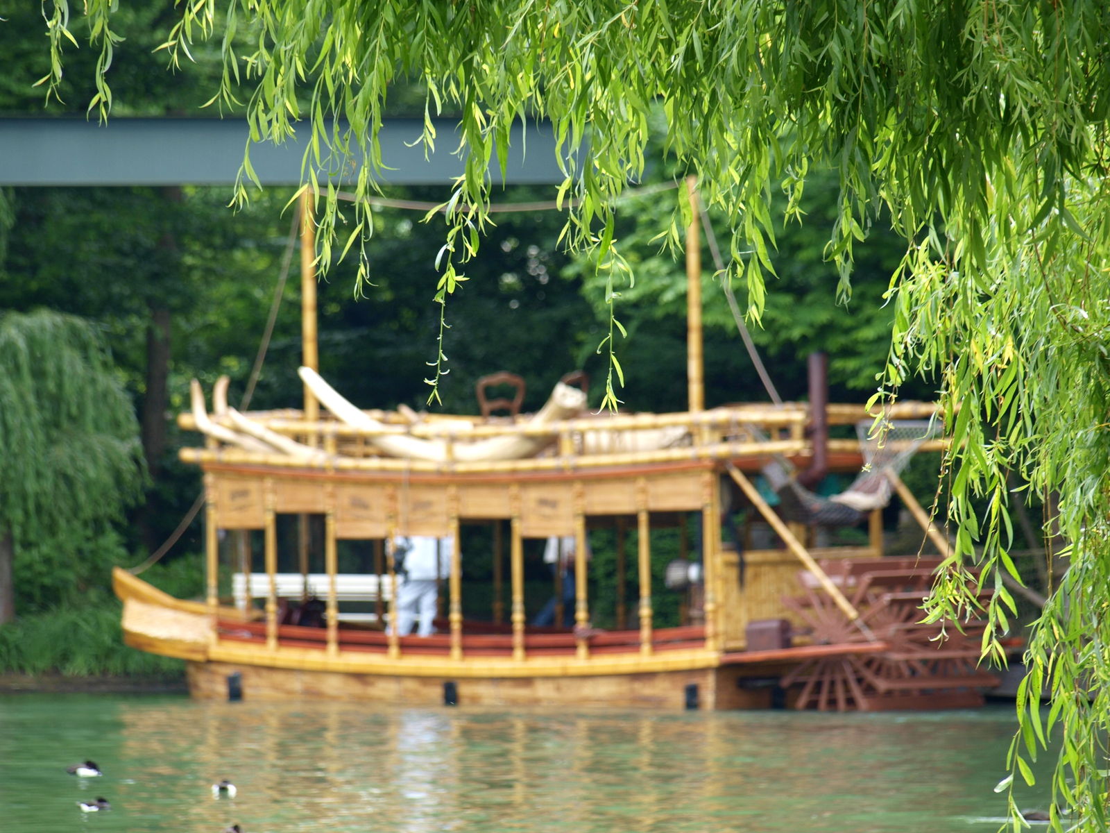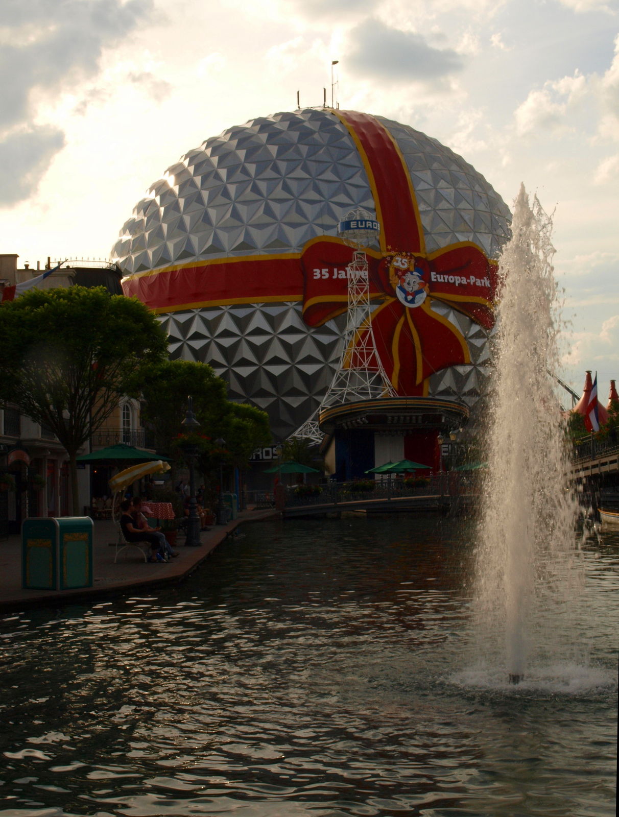 In Skandinavien, zwischen Vineta und dem Märchenturm, bei den Bänken gegenüber vom Restaurant, von denen man auf's Rafting schauen kann.