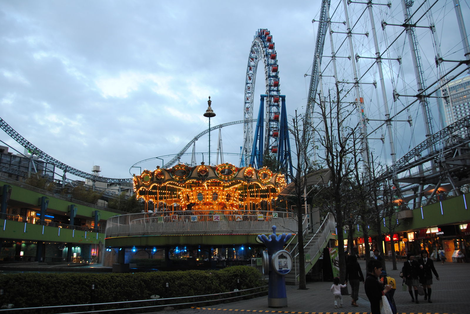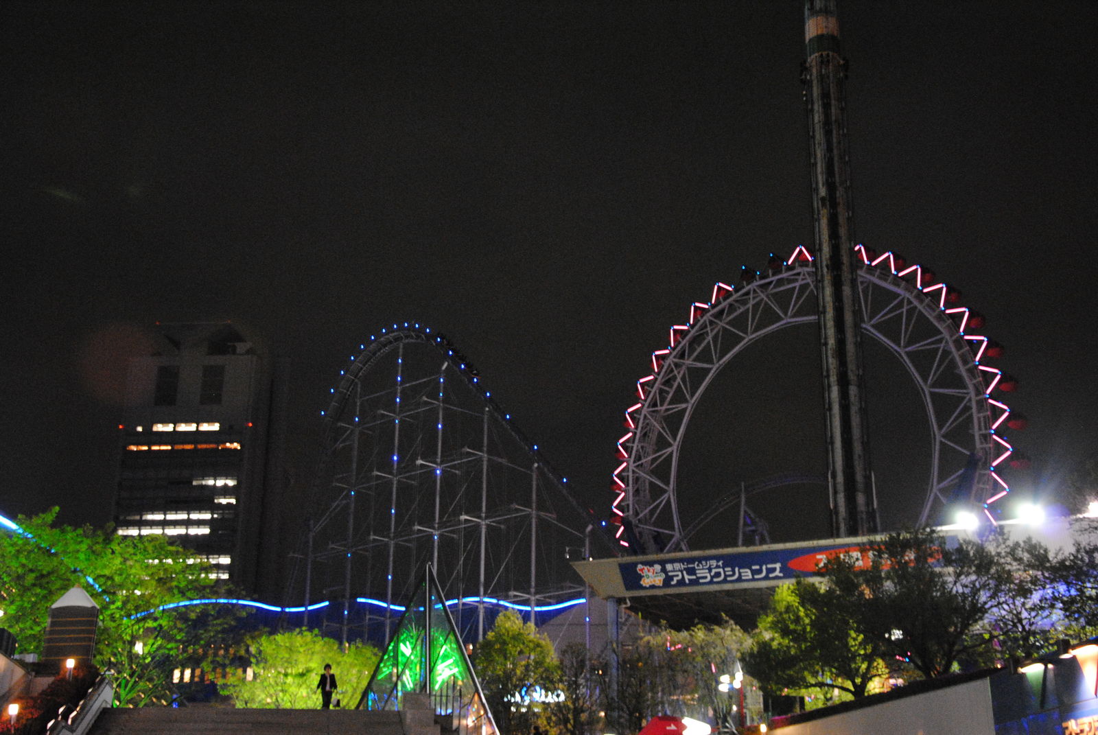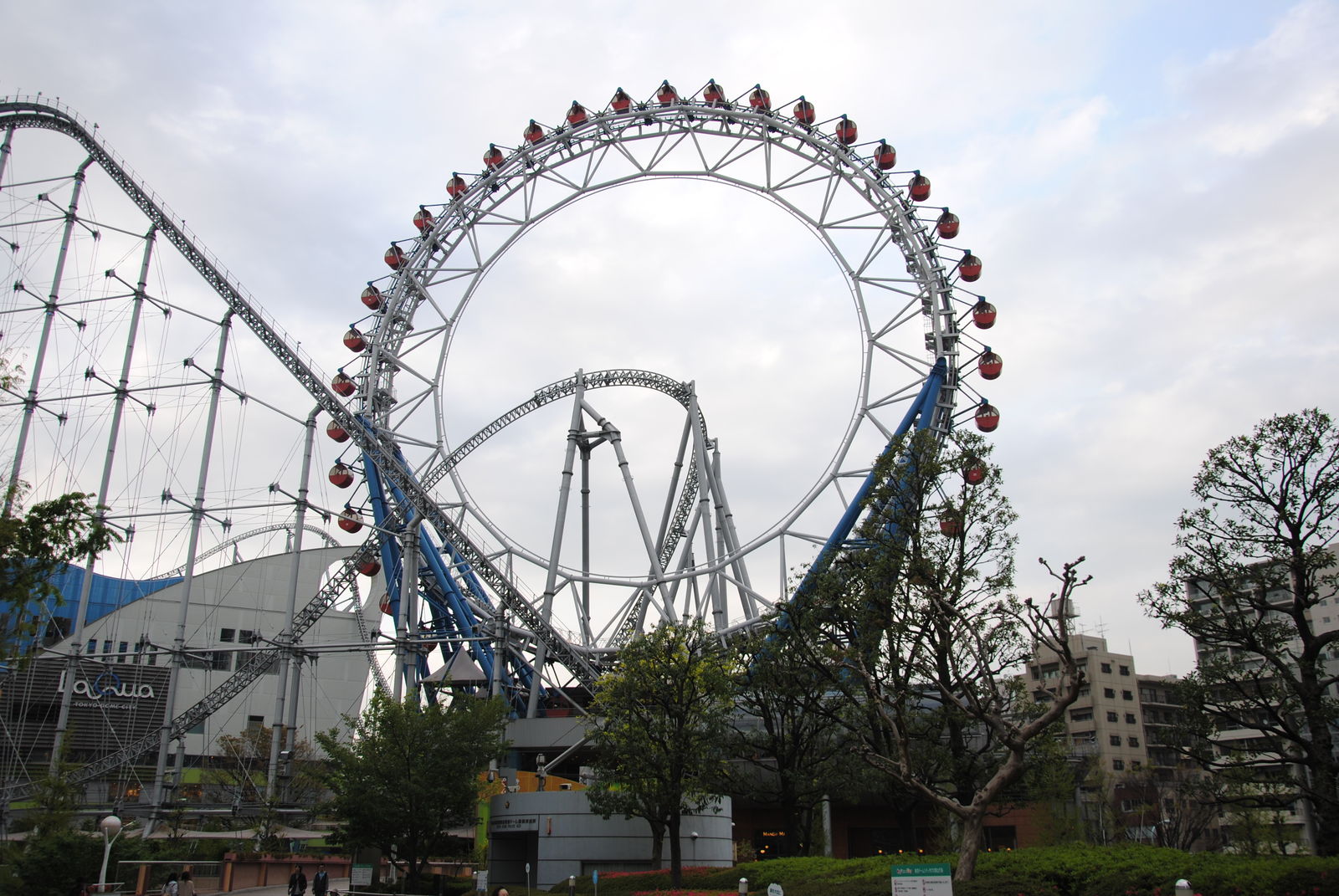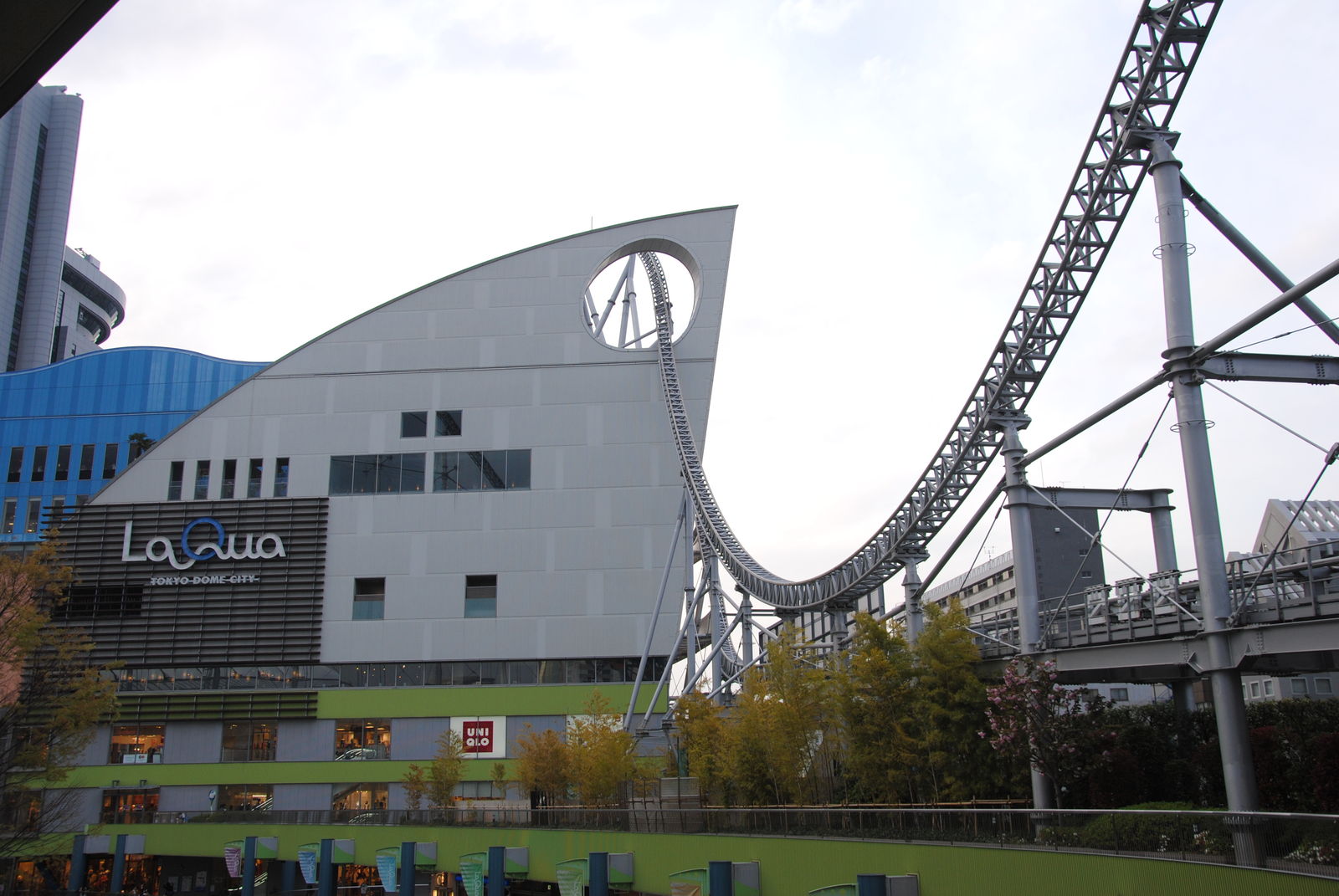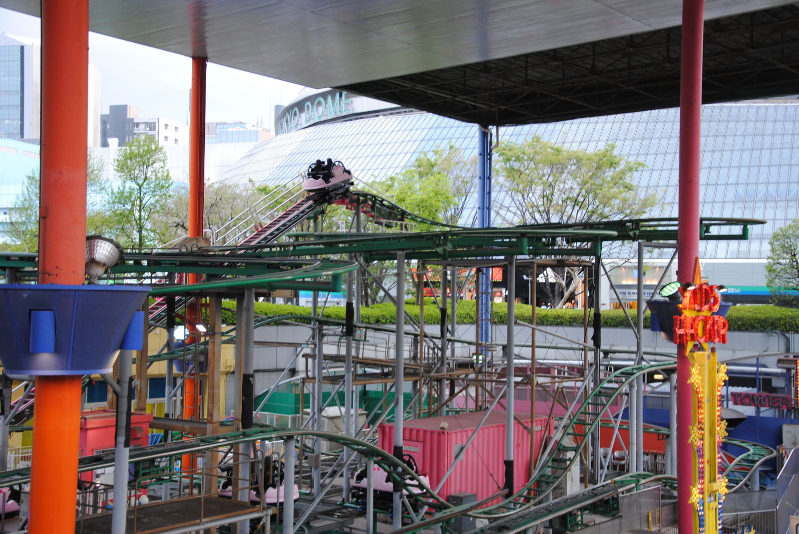 Den letzten Park, den wir in Japan besucht haben war die Tokyo Dome City, wobei Park nicht so ganz zutreffend ist. Sie befindet sich Mitten in der Innenstadt von Tokyo und ist eher eine Ansammlung von 3 Achterbahnen, einigen Fahrgeschäften, dem Erholungs- und Einkaufszentrum La Qua sowie dem Baseball-Stadion Tokyo Dome.