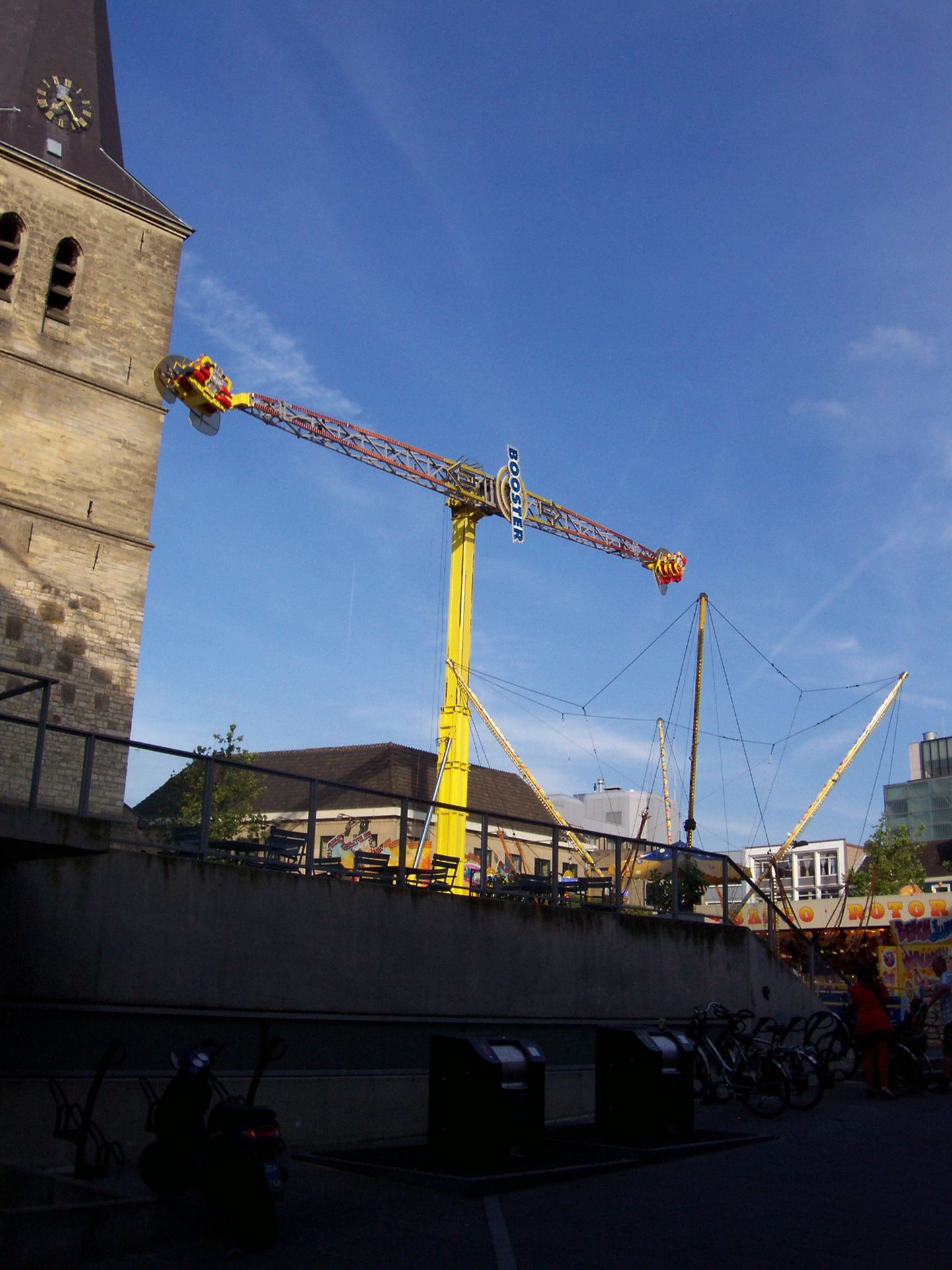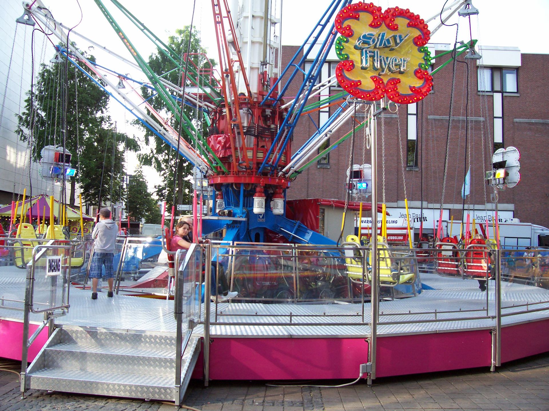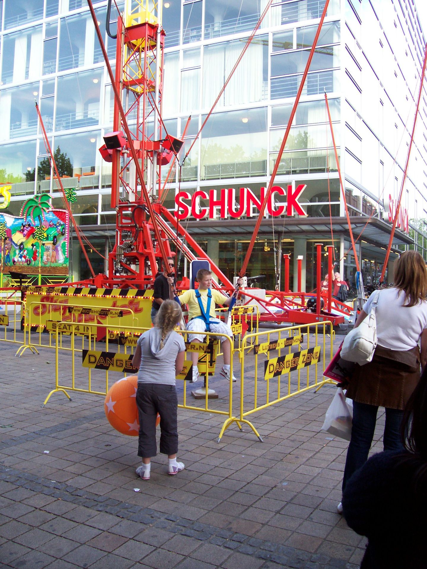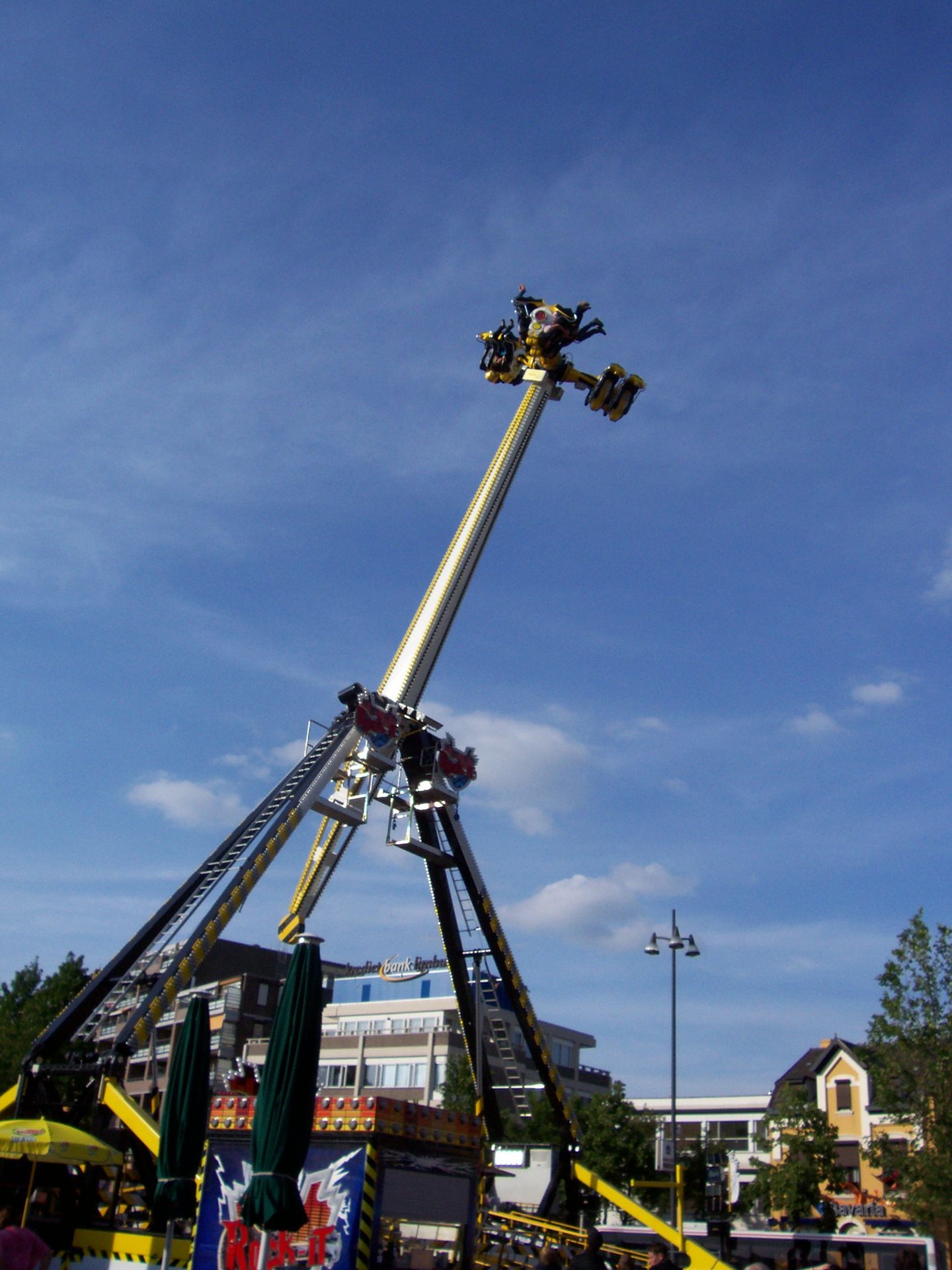 Außerdem gab es auf diesem Platz noch den Sky-Shooter. Das ist eine Anlage an der vier Einzelsitze ähnlich wie bei den Bungeekugeln hochgeschossen werden können.
