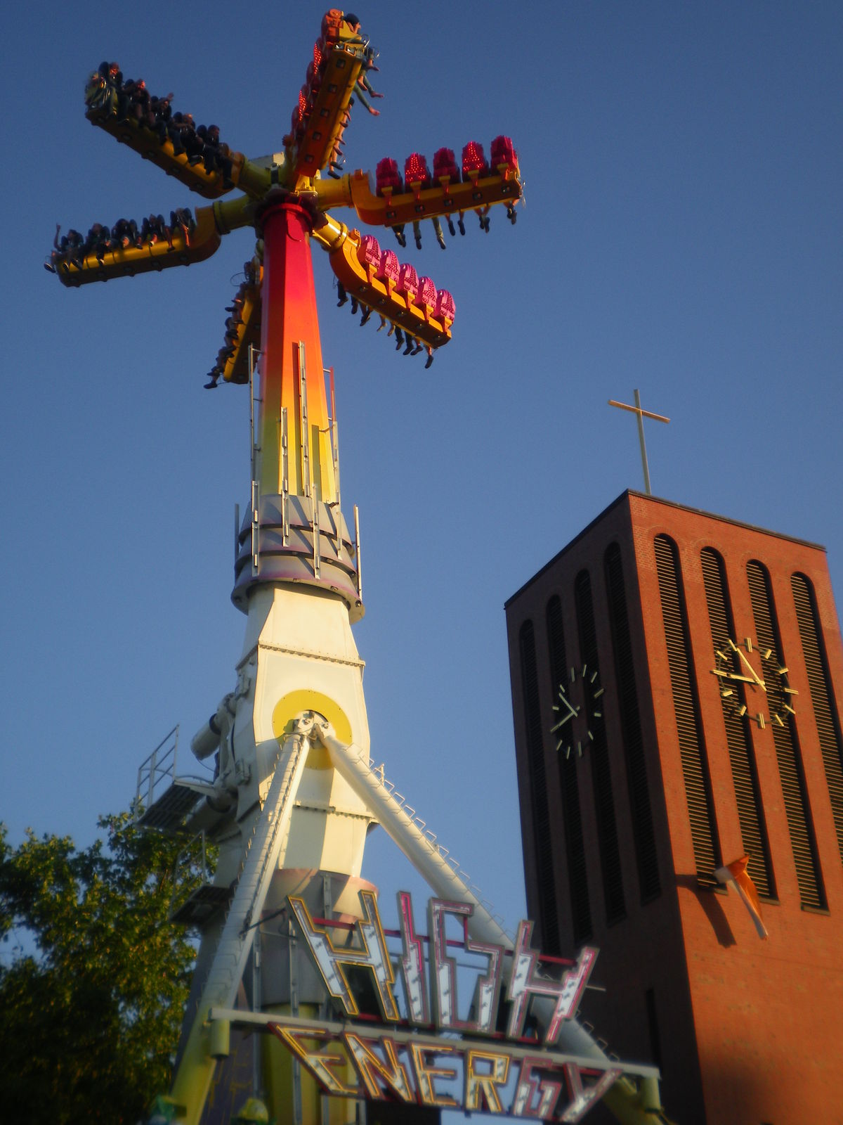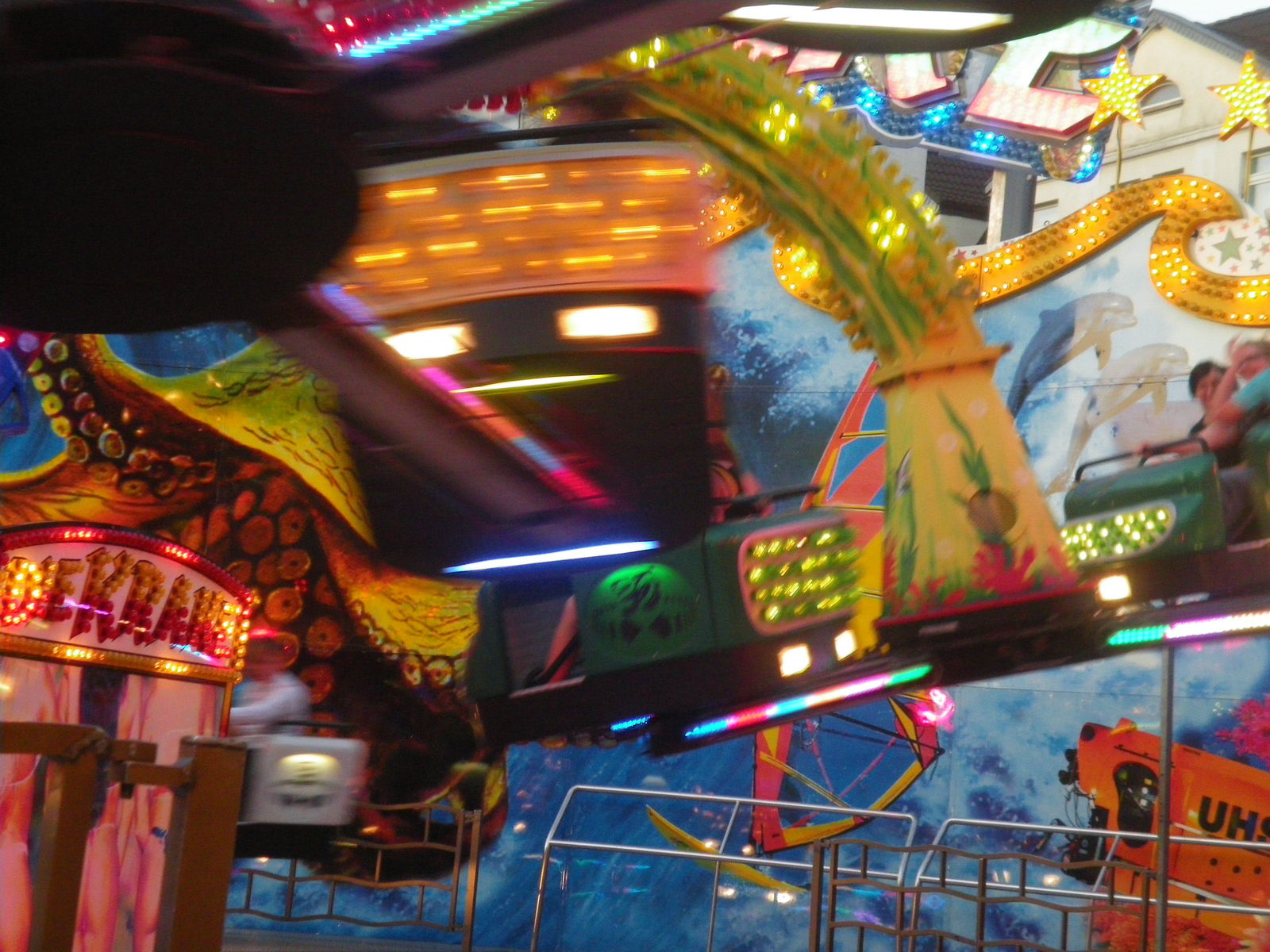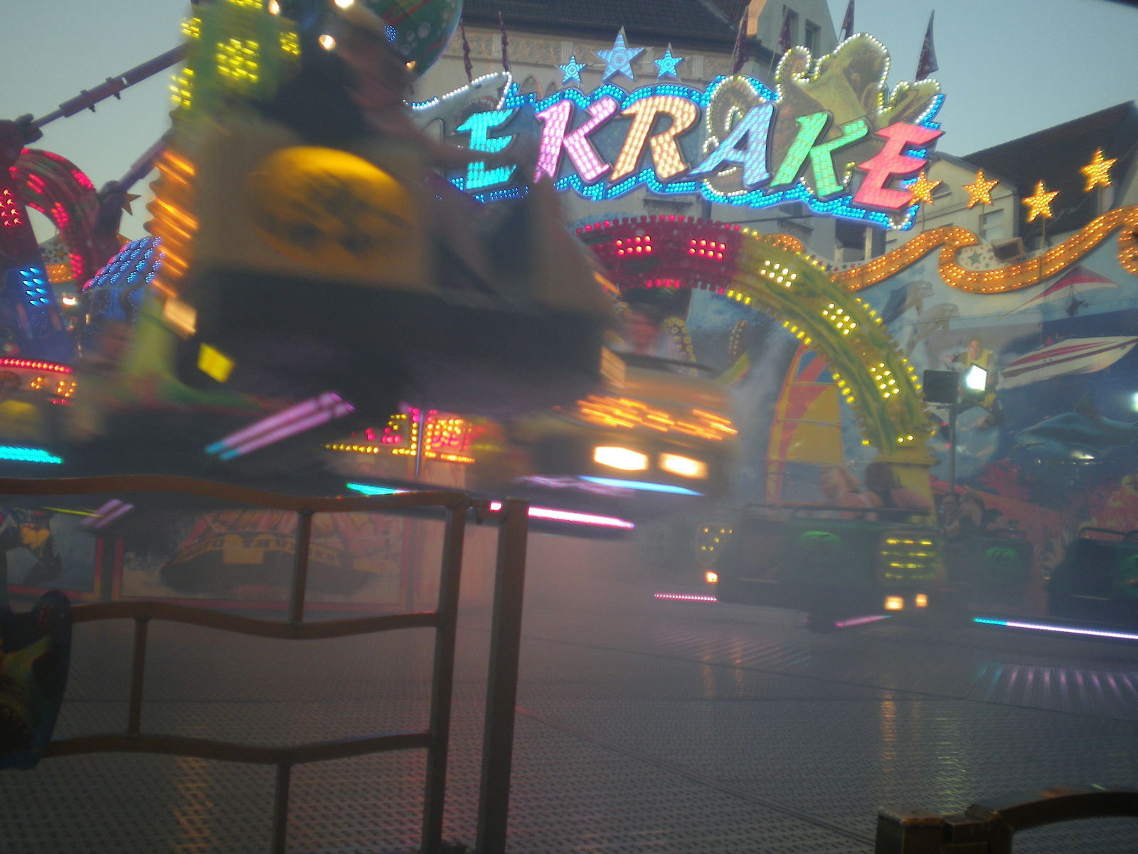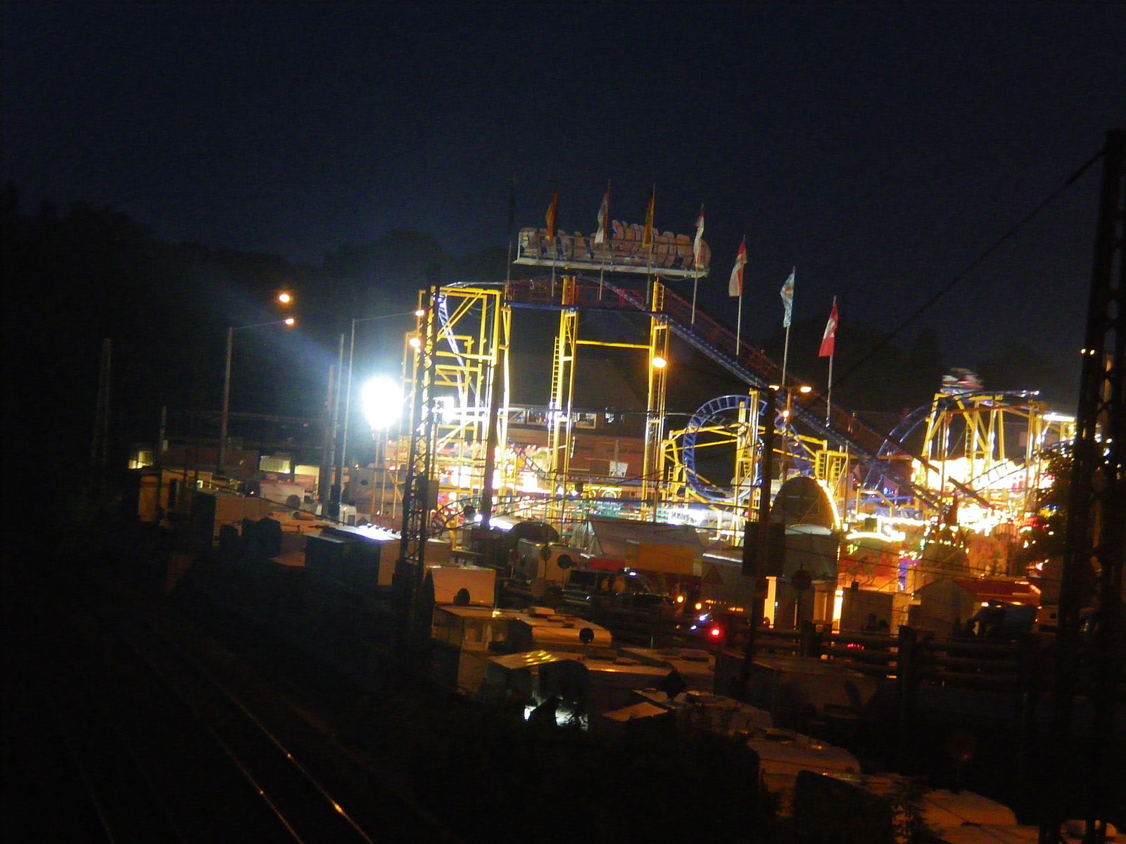 Montag ging es dann noch für Tobi und mich Abends hin, um das Feuerwerk zu sehen. Haben eine Runde gedreht, bevor wir dann auf die Rampe gingen um von der Brücke oben, das Feuwerk zu schauen. Der Platz war genauso gut gefüllt wie am Freitag, allerdings hatten wohl mehr Leute lust irgendwas zu fahren, denn an den Fahrgeschäften war viel mehr los. Konnte man am freitag beim Höllenblitz durchgehen, standen dort Montag die Leute bis draußen. Allerdings war auch nur ein Zug auf der Strecke, vielleicht macht das auch soviel aus.