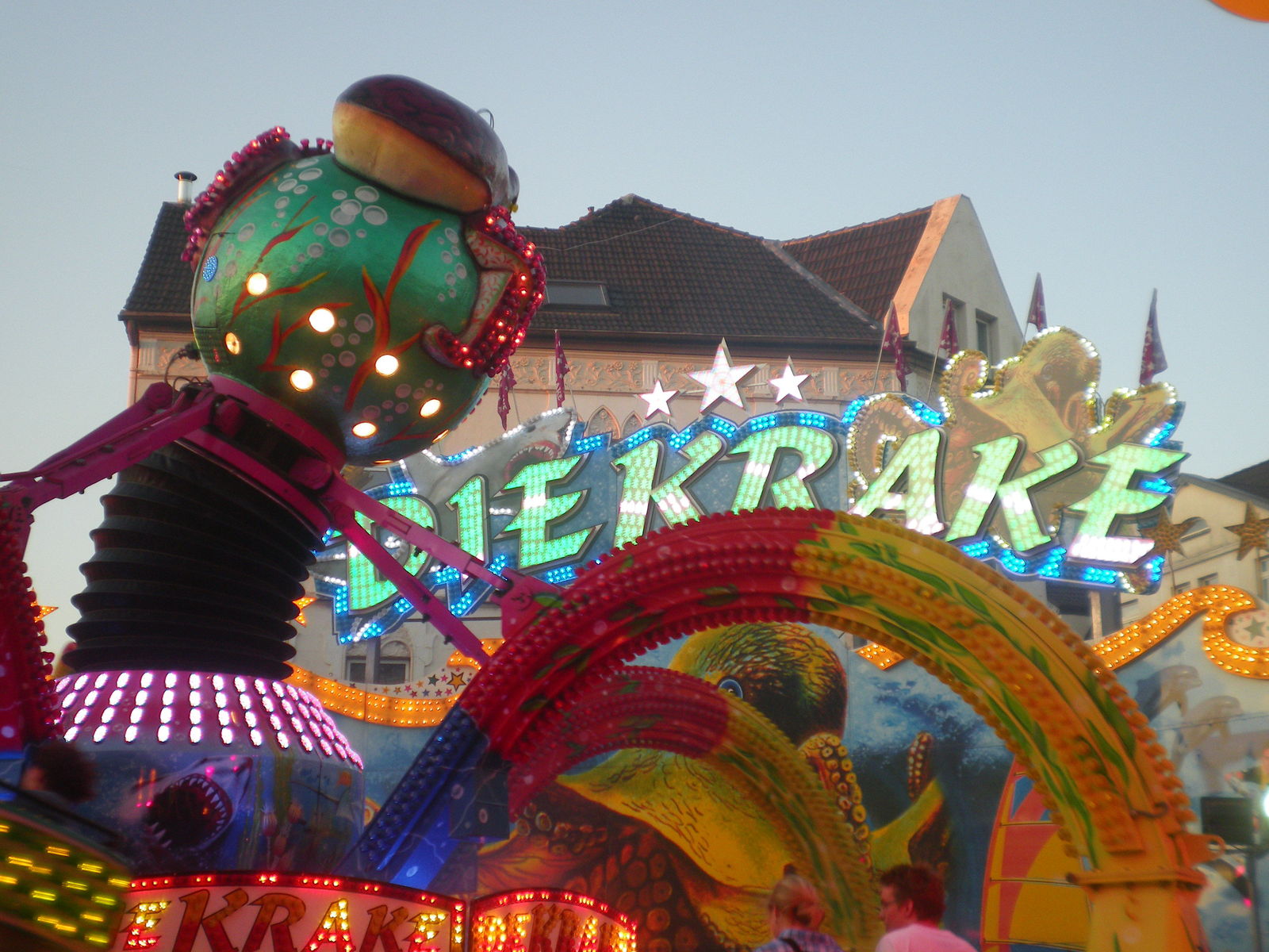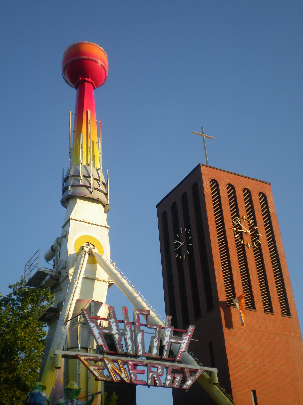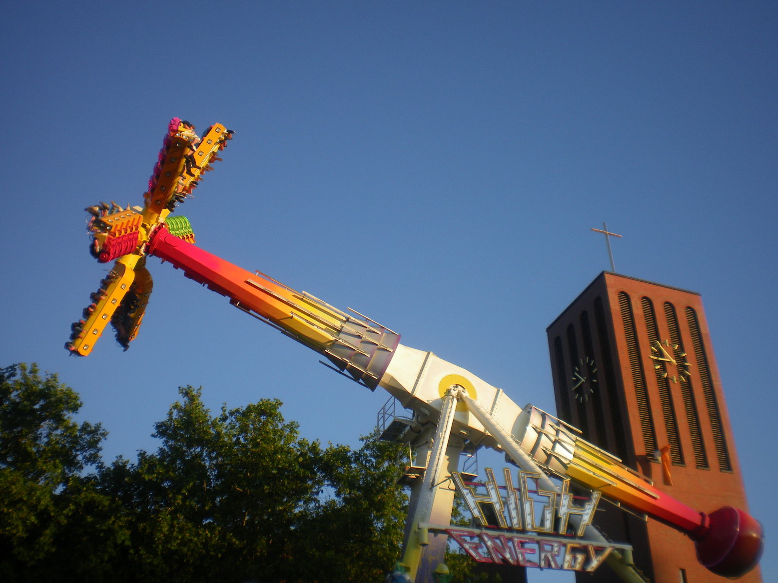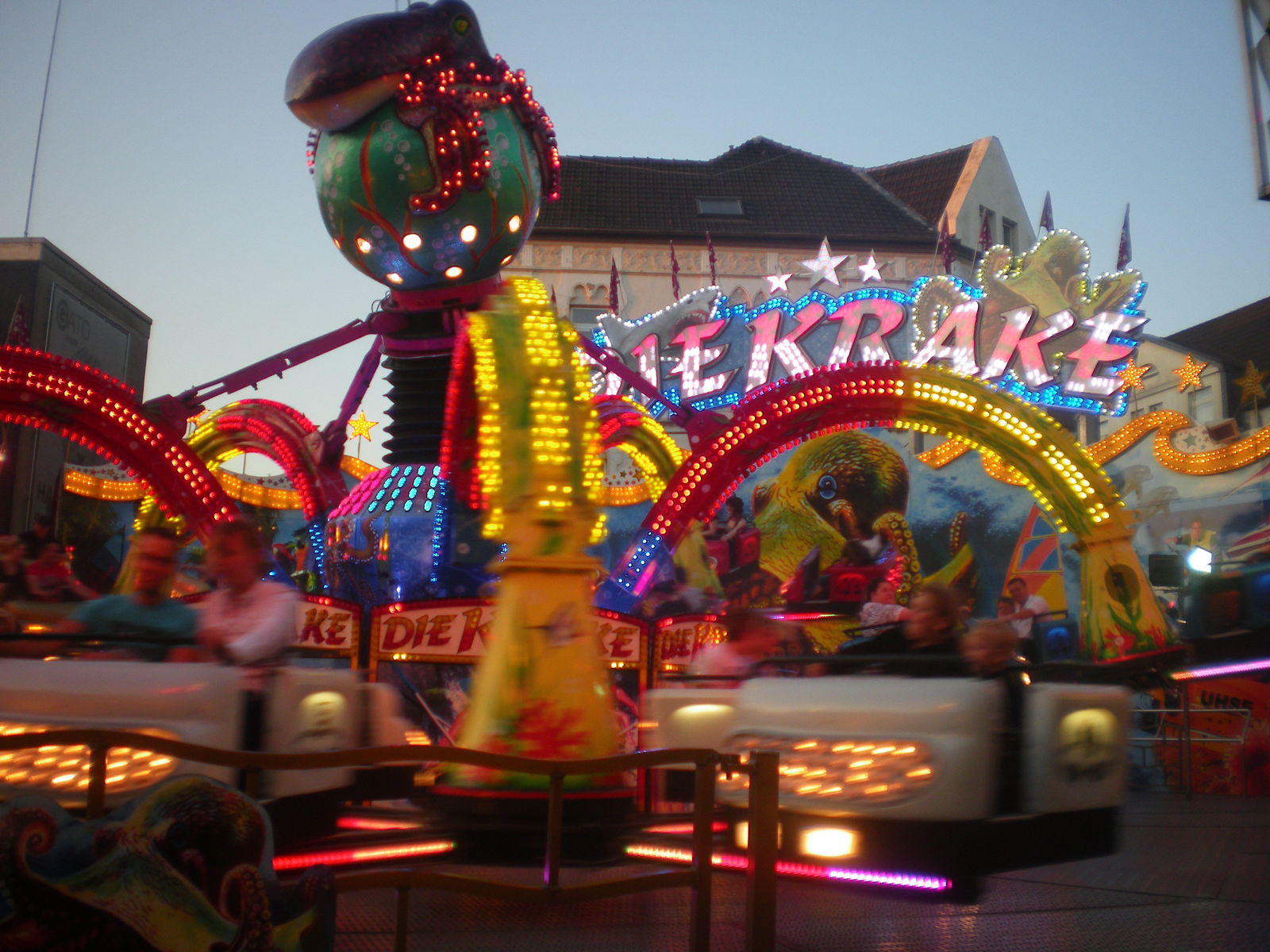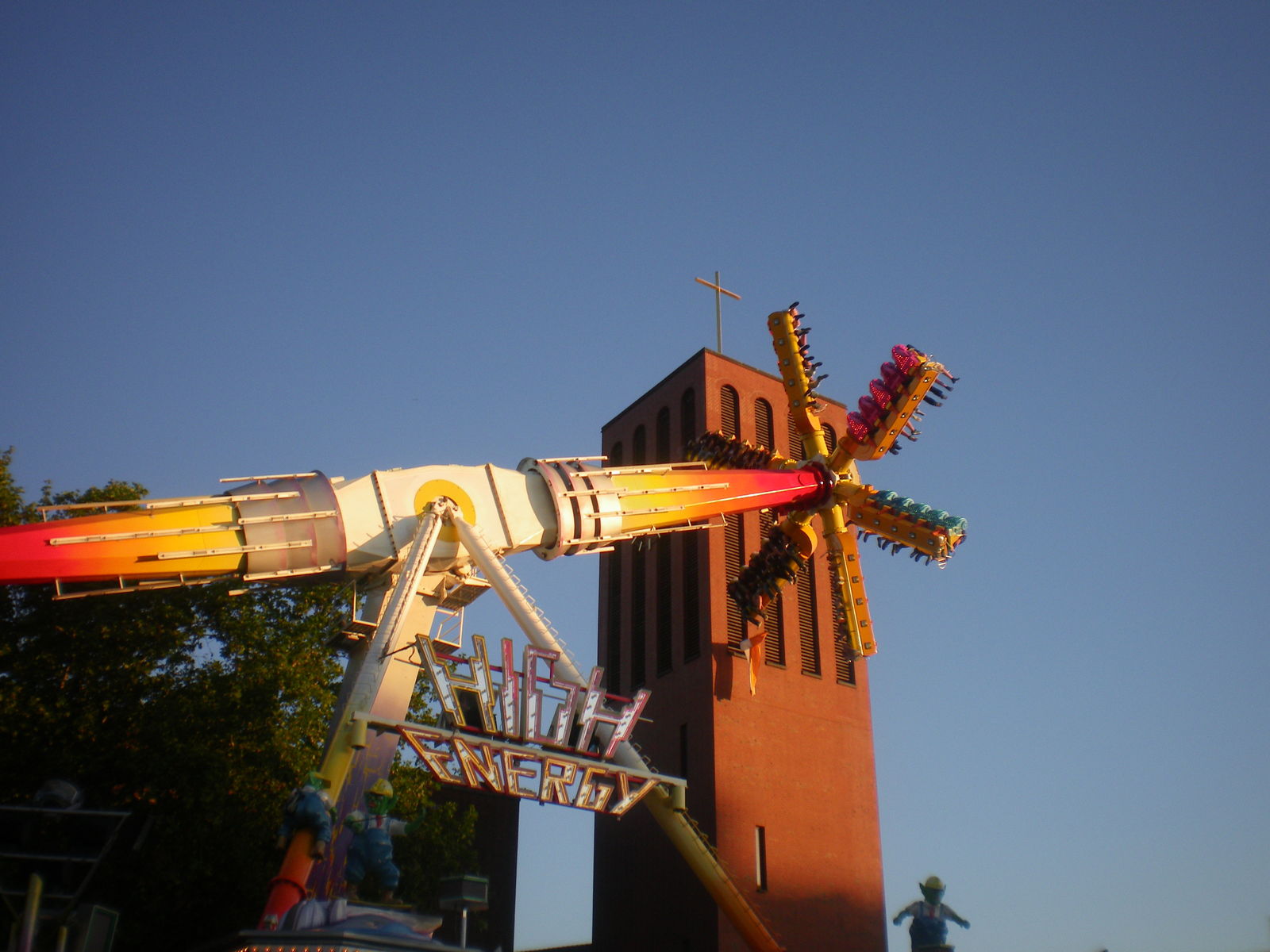 Montag ging es dann noch für Tobi und mich Abends hin, um das Feuerwerk zu sehen. Haben eine Runde gedreht, bevor wir dann auf die Rampe gingen um von der Brücke oben, das Feuwerk zu schauen. Der Platz war genauso gut gefüllt wie am Freitag, allerdings hatten wohl mehr Leute lust irgendwas zu fahren, denn an den Fahrgeschäften war viel mehr los. Konnte man am freitag beim Höllenblitz durchgehen, standen dort Montag die Leute bis draußen. Allerdings war auch nur ein Zug auf der Strecke, vielleicht macht das auch soviel aus.