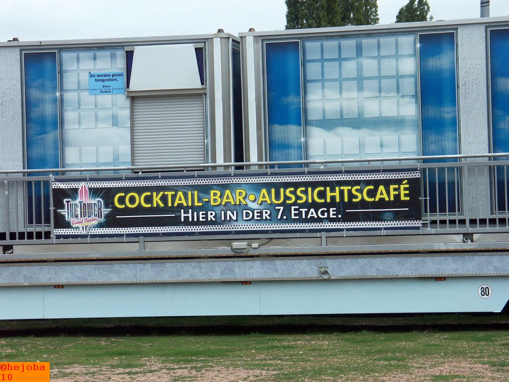 - 1 mal The Tower Event Center von Blume: Ich konnte Gestern das erste mal in das Hochhaus gehen und war sehr angetan von dem Konzept. An alle Räume kann ich mich nicht mehr erinnern, denn es gab dort wirklich sehr viele Räume, die man überwältigen musste. An der Kasse bekam man eine Spektralbrille. Als erstes kommt man in einen Raum mit Leuchtstäben, wo man den Tower vorgestellt bekommt, dann geht es in einen Raum mit komischen Waschbecken, dort war der Wasserhahn so komisch verbogen. Dann ging es nach draußen, wo man die üblichen Funhouseelemente wie rollender Boden, Drehteller, Laufband u.s.w. überwinden muss. Dann ging es wieder ins innere, wo man in einen stockdunklen Geisterraum kommt. Es ist wirklich so dunkel da drinne, ich wusste nicht wo es weiter geht. Ein Live Erschrecker war aber keiner drin. Dann ging es wieder eine Treppe hoch in andere Räume, an die ich mich nicht mehr erinnern kann. Irgendwann kommt man dann oben an, dann geht es über eine Treppe hoch zur Aussichtsplattform. Die Aussicht ist überwältigend, dort oben geht auch noch ziemlich der Wind. Außerdem gibt es dort oben noch ein Laufband und einen WM Bär. Wenn man die Aussicht genießen konnte, geht es über eine Wendeltreppe in das Cafe. Sogar Toiletten gab es im Tower, echt ein komisches Gefühl, wenn man in 30 Meter Höhe aufs Klo geht. Dann kommt man in das Cafe, wo man gemütlich sitzen kann und ein paar Trinks verschlingen kann. Zur Beruhigung läuft dort Chillout Musik, was ich sehr Genial fand. Echt ein tolles Cafe, wir haben uns aber dort nicht hingesetzt. Dann geht es wieder hinein in das Reich von Mister Salvatore, dort kommt man u.a in einen Raum wo eine singende Rocker Oma auf einen Motorrad sitzt, in einen Raum wo viele Masken an der Wand sind, in einen Raum mit LED Leuchtstäben, dann geht es auf einen Steg nach draußen wo man den Tresorcode knacken kann, dann geht es nochmal ins innere. Irgendwann kommt man wieder raus wo man wieder ein paar Funhouse Elemente überwinden muss. Dann geht es wieder ins Innere wo ein Raum ist mit einem Erdbeben u.s.w. Wenn man dann unten wieder ankommt, geht es über ein langes Laufband an den Ausgang, wo man sich noch Souvenir Artikel u.s.w. kaufen kann. Hat mir echt gut gefallen, das Konzept, Laufparcour, Cafe und Aussichtsturm hat mir echt gut gefallen. Freue mich schon auf Bad Dürkheim, wo ich wieder in den Tower gehen kann. Preis: 4 Euro.