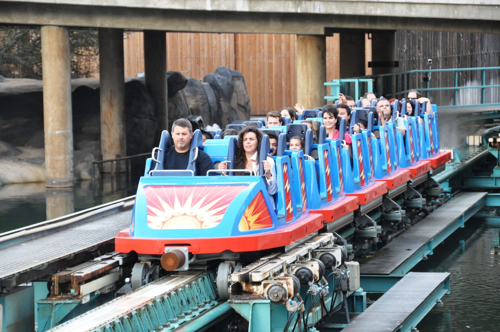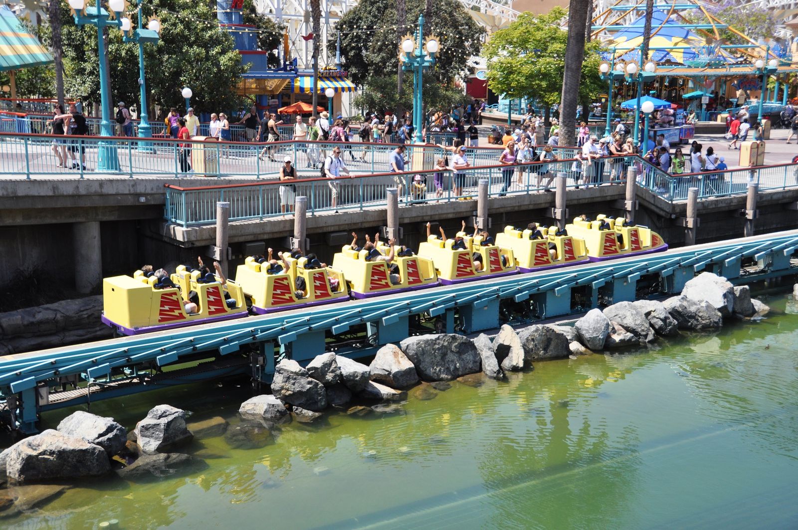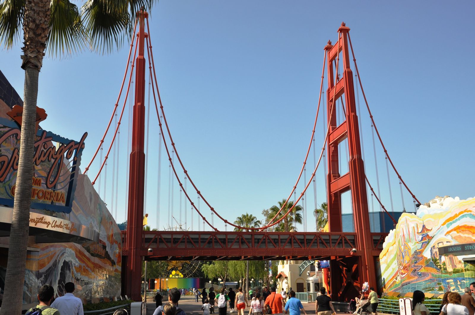 Ein besonderes Highlight des Parks ist Soarin´ over California. Man nimmt in einer Gondel mit 10 nebeneinander angeordneten Sitzen Platz und wird dann vor eine riesige Leinwand gefahren. Auf dieser Leinwand werden Videos von Flügen gezeigt, u.a. über San Francisco oder durch den Yosemite National Park. Unterstützt wird das Fluggefühl von passenden Bewegungen der Gondeln. Das einzige, was hier nicht gefällt, sind die nicht ineinander übergehenden Videosequenzen. So schwebt man in dem einen Augenblick noch über die Golden Gate Bridge, und schwupps kommt ein Schnitt und man jagt über einen reissenden Fluss in einem Canyon.