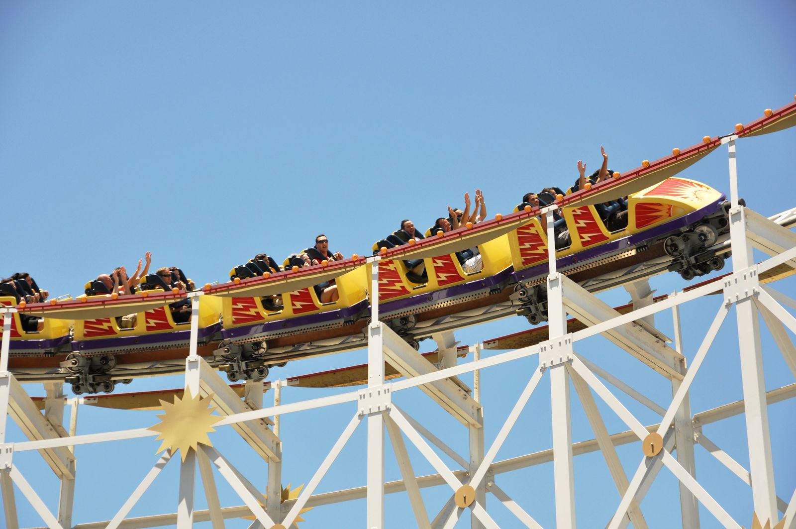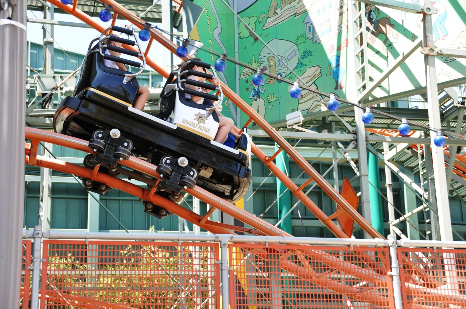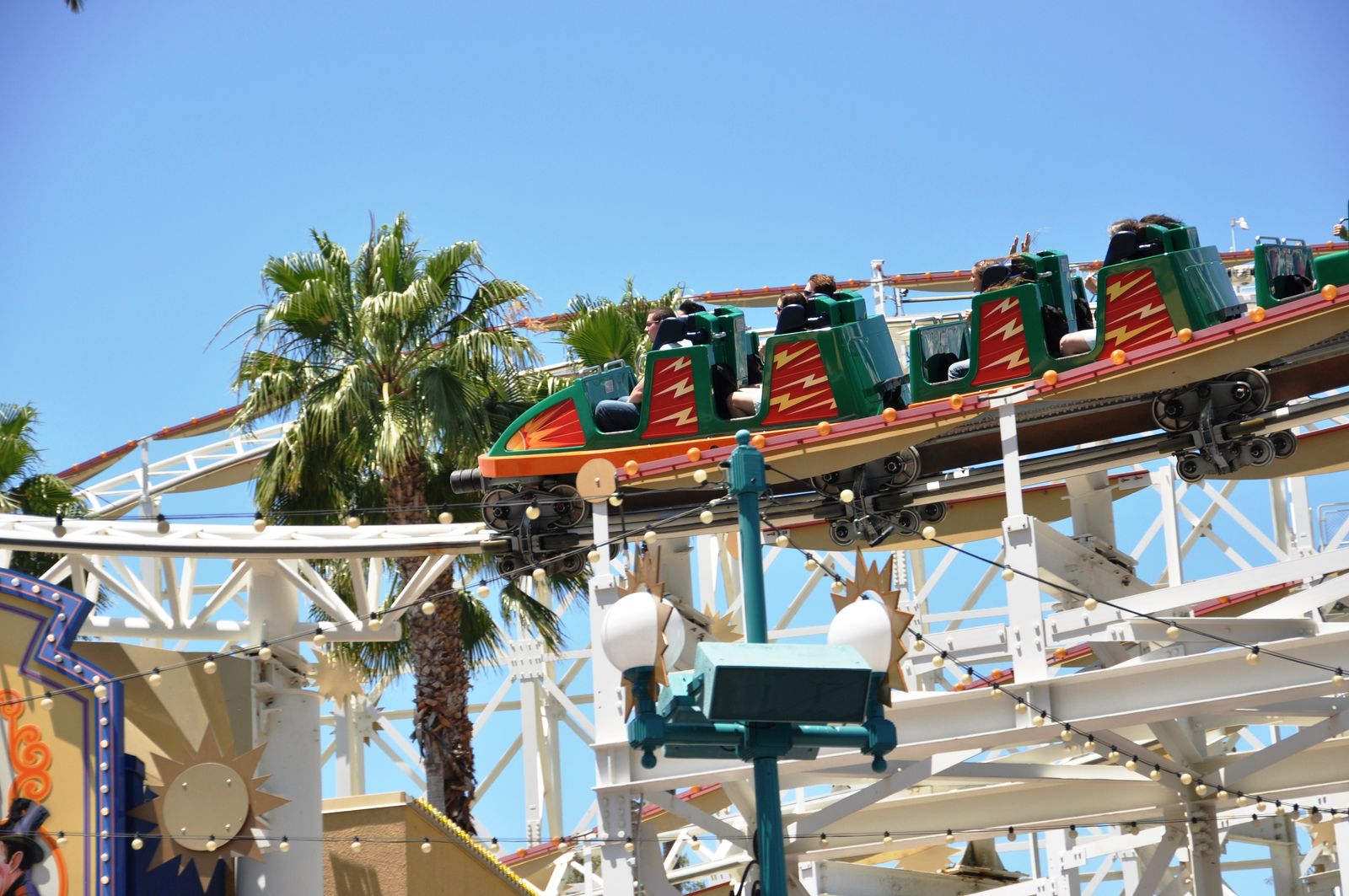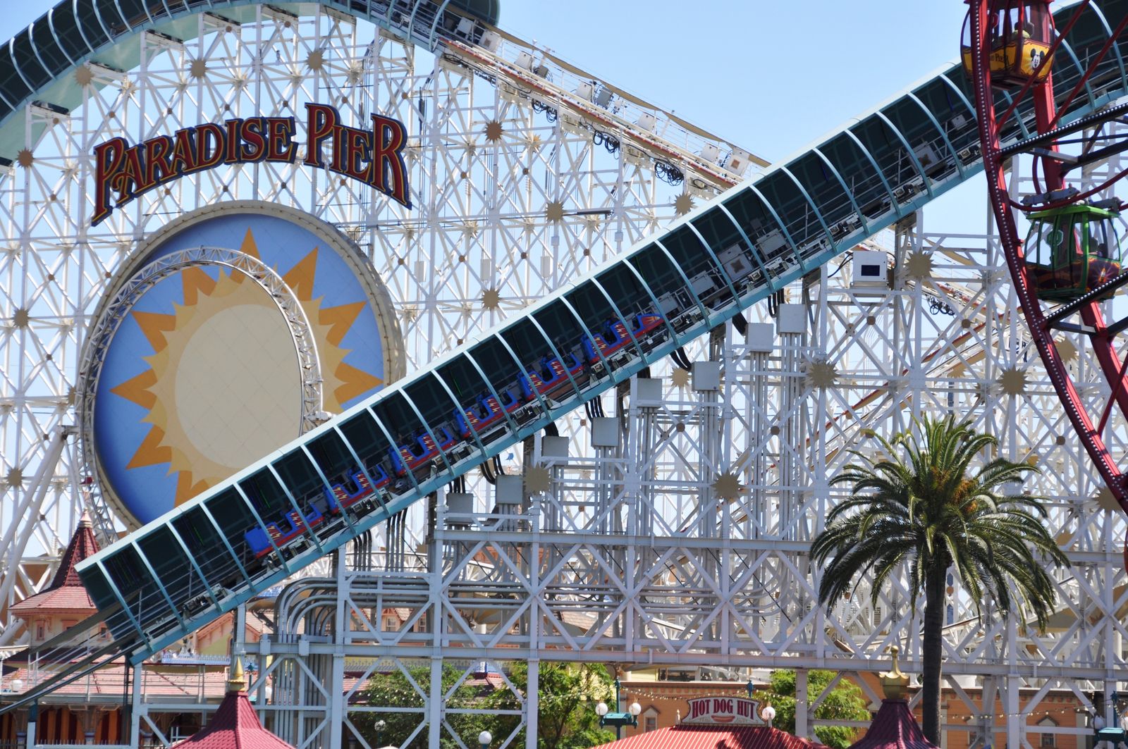 Mutigerweise an einem Sonntag ging es dann zu Disney´s California Adventure. Es handelt sich hierbei um den kleineren der beiden Parks in Los Angeles. Allerdings findet man hier auch die thrilligeren Rides, so steht hier neben den beiden Achterbahnen California Screamin´ und Mulholland Madness das "Hollywood Tower Hotel", den Shot´n´Drop "Maliboomer" und einige andere Flatrides.