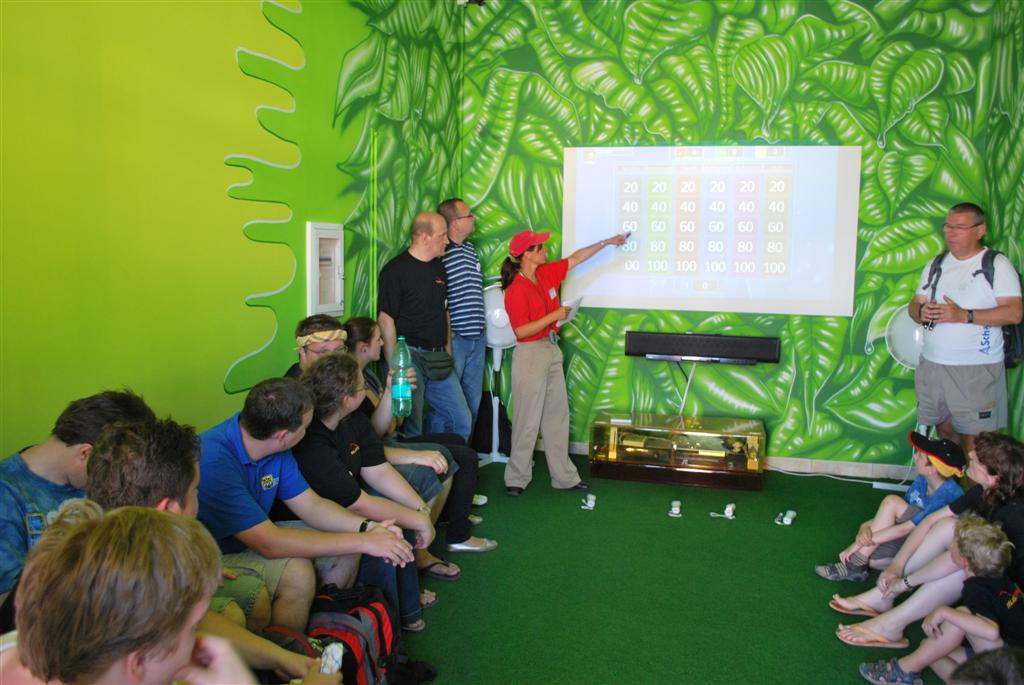 Danach sollten sie grauen Zellen der Teilnehmer angeregt werden und so ging es danah ins kluge Klassenzimmer. Dort wurden wir in 4 Gruppen aufgeteilt und hatten mit Hilfe einer Wii Spielkonsole die ein oder andere knifflige Aufgabe zu lösen.