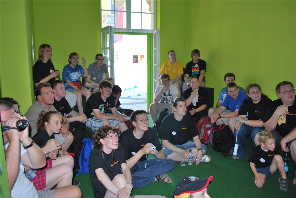 Einige Teilnehmer nutzen die Öffnungszeit bis 20.00 Uhr, um das Viertelfinalspiel im Schloss-Cafe' zu verfolgen oder um noch einige Fahrten auf Huracan & Co zu erleben.