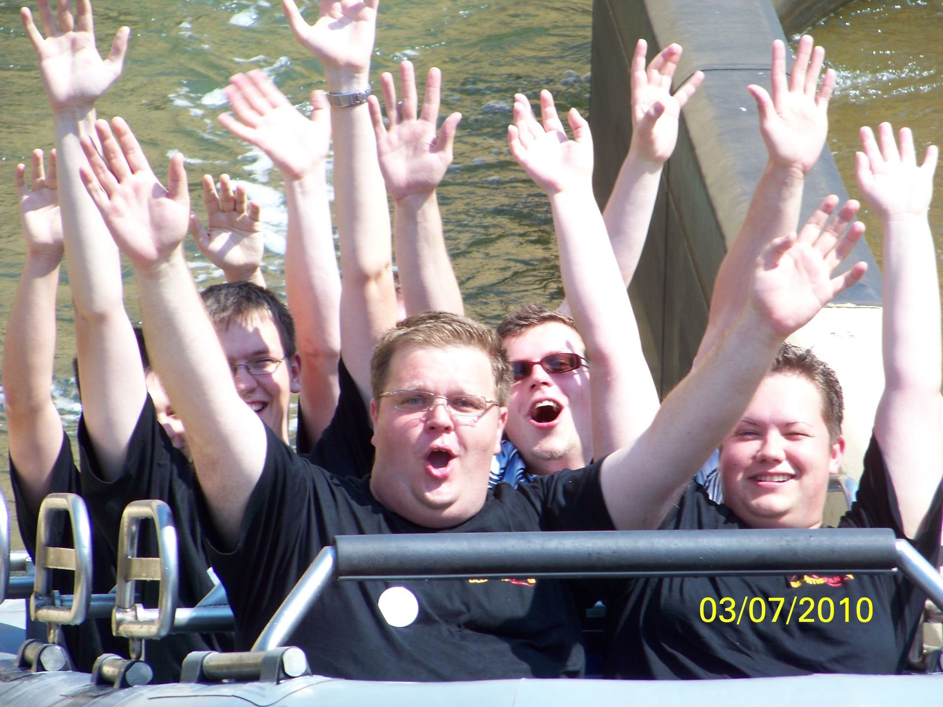 Eine Abkühlung tat nach dieser Hitze gut und alle bezwangen den Fluch des Pharao in dem man ordentlich geduscht wurde nur leider hielt das aufgrund der Temperaturen nicht lange an. Bis zum gemeinsamen Mittag am "Alten Markt" war noch zeit und so wurden die Teilnehmer auf eine Wissensralley geschickt bei der sie die Hilfe des Parkes brauchten. Also verstreuten sich alle um die Lösungen zu suchen. Pünktlich 12:30Uhr trafen sich alle zum gemeinsamen Mittag und stürtzen sich auf Schnitzel, Bratwurst oder Spare Ribs. Wir wurden zusätzlich mit ganz viel CrushIce versorgt um uns abzukühlen. Später am Tag spendierte Belantis allen Teilnehmern eine extra Runde kalte Getränke. Den restlichen Tag verbrachte man gemeinsam beim Stürmen der Attraktionen oder setzte sich ans Wasser um ein bisschen Abkühlung zu bekommen.