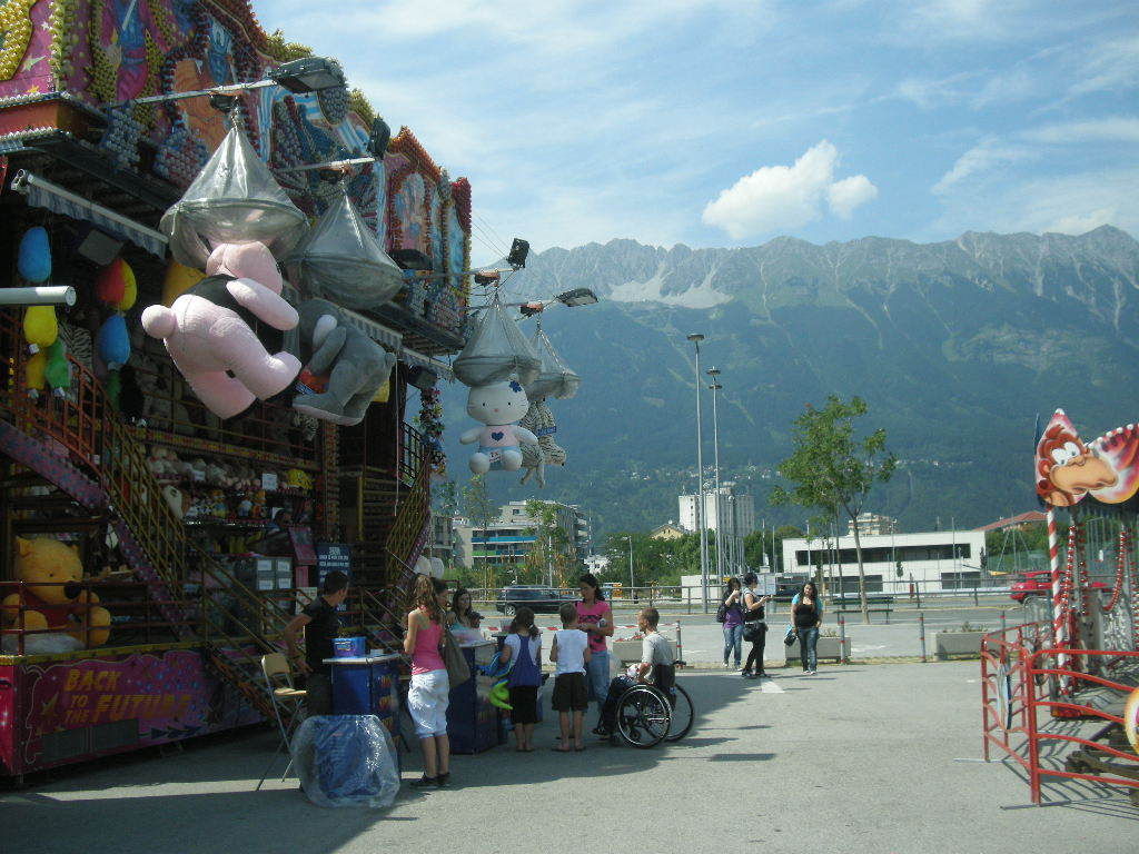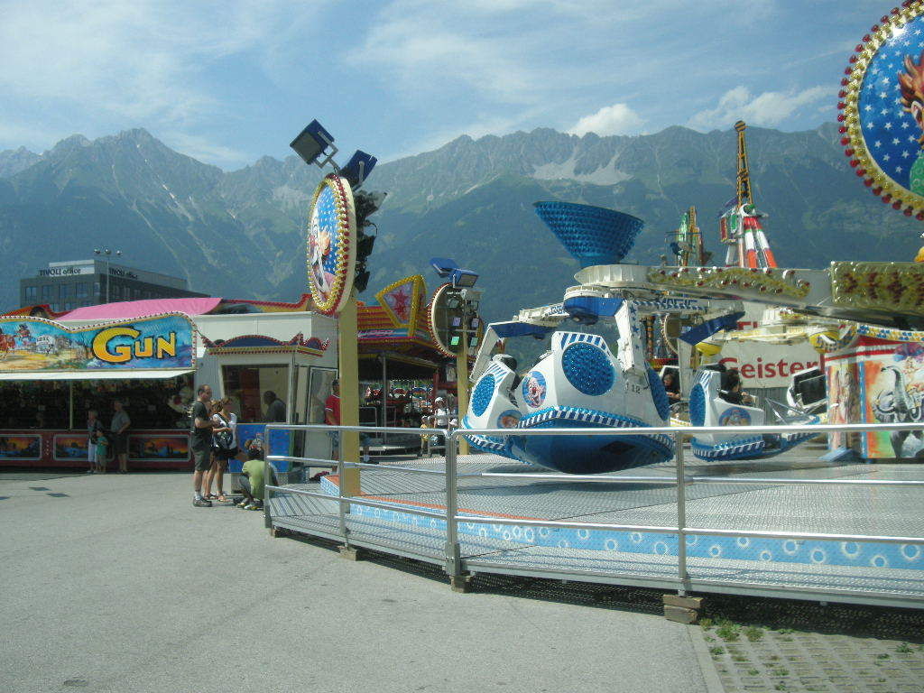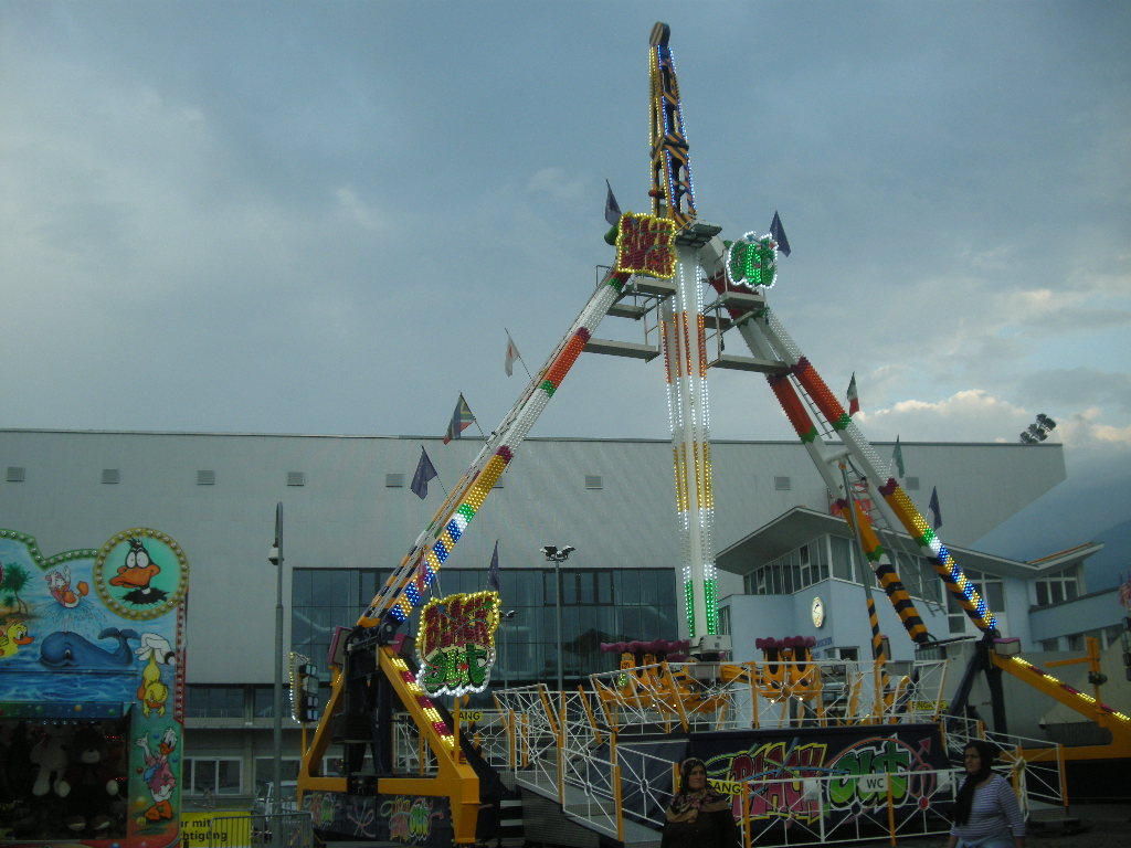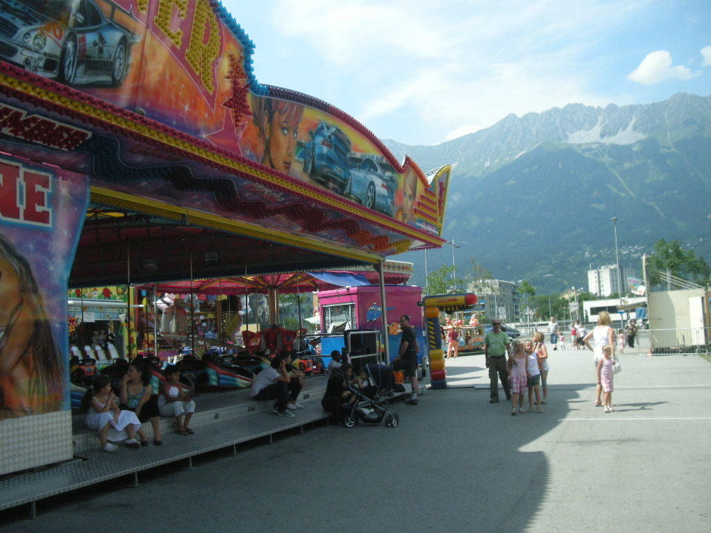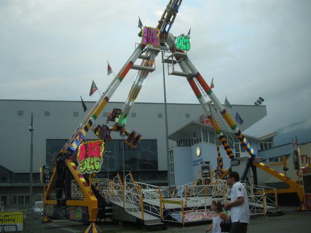 Wie letztes 2009 steht auch in diesem Jahr der "Vergnügunspark" in Innsbruck über ganze 3 Wochen am Stadtrand neben dem Tivoli Stadion. An der Beschickung hat sich nicht viel geändert, außer, dass der Sombrero durch eine Trampolin Anlage ersetzt wurde und der Flugsimulator durchs "Crazy Boot".