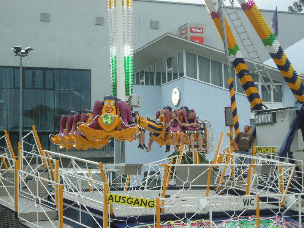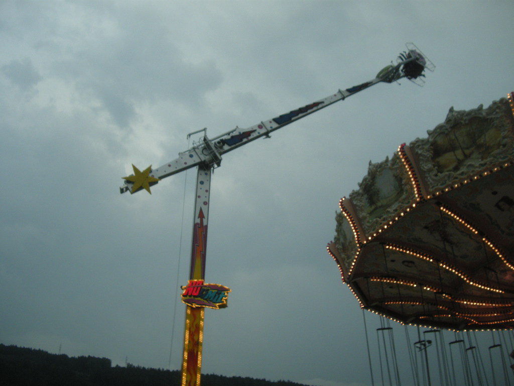 Gestern war Familientag und so war doch tatsächlich mal was los auf dem Volksfest. Am Nachmittag herrschte aufgrund der Hitze zwar noch gähnende Leere, aber bei meinem 2. Besuch hieß es sogar anstehen. Ich selbst bin 2x den Scooter, 1x Magic und 1x Break Out gefahren, der mich aber leider nicht so begeistert hat wie noch letztes Jahr.