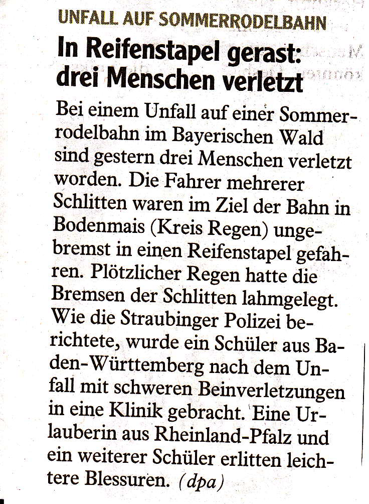 Also es gab 2007 auch einige ordentliche Unfälle - ich bin z.B. jemanden der sich, wahrscheinlich weil er nichtmehr bremsen konnte, auf die Seite gelegt hatte mit seinem Bob mit voller Wucht hinten drauf gefahren weil ich auch garkeine Bremsleistung mehr hatte - Da ist Gott sei dank nichts passiert, aber das waren sicher 30-40 km/h ungebremst.