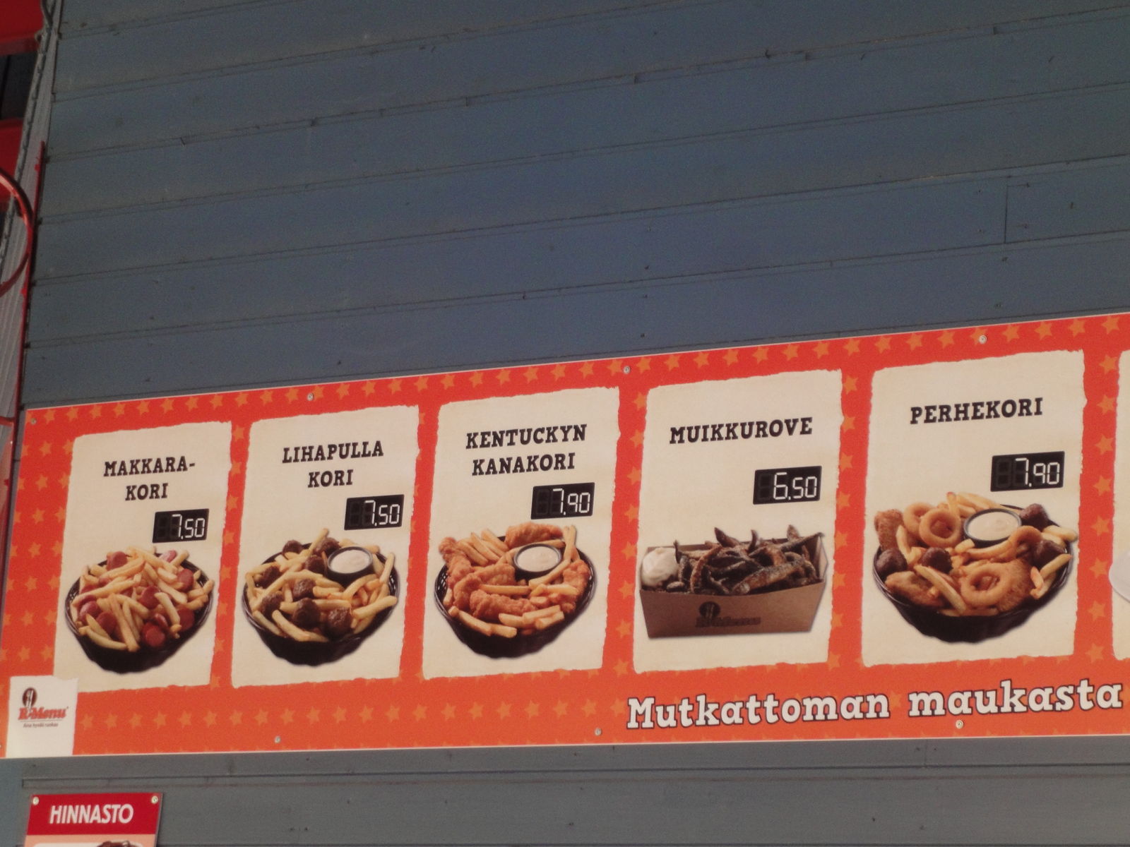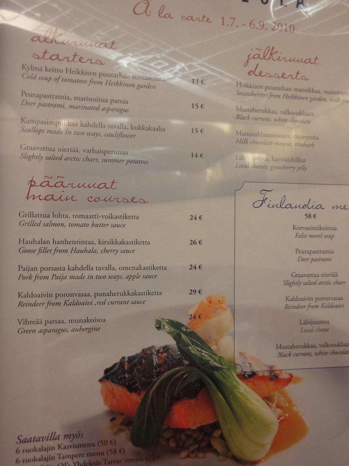 Noch eine Speisekarte aus einem anderen Restaurant, wenn nicht englisch darunter stehen würde könnte man sich wirklich überhaupt nichts bei den finischen Gerichten denken. Echt schwere Sprache.