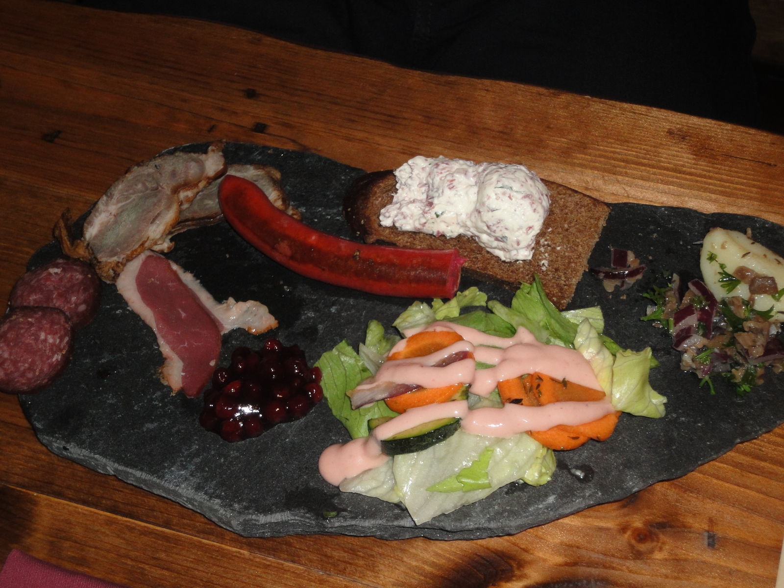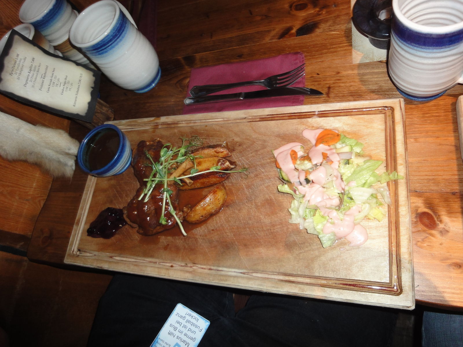 Essen 1: Rentierleber: echt hart und wirklich nur für Liebhaber von Leber, denn das war die härteste Leber, die ich je gegessen habe, selbst Hammelleber ist geschmacksneutral dagegen.