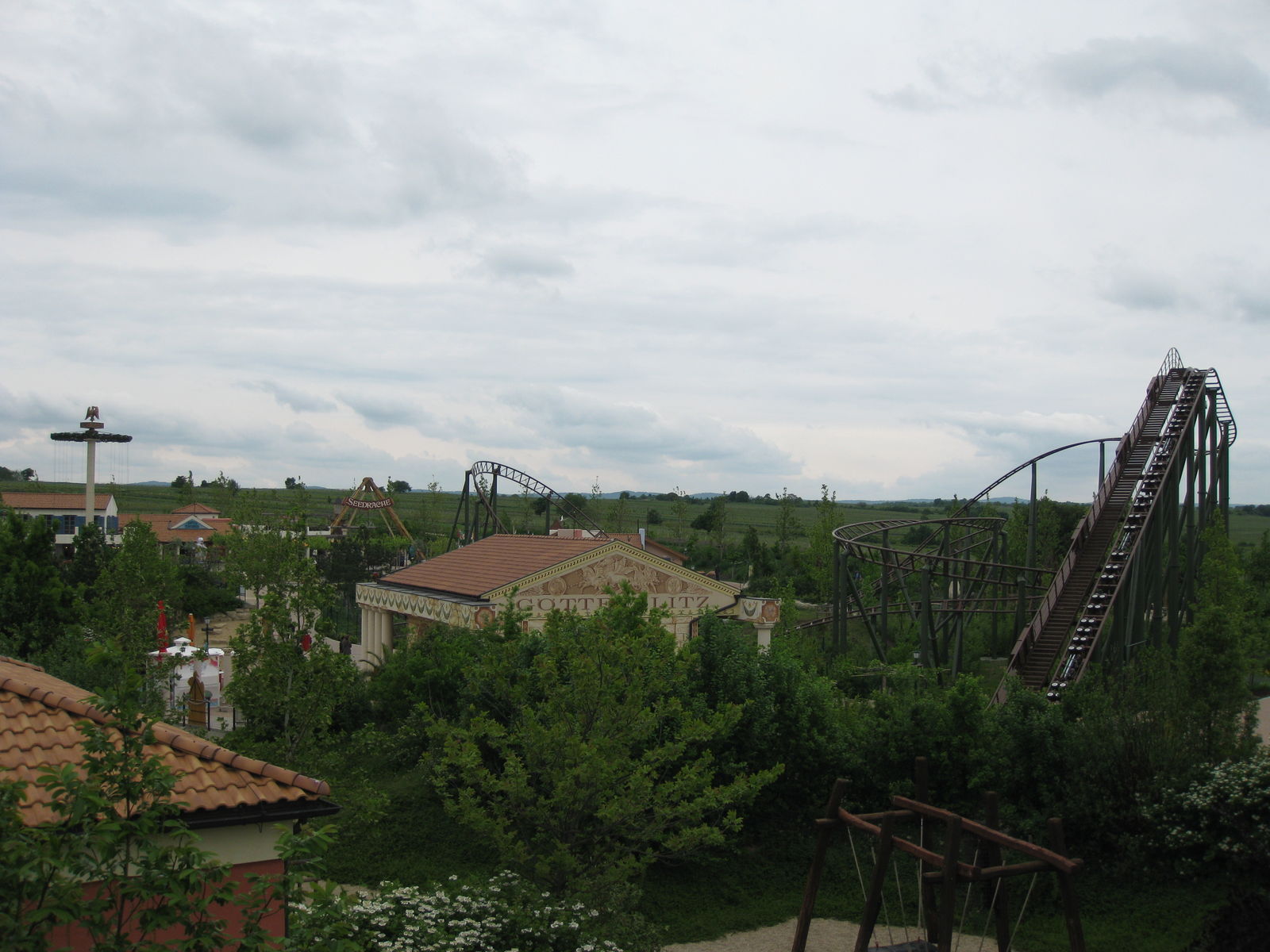 Hier sieht man gleich die erste Attraktion die Drachenbahn