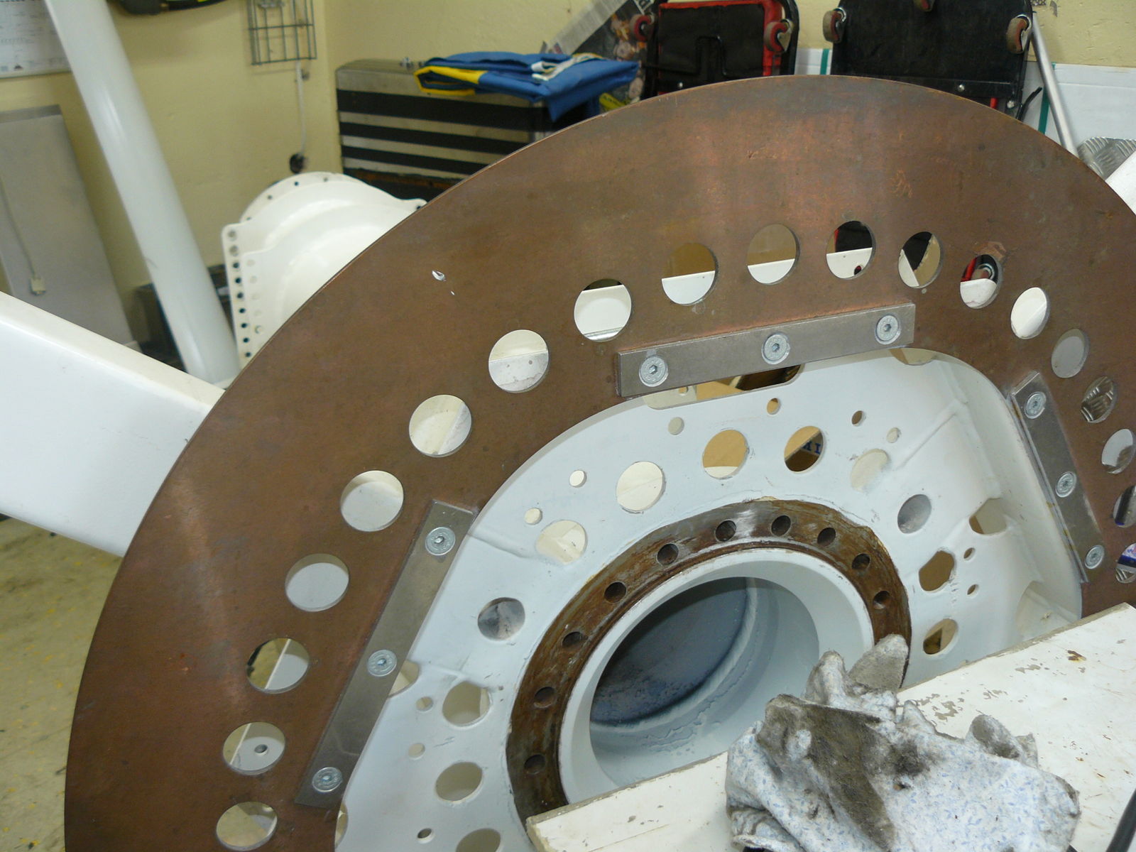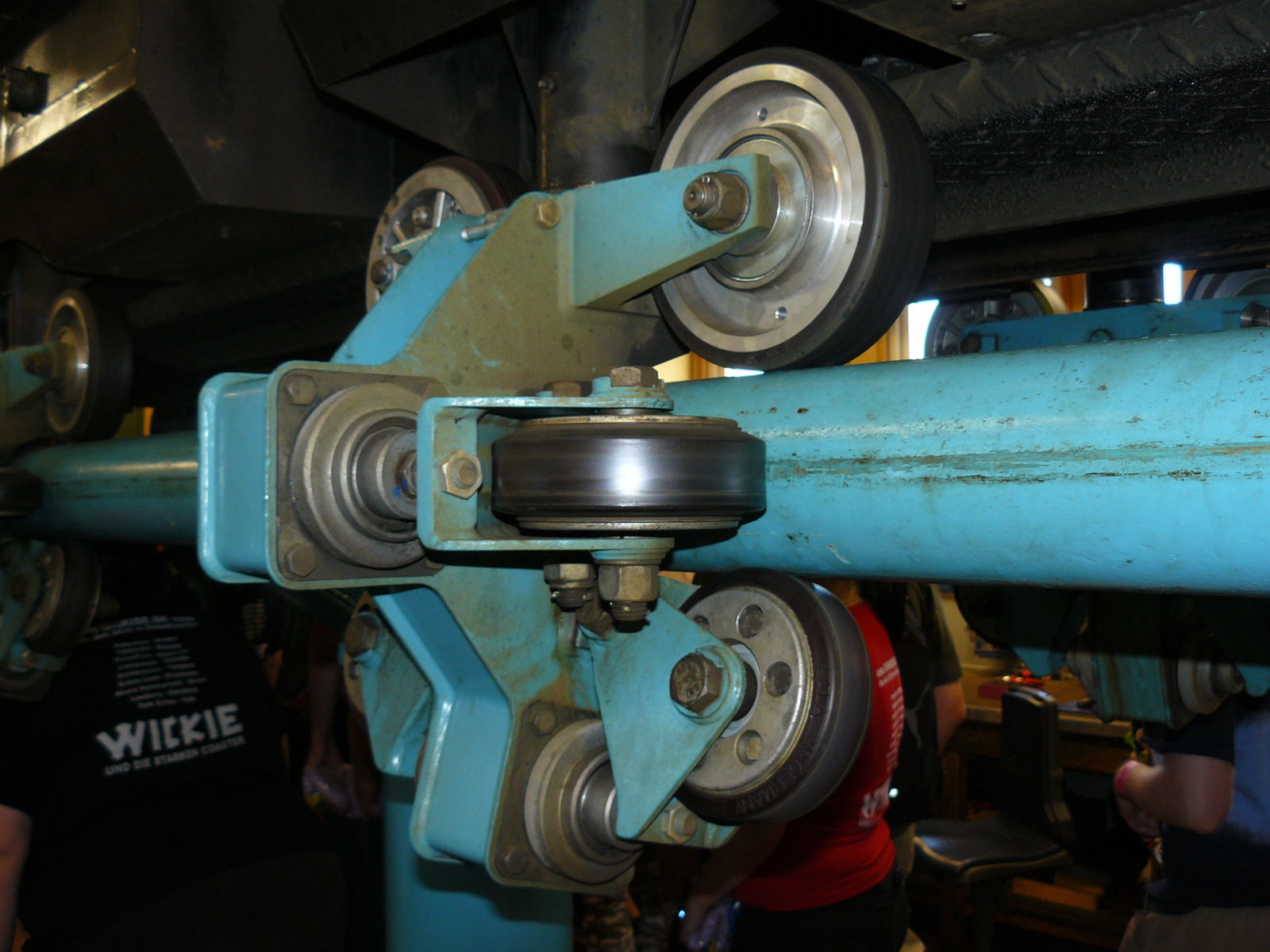 Der Jetline- Techniker hatte uns ein paar besondere Soveniers angeboten, nämlich gebrauchte Radreifen der Bahn sowie Kugellager. Für den Park ist das Schrott, da die wegen Defekten aussortiert worden sind. Für uns sind das begehrte Andenken und zudem eine Möglichkeit, noch einen Blick in die Werkstatt bei Insane zu werfen.