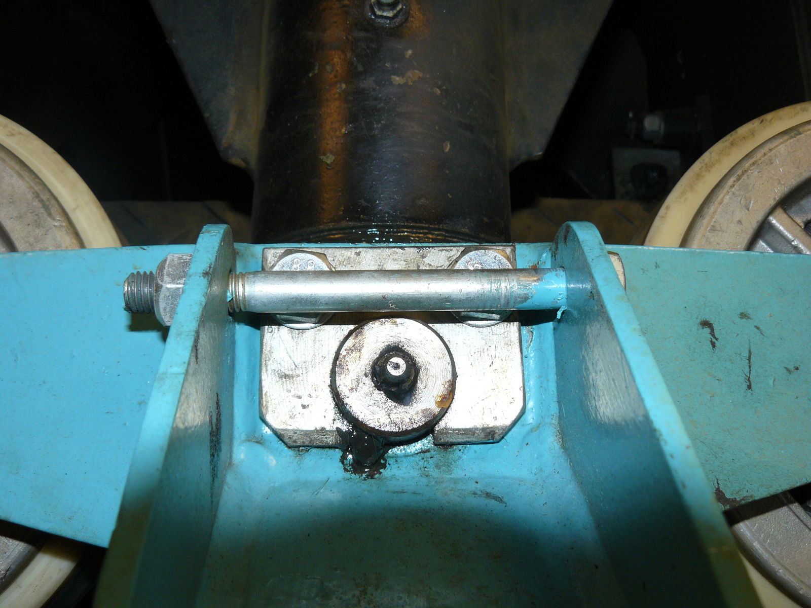 Fünf dieser Nippel habe ich an jeder Achse gefunden, plus einen an jeder Kupplung zwischen den Wagen. Macht 46 Schmiernippel pro Zug + die, die ich übersehen habe. Dabei dürfte deutlich werden, welcher enormer Wartungsaufwand im Betrieb dieser Bahn steckt, müssen die Züge doch in regelmässigen Intervallen abgeschmiert werden - jeder Nippel einzeln. Und dabei dürfte das noch den kleinsten Teil der regelmässigen Wartung ausmachen.