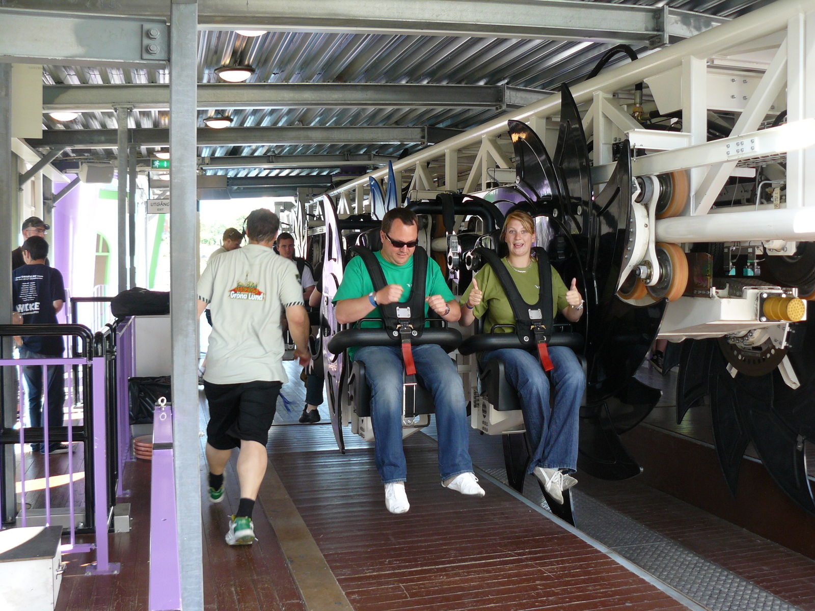 Die Insane- Crew vollbrachte über die gesamte oFT Höchstleistungen, da sie immer wieder in den Bremsbereich sprinten und die Chaisen von Hand aufrichten mussten, damit diese verriegelt werden kann. Erst dann kann die Chaise weiter in die Station fahren und den Block freigeben. Das musste auch immer recht flott gehen, damit die auf der Strecke befindliche Chaise nicht zu lange in der